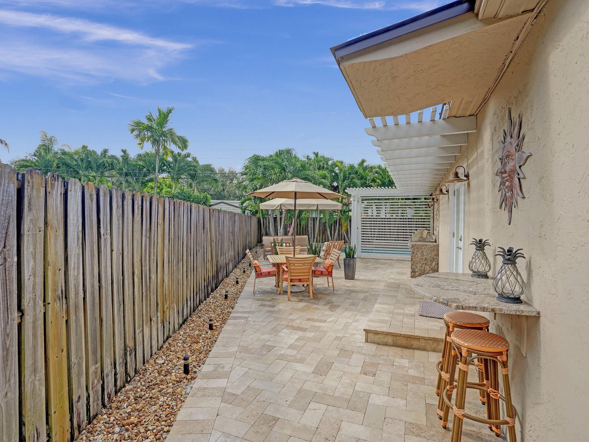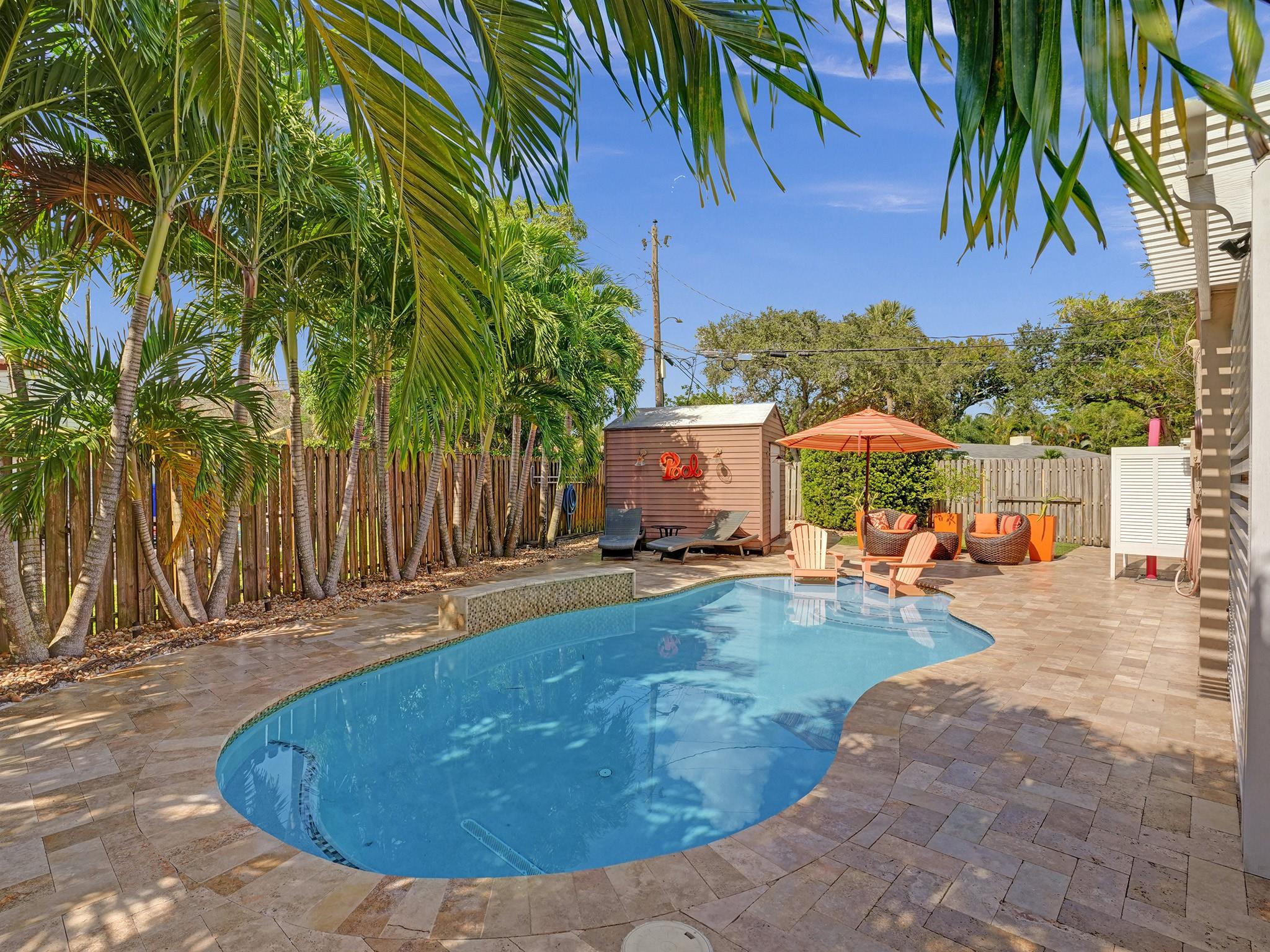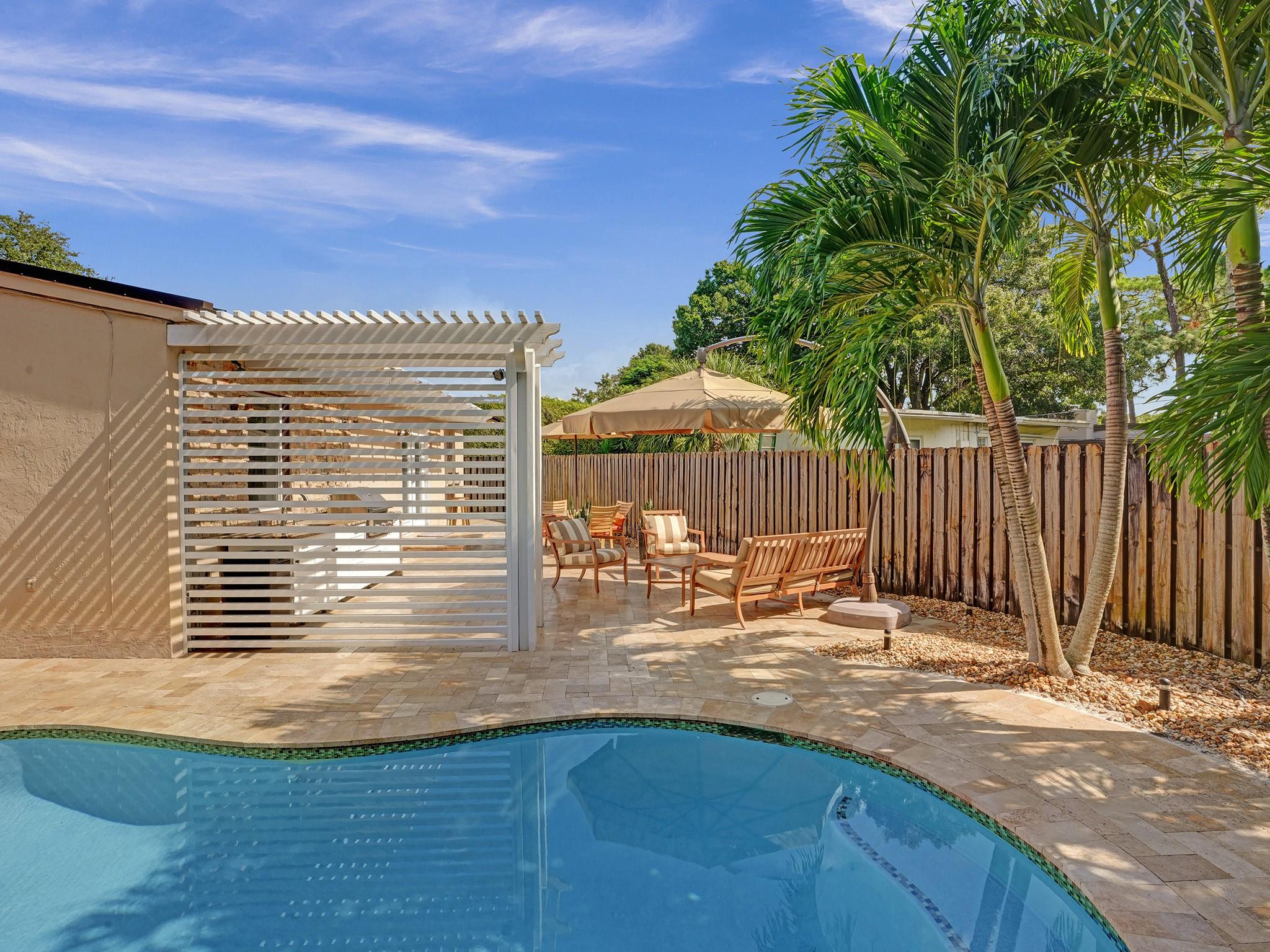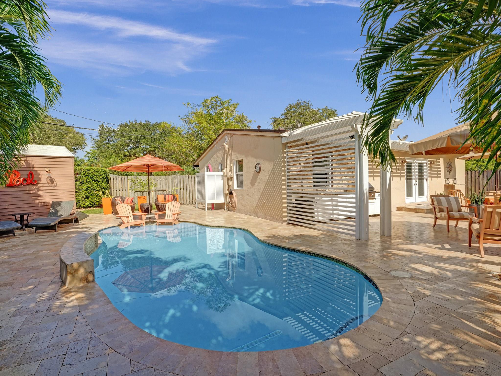 Immaculate Pool Home in Sought After Shady Banks. The pool area feels like a resort with new pavers, outdoor kitchen area, snack bar seating, outdoor shower. Step inside to this meticulously kept home with tile flooring, recessed lighting, French doors, beautiful kitchen with wood counters, snack bar, tons of storage plus a walk-in pantry & laundry area with additional storage. Updated bath, primary bedroom has walk in closet. 2021 metal roof, impact windows/doors. Outdoor shed, fully fenced & private. Large Corner Lot. Conveniently located minutes to downtown, Las Olas & Beach. This hidden gem neighborhood has 2 parks with Tennis, Volleyball, walking paths & a Nature preserve on the new river. A Must See!