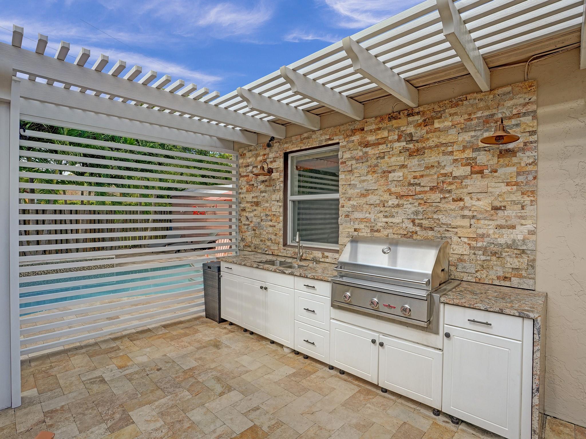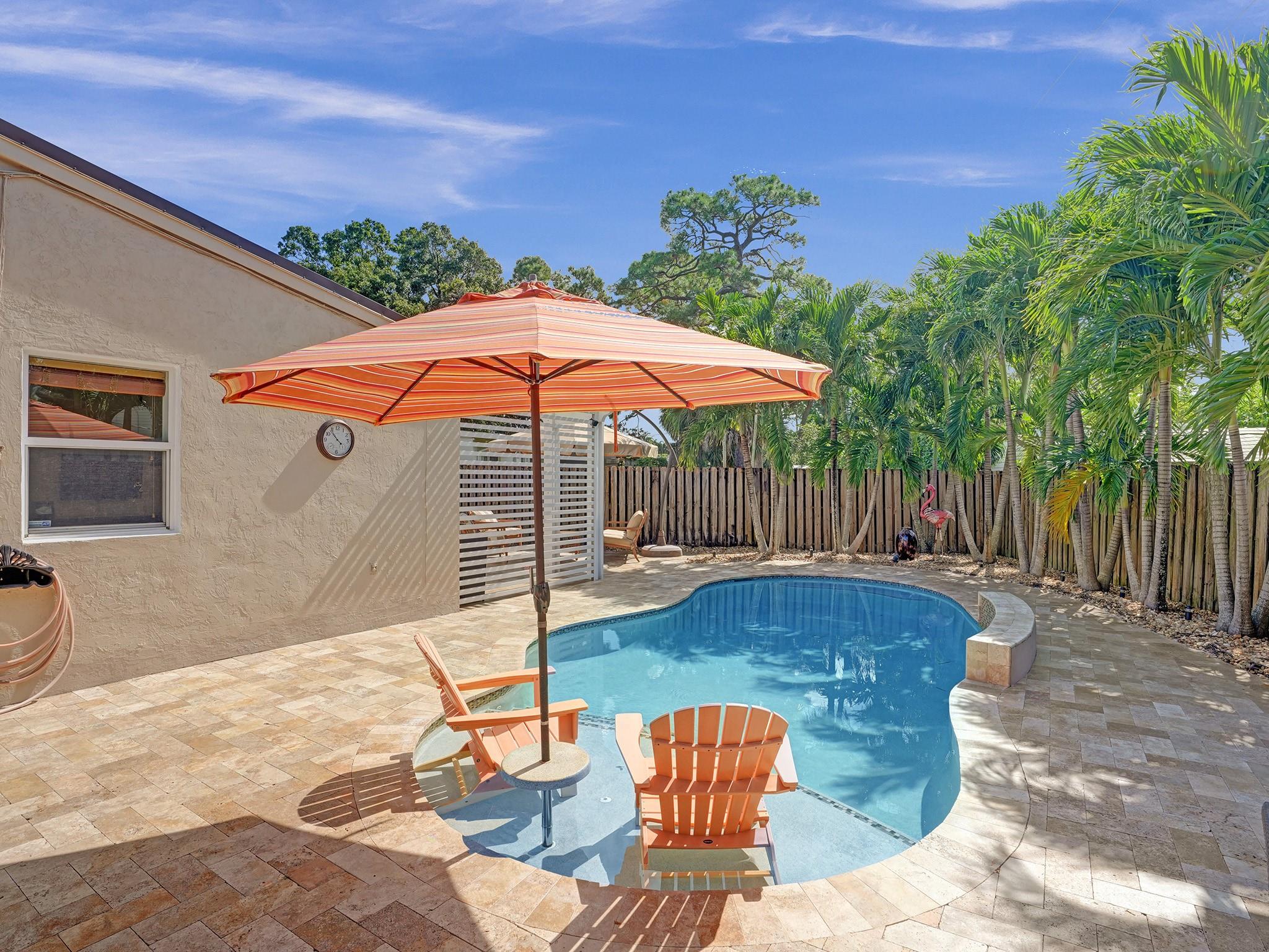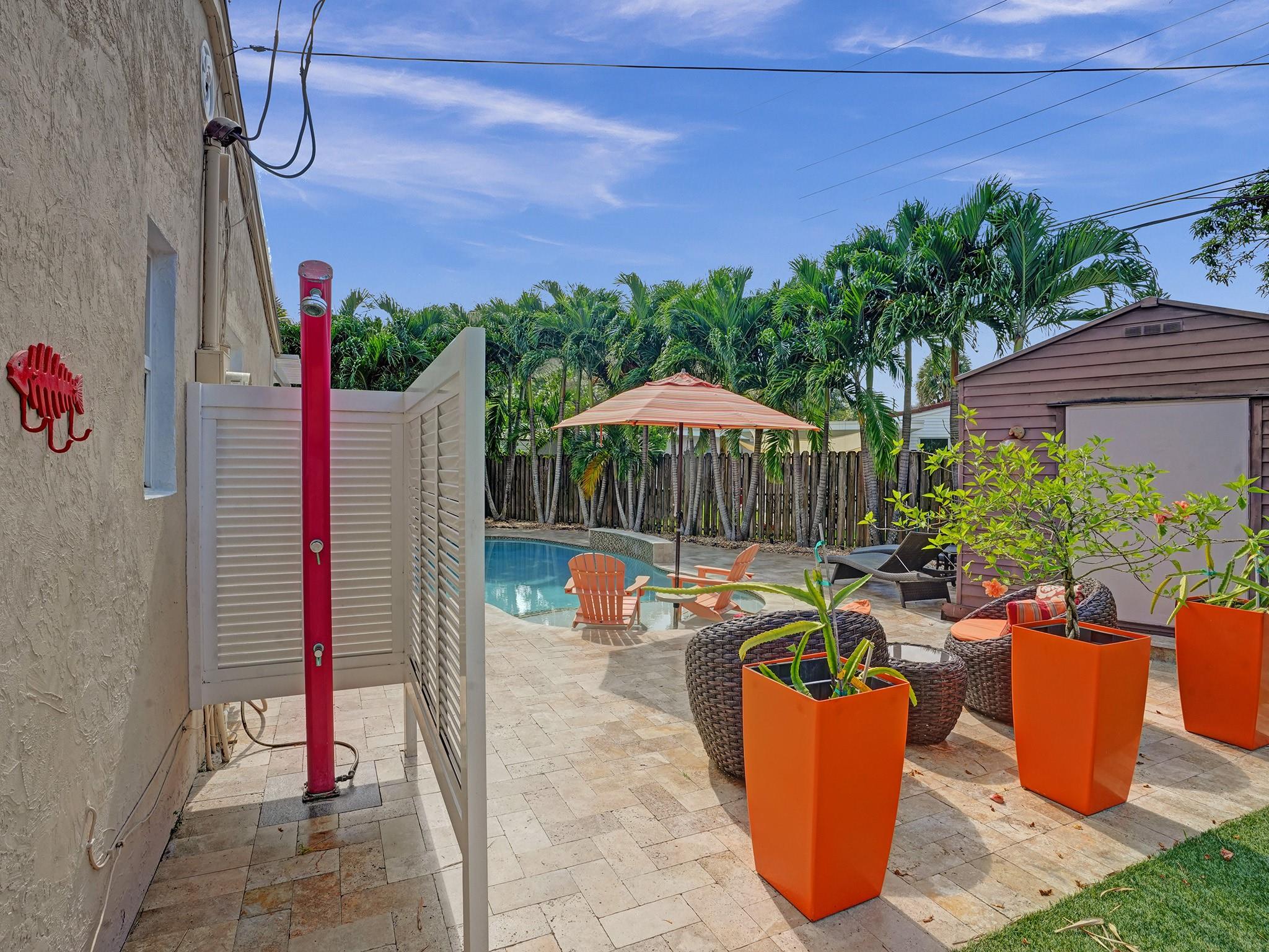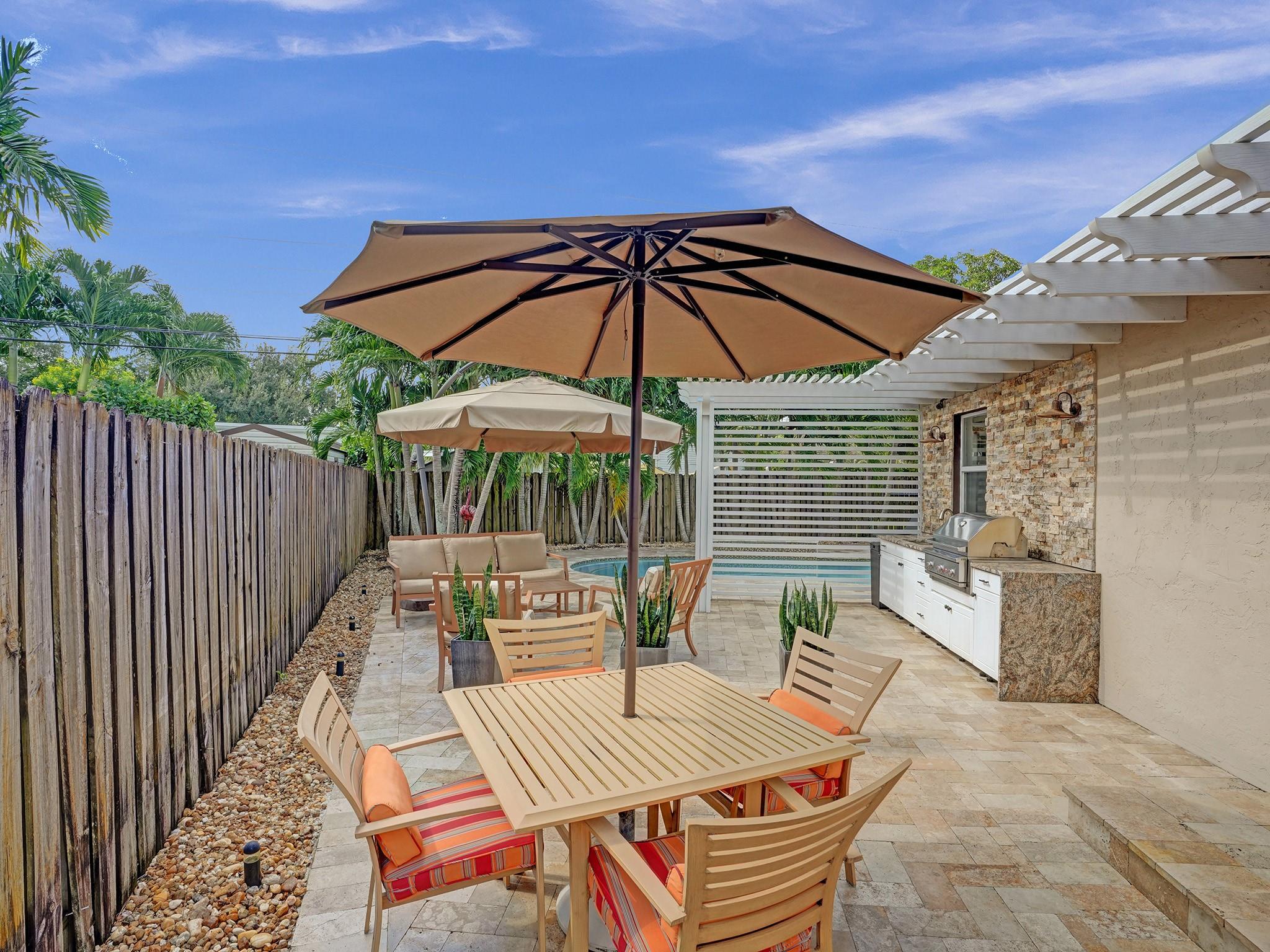 Immaculate Pool Home in Sought After Shady Banks. The pool area feels like a resort with new pavers, outdoor kitchen area, snack bar seating, outdoor shower. Step inside to this meticulously kept home with tile flooring, recessed lighting, French doors, beautiful kitchen with wood counters, snack bar, tons of storage plus a walk-in pantry & laundry area with additional storage. Updated bath, primary bedroom has walk in closet. 2021 metal roof, impact windows/doors. Outdoor shed, fully fenced & private. Large Corner Lot. Conveniently located minutes to downtown, Las Olas & Beach. This hidden gem neighborhood has 2 parks with Tennis, Volleyball, walking paths & a Nature preserve on the new river. A Must See!