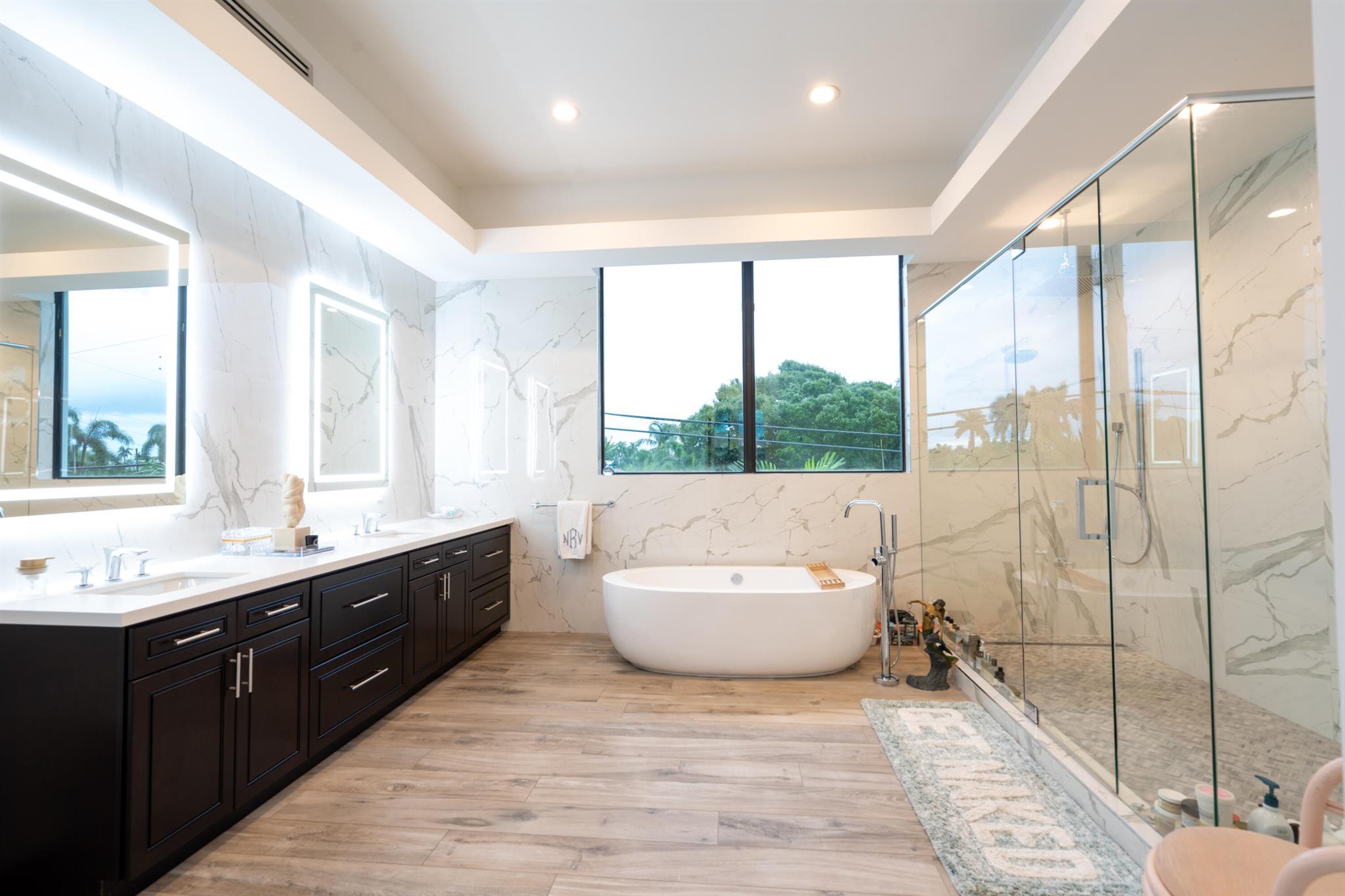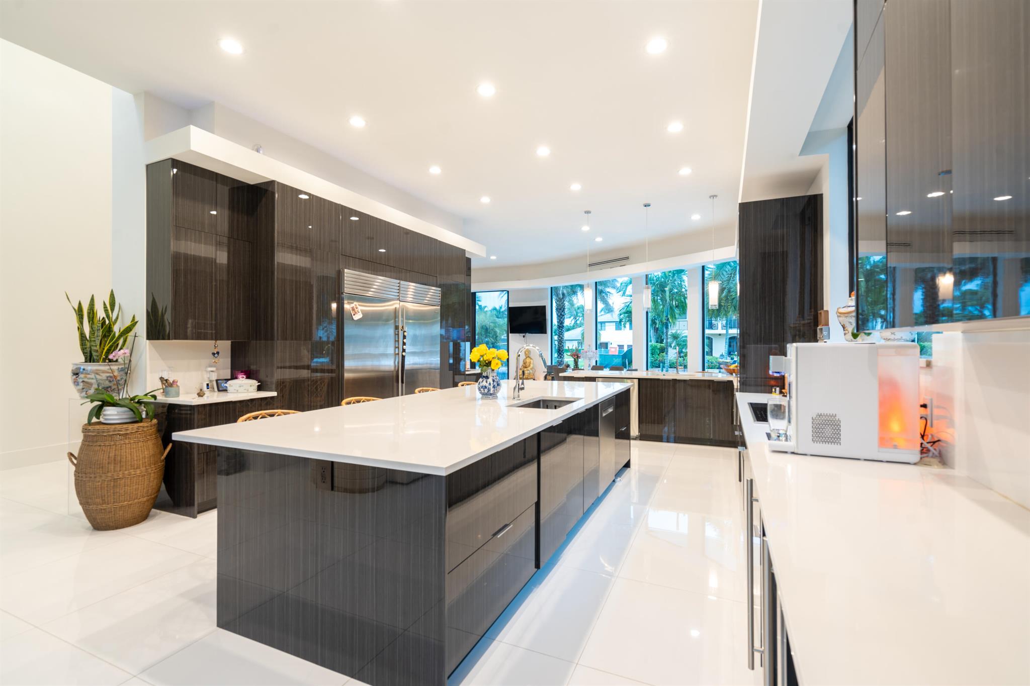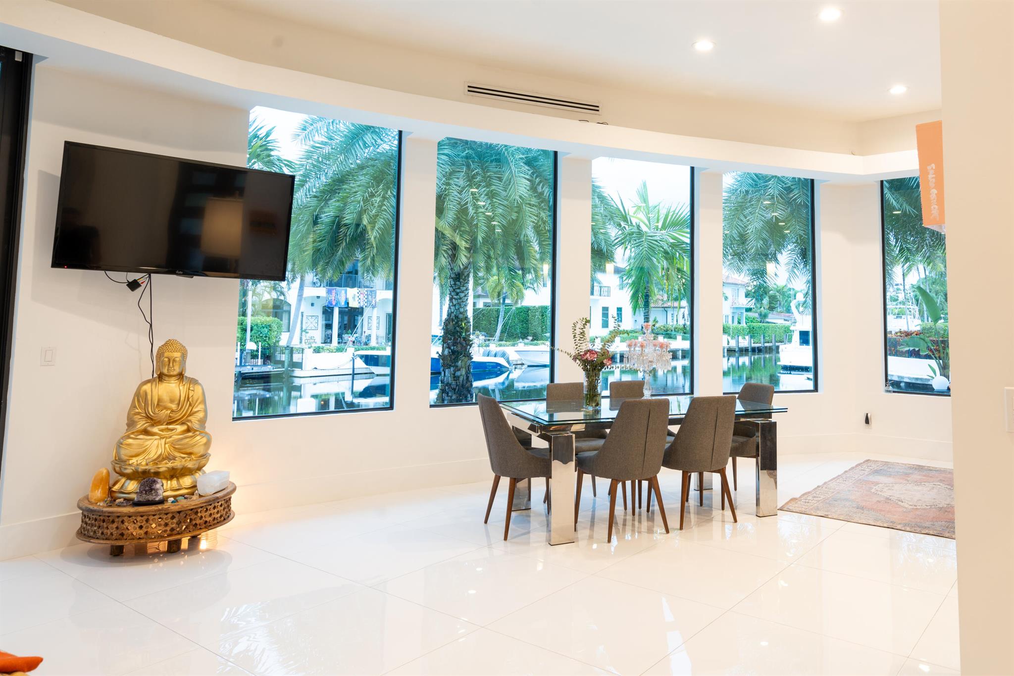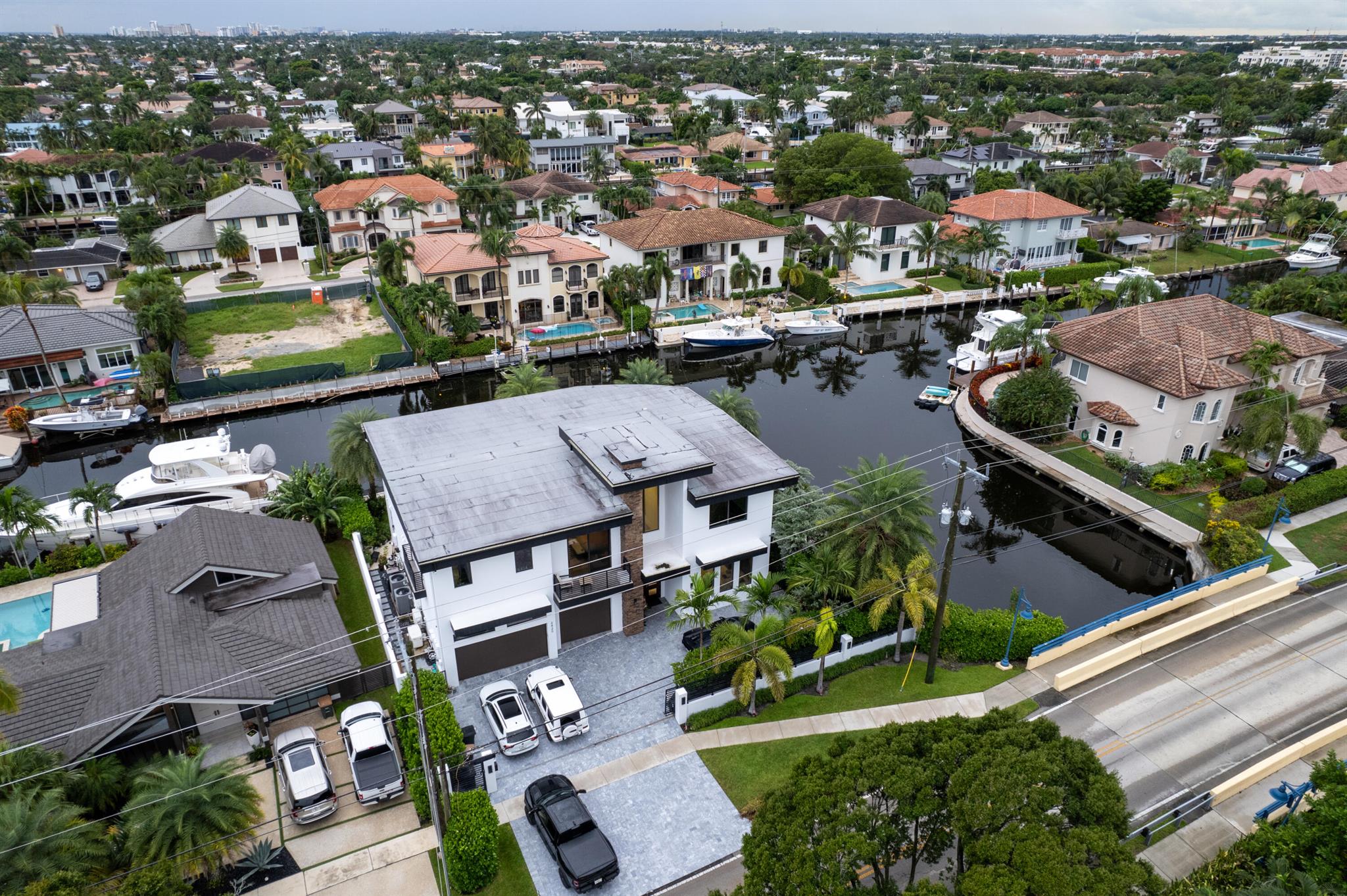 Exceptional Point Lot with 195ft of prime waterfrontage and just minutes away from the intracoastal with easy ocean access and no fixed bridges!! Entertain your guests and family all year long with your gorgeous wrap around salt water pool that is both heated and cooled! Enjoy the abundance of space and light with the morning sunrises gleaming off the water and through your large windows giving you a sense of happiness every morning and night! With 5 extraordinary bedrooms and 6.5 sleek and modern baths, this is a true example of luxurious waterfront living! Rare opportunity to even purchase the home next door as a package if you would like to expand your water frontage and living space! Plenty of room for the toys with a 3 car garage that has AC! Schedule your private tour today!