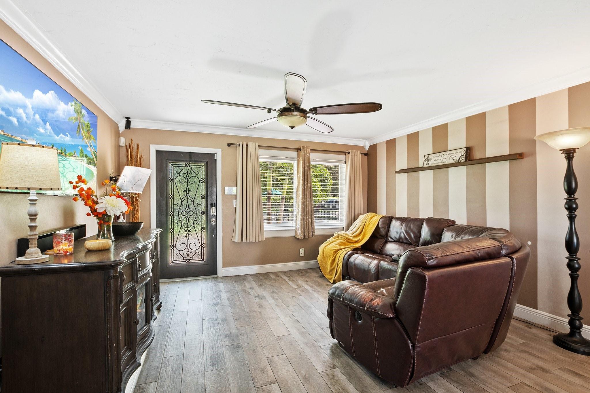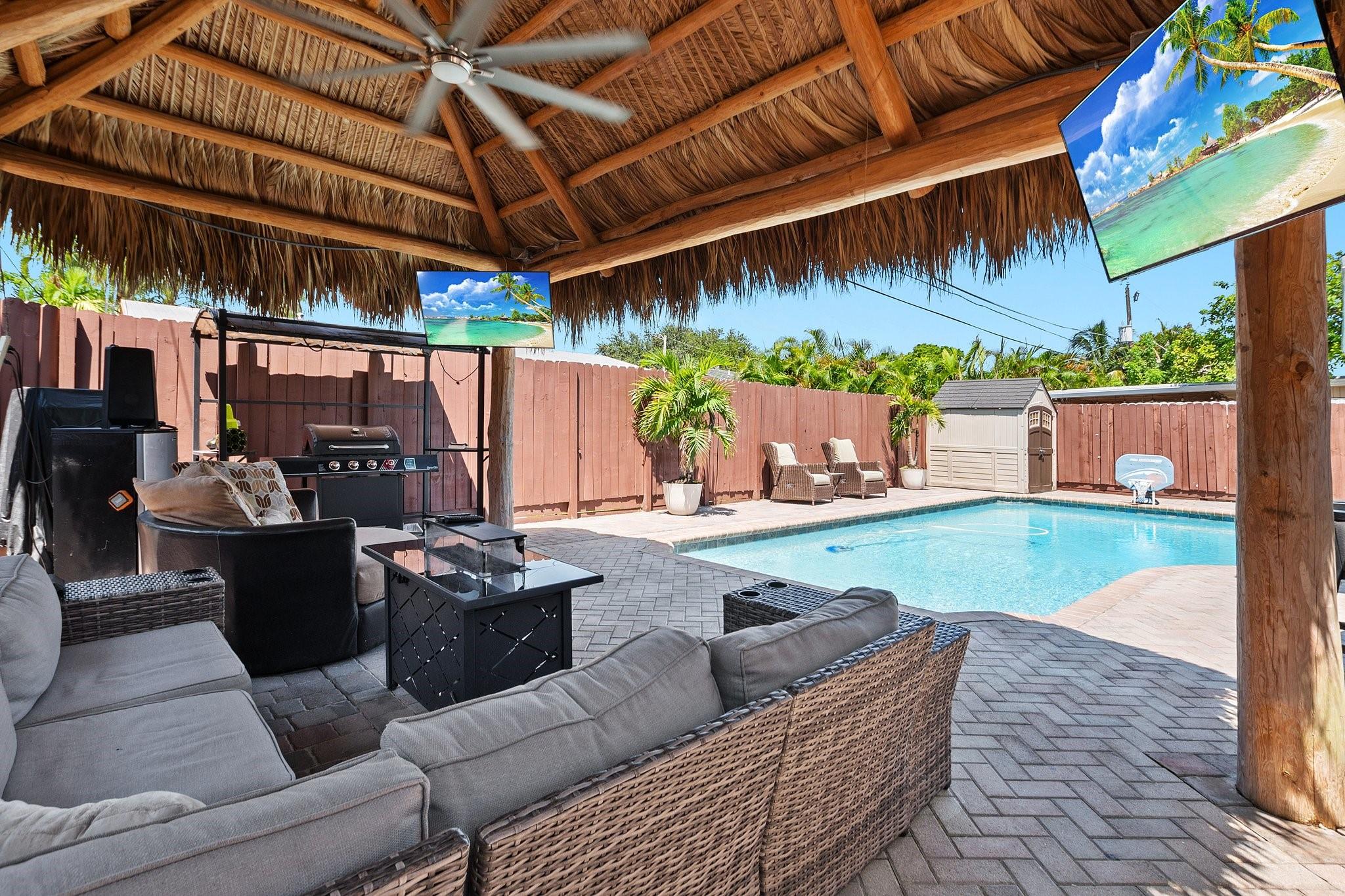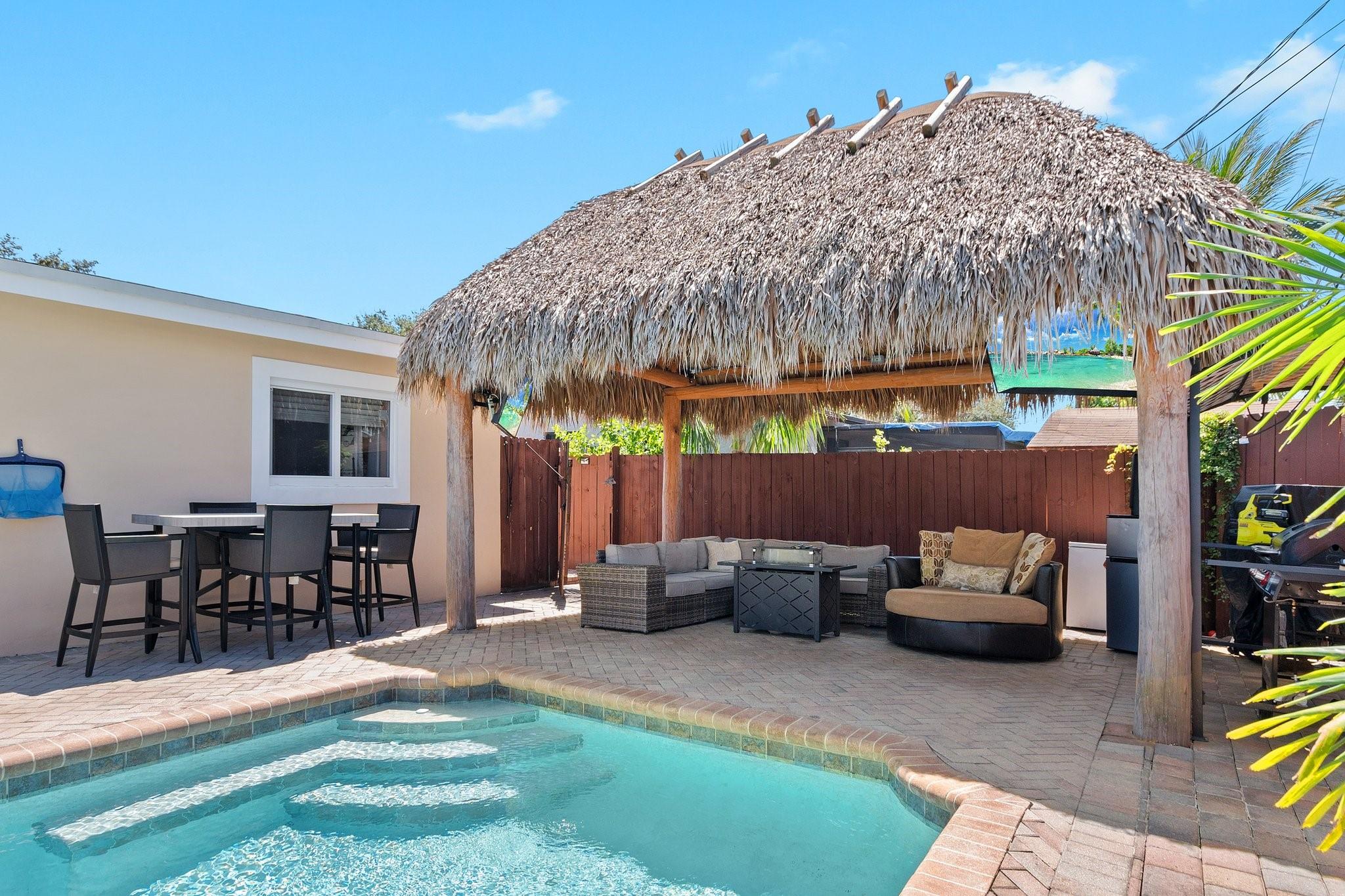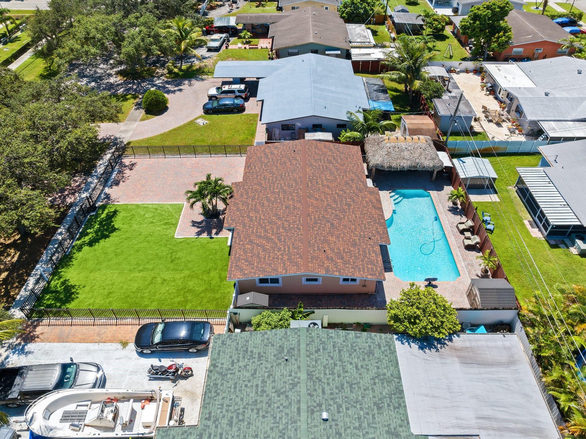 Beautiful remodeled 3 bed, 2 bath heated pool home. With bonus utility/office room. This home comes with hurricane windows throughout. Within the last 5 years a new roof, new a/c new, water heater and stainless-steel appliances were added. The very spacious kitchen has granite countertops with upgraded cabinets. A SMART HOME, it includes security cameras. No HOA. Completely fenced for privacy and paved backyard with a large heated pool. Separate Tiki hut for entertaining. Artificial turf and brick pavers throughout. Desirable location near shopping malls, restaurants, beaches, parks and Hard Rock Hotel.