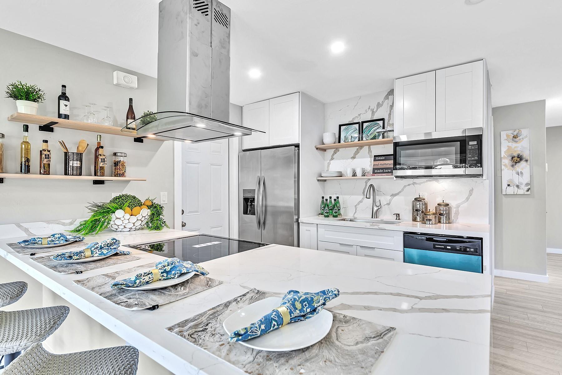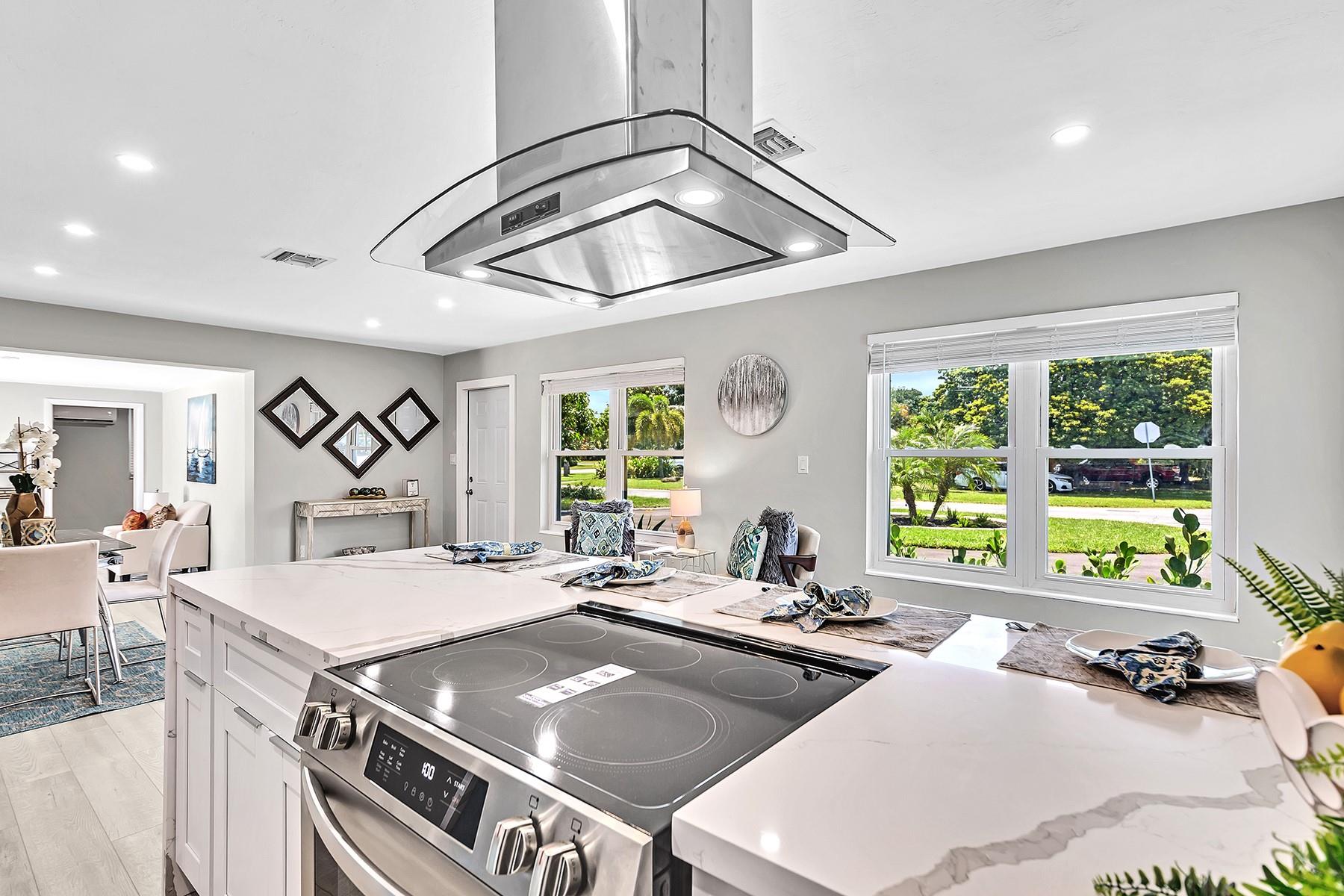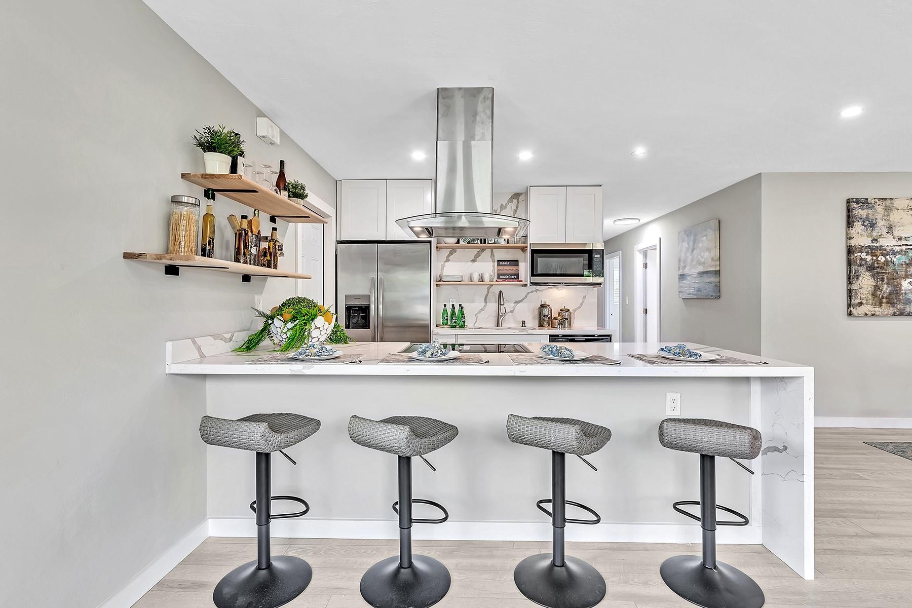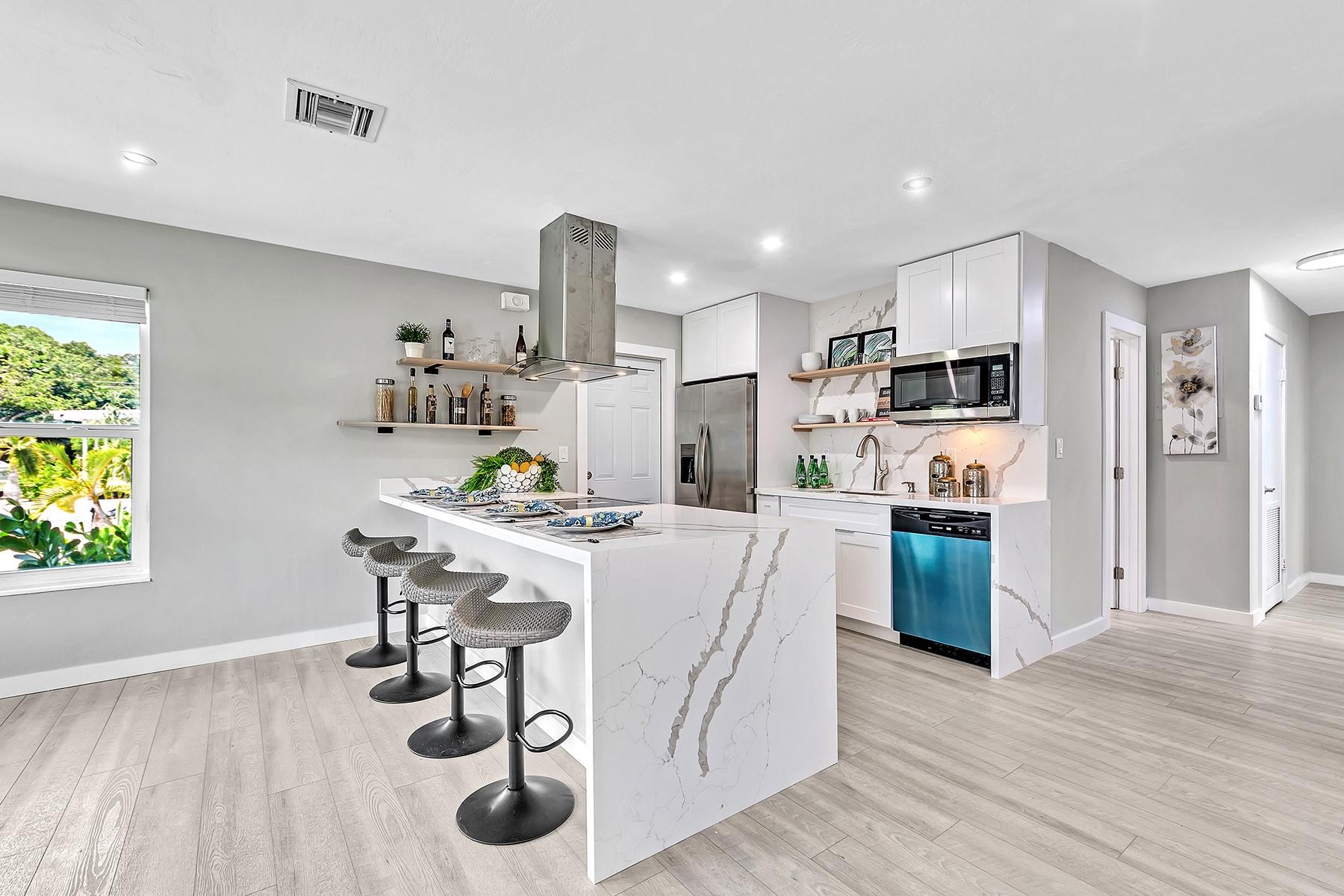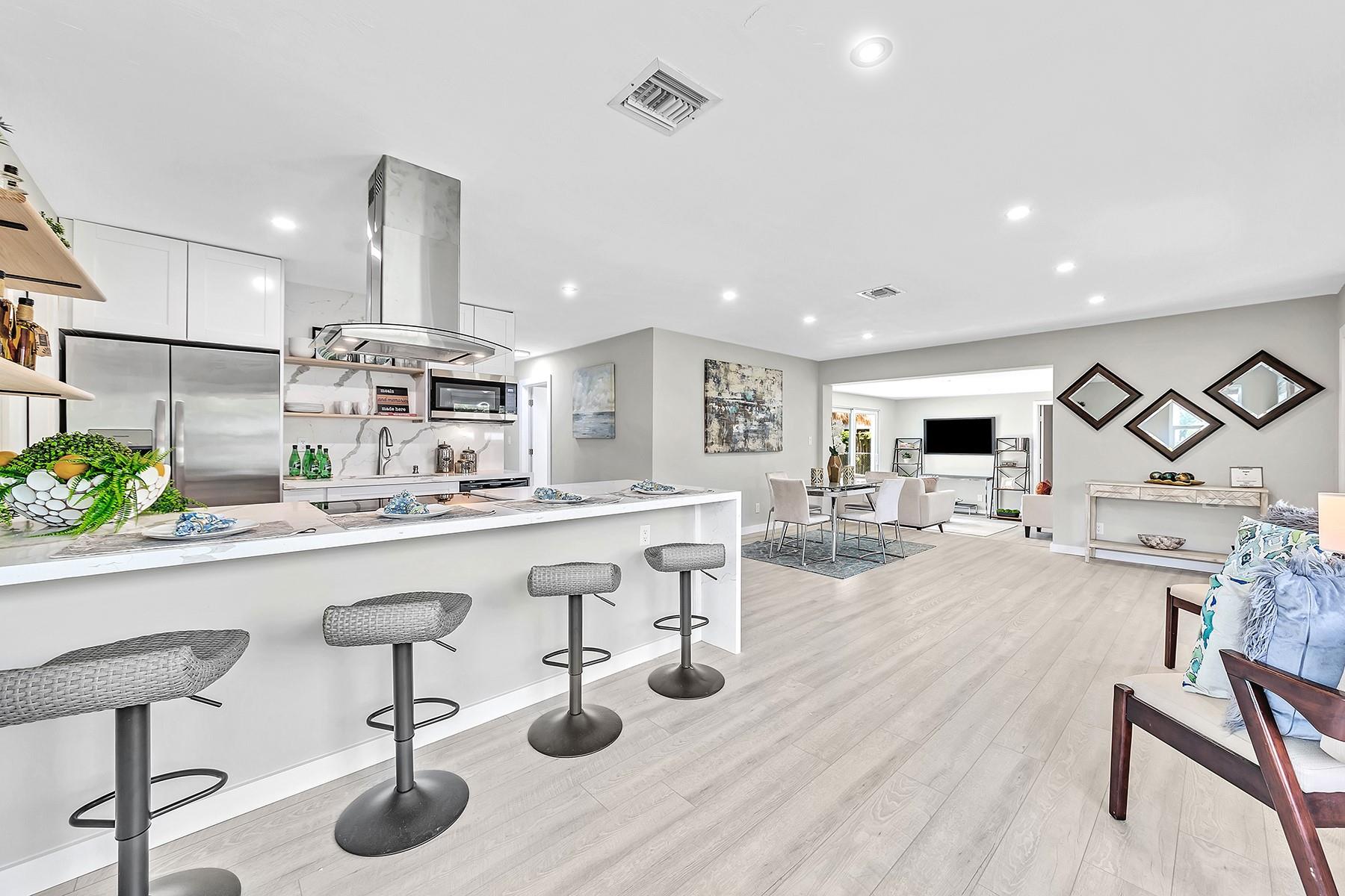 PARK YOUR BOAT OR RV ON YOUR PROPERTY!! Amazing home situated in the exclusive Harbor village neighborhood in hot East Pompano! With an open, bright & airy living space, a beautiful designed kitchen boasting new SS appliances and a spacious island, Calacatta countertops, backsplash and waterfall, a living area seamlessly extending to a private outdoor patio with a brand-new XL tiki hut and pool, the master suite complete with a large sitting area that can be transformed into a nursery, office or an extra bedroom, complete with a brand new roof, a/c, and full impact windows/door, this ready to move in elegant home, just minutes to the sandy shores and all charming shops, restaurants, and cultural attractions is the perfect option for your permanent residence or your vacation home.