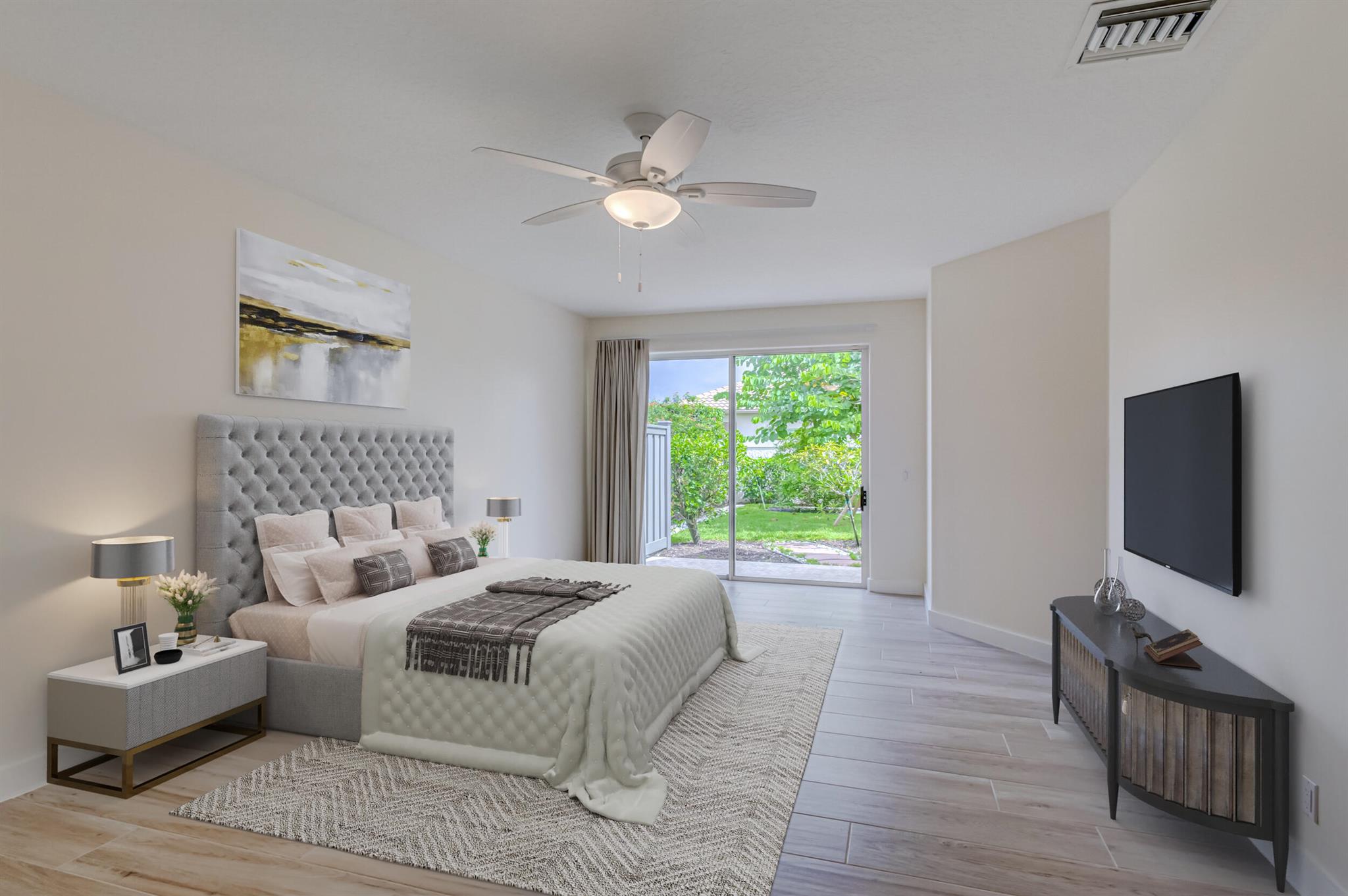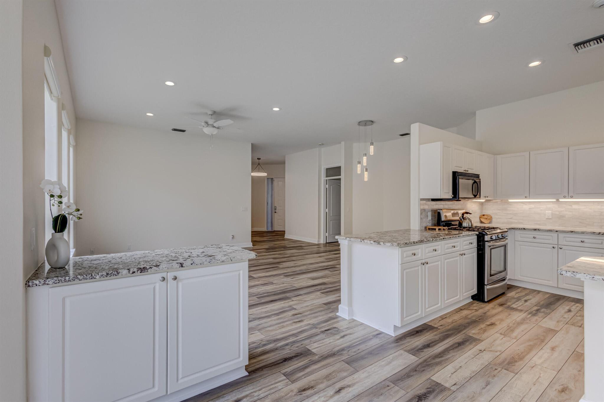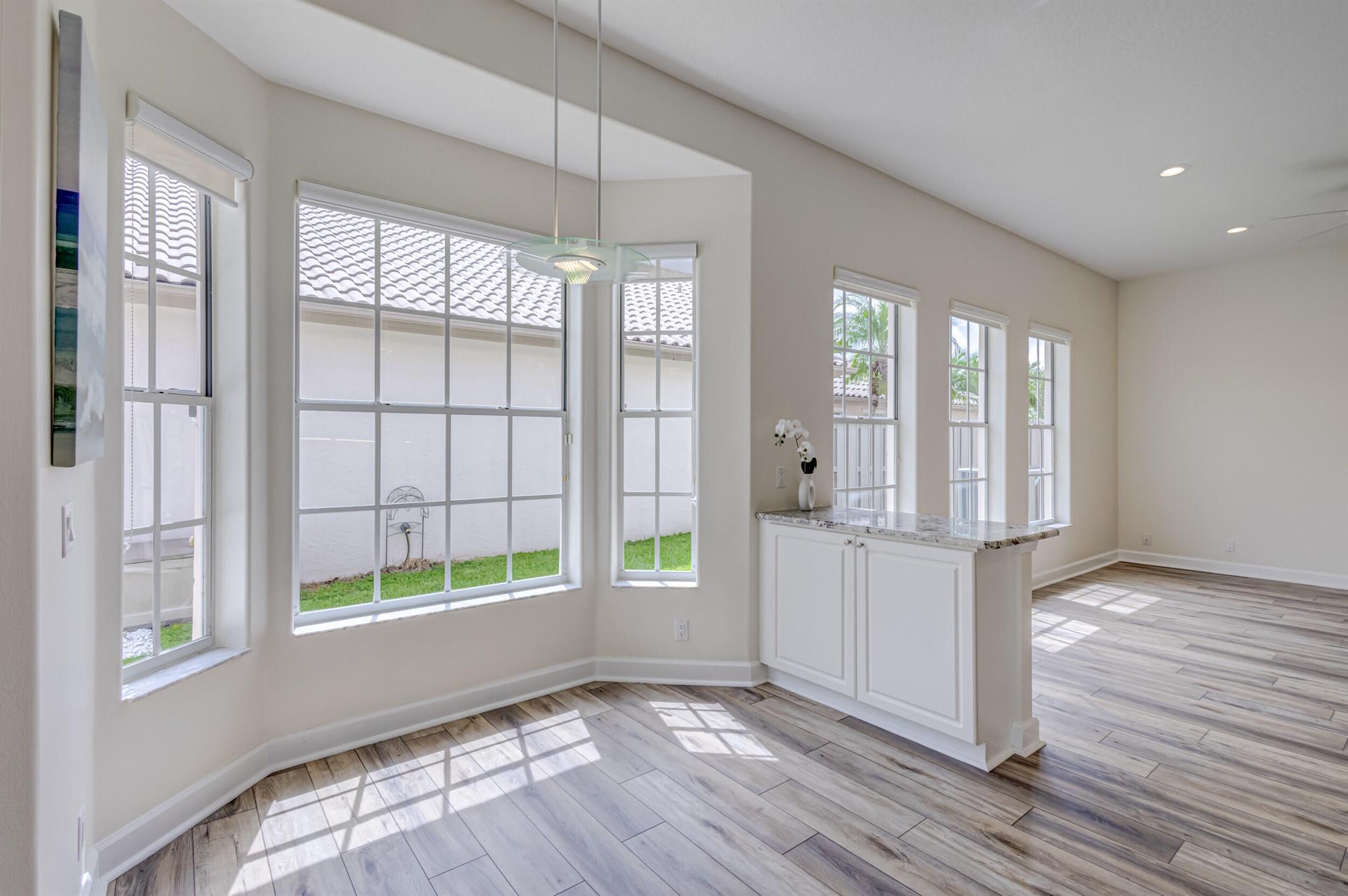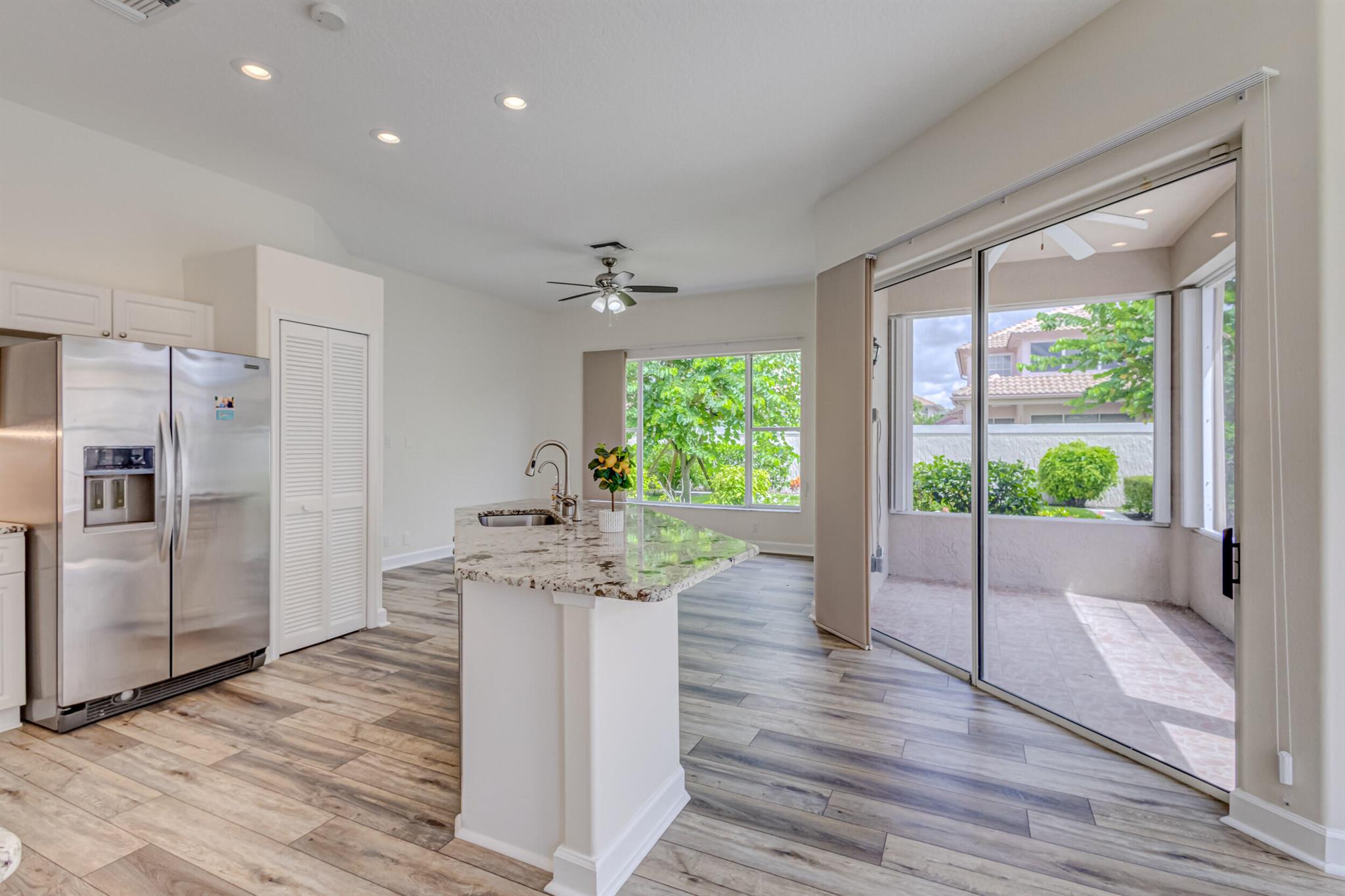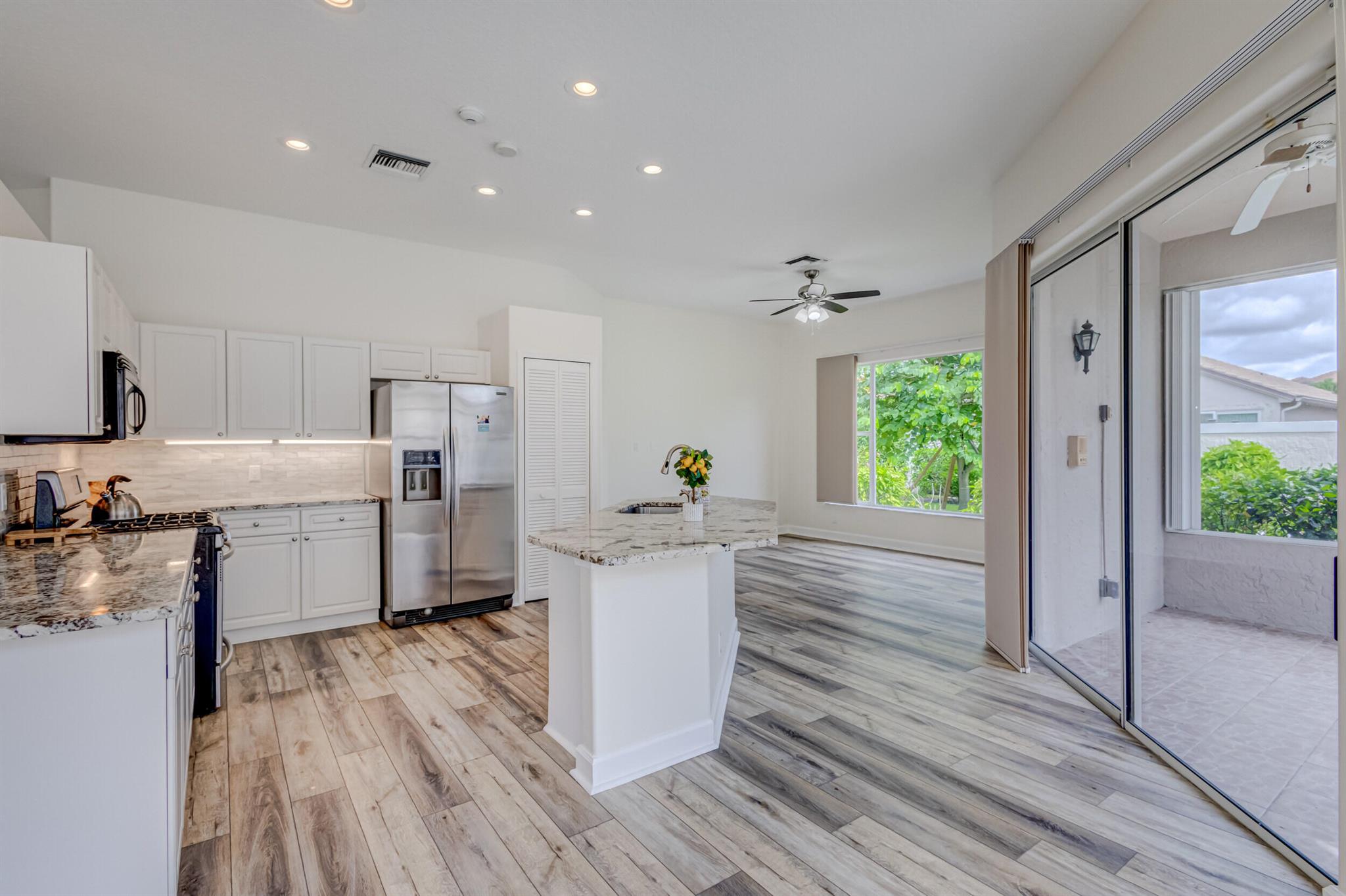 Resort Lifestyle in this light-bright fully renovated 3 bedroom 3 bath wheelchair-accessible house in the double gated community of Eagleton in the PGA Golf Resort. Open and spacious floor plan 3 bedrooms including a spacious Owner’s Suite with a spa-like bathroom and custom built closets. The third bathroom features a walk-in jacuzzi tub. Laundry Room with a quartz counter top and a stainless-steel sink. This house feature simulated wood porcelain tile floors. Open bright gourmet kitchen with gas stove, custom cabinetry, granite countertops with a large eat-in island. Enjoy private backyard with a screened patio. 2 car attached garage includes extra storage. House is within short walk to the community pool. In the heart of PBG. Also nice quite neighborhood with no traffic noice.