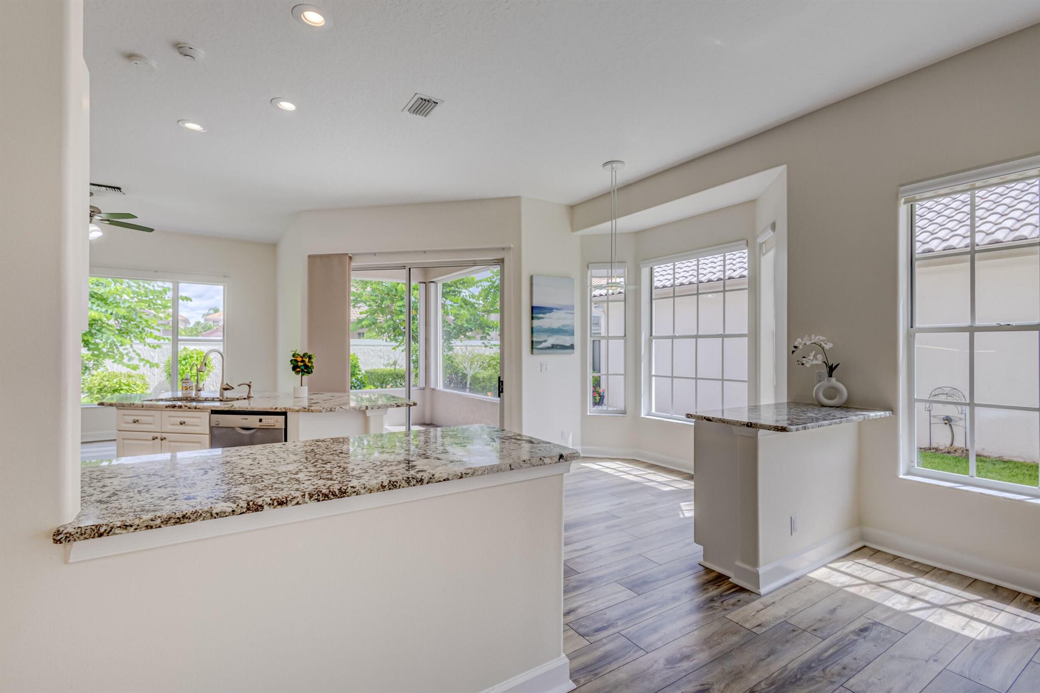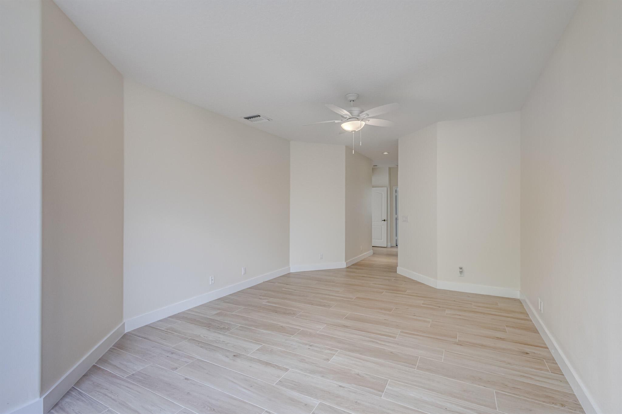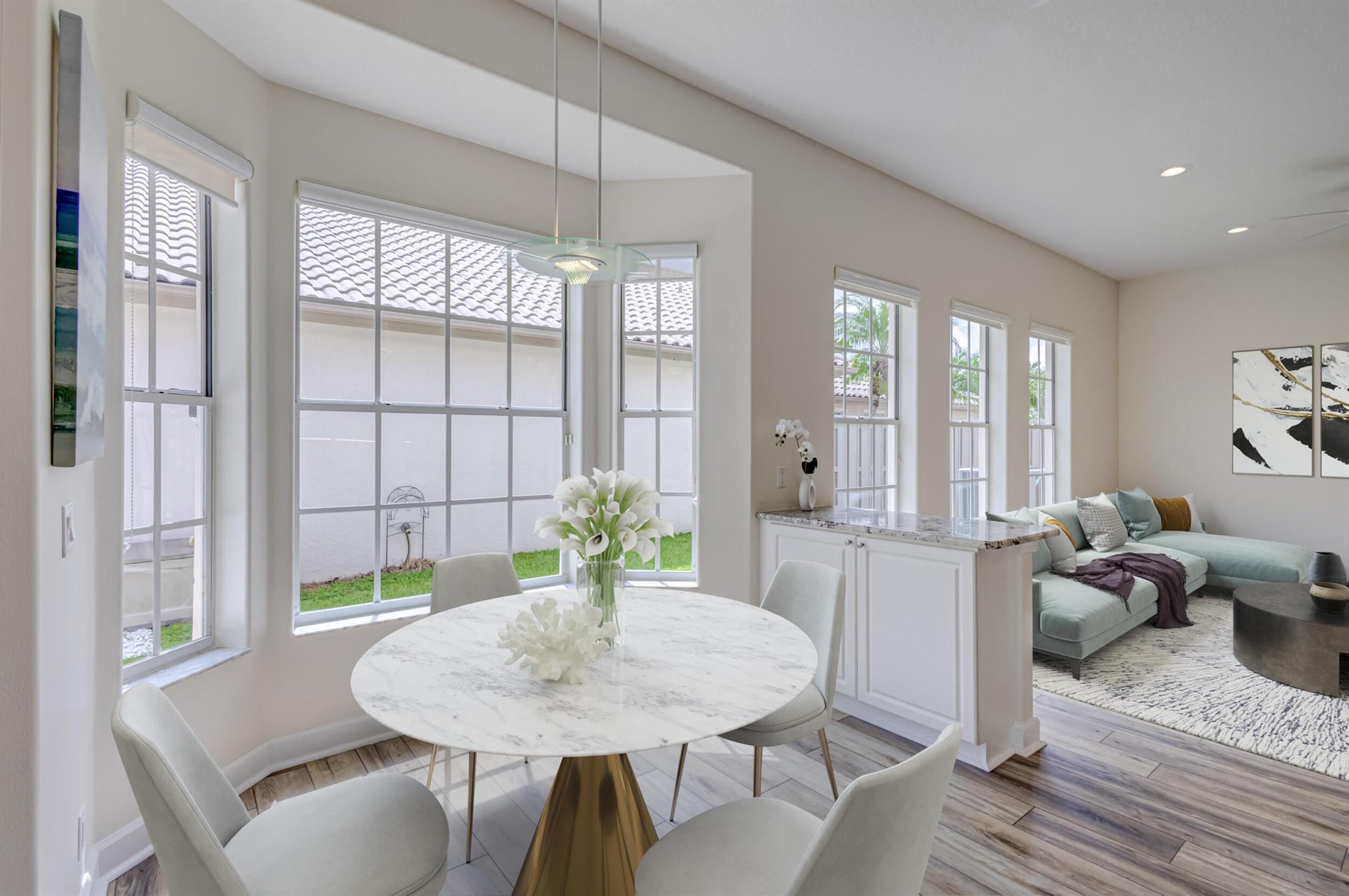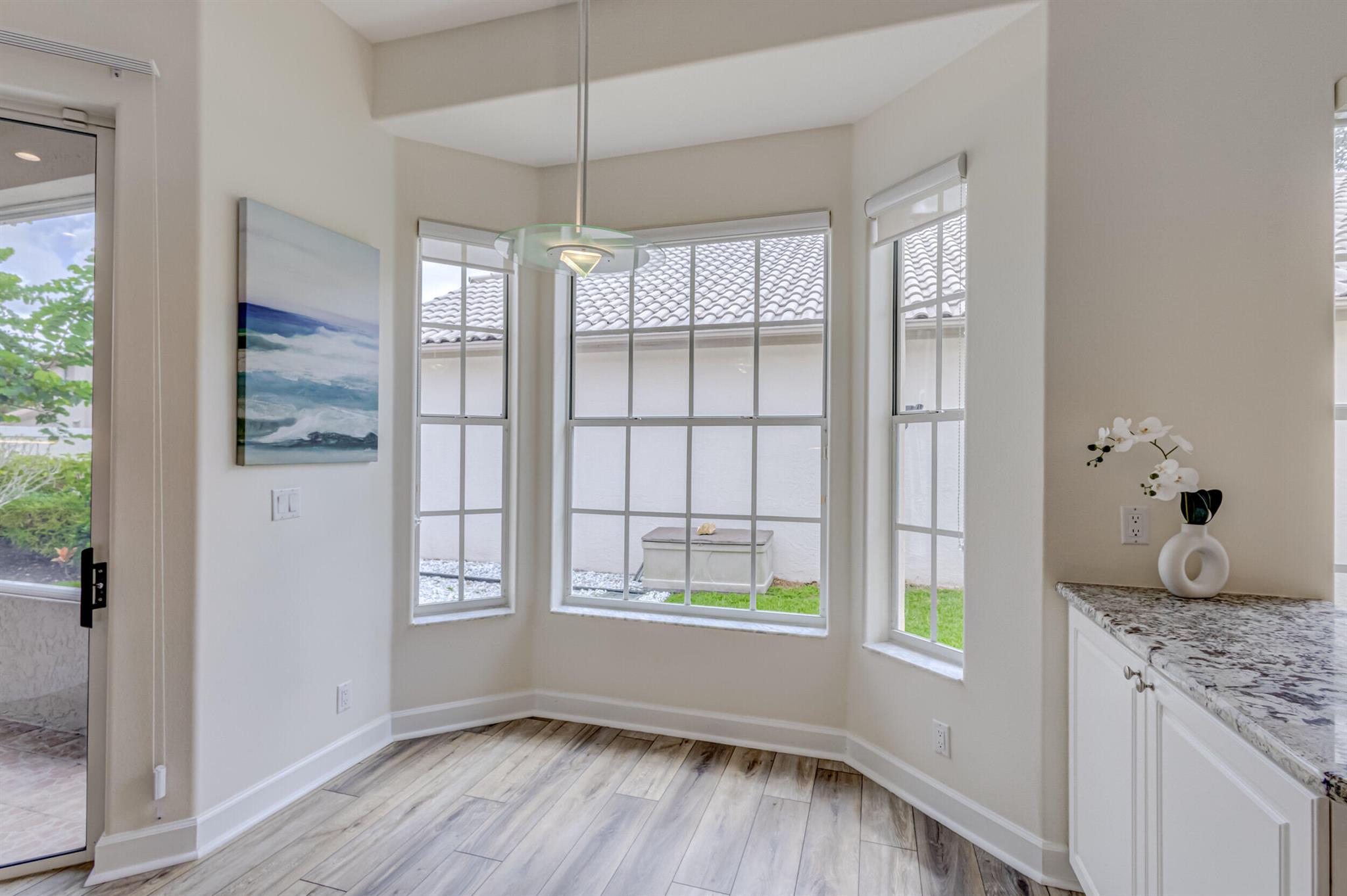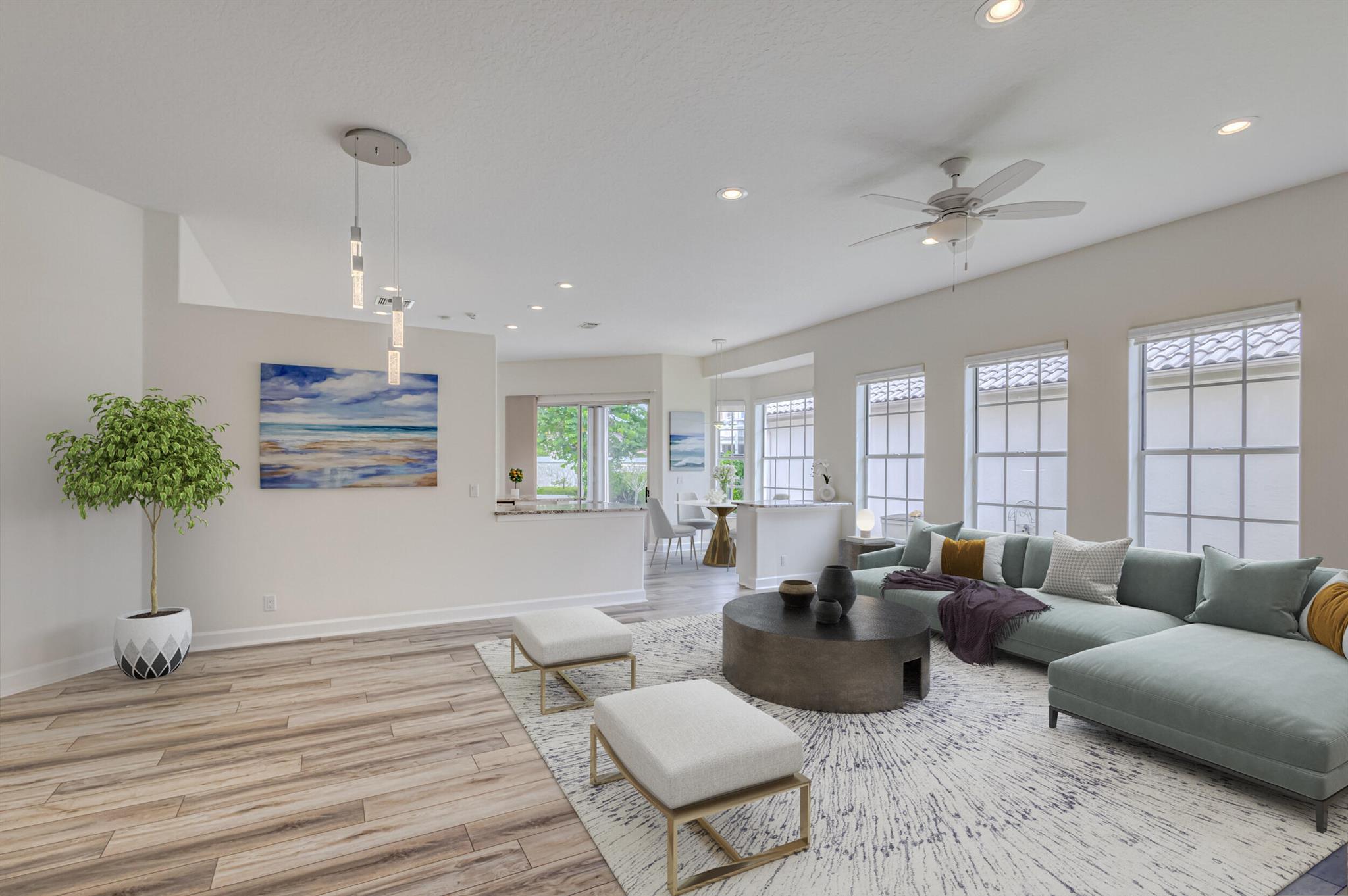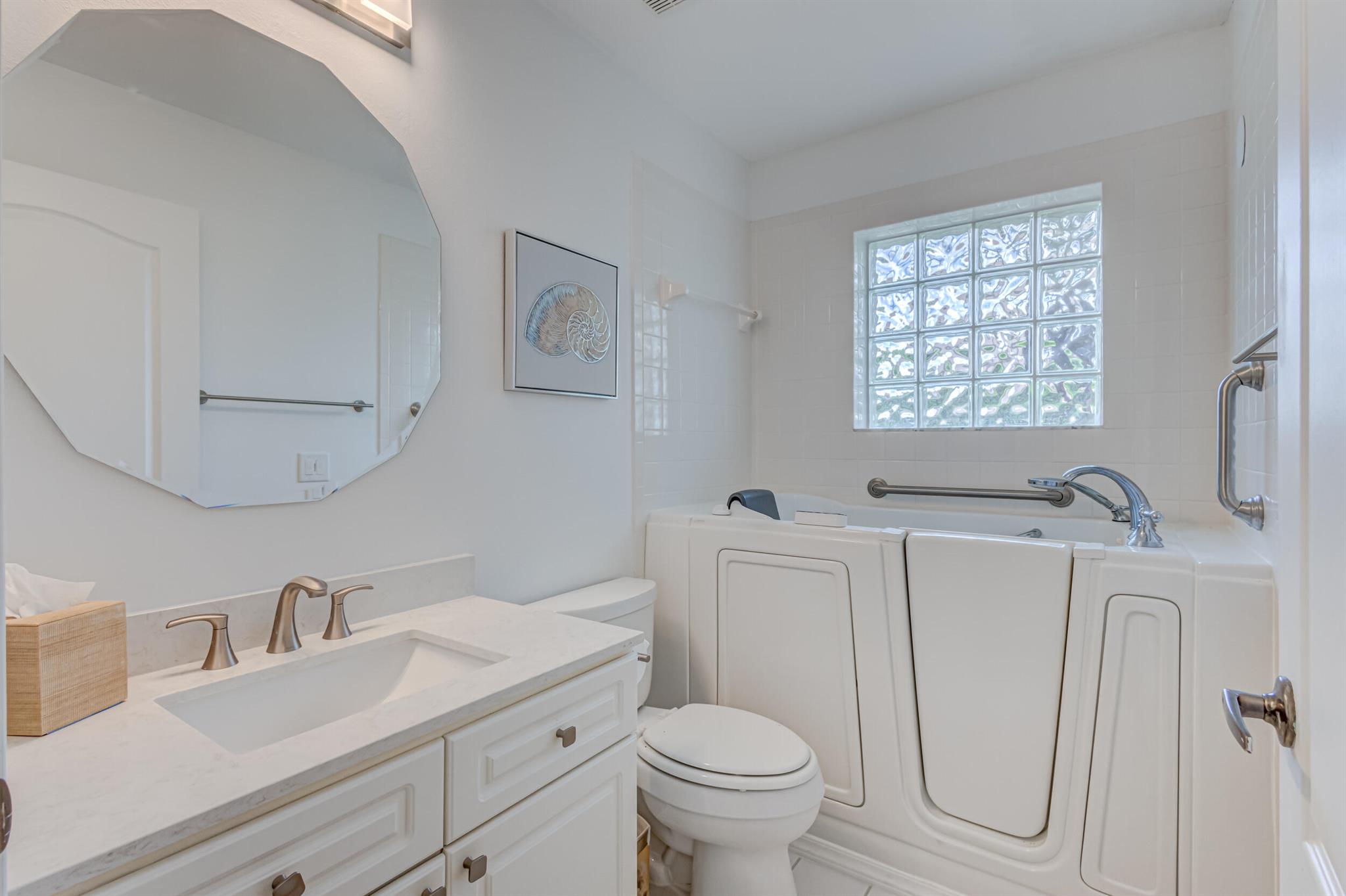 Resort Lifestyle in this light-bright fully renovated 3 bedroom 3 bath wheelchair-accessible house in the double gated community of Eagleton in the PGA Golf Resort. Open and spacious floor plan 3 bedrooms including a spacious Owner’s Suite with a spa-like bathroom and custom built closets. The third bathroom features a walk-in jacuzzi tub. Laundry Room with a quartz counter top and a stainless-steel sink. This house feature simulated wood porcelain tile floors. Open bright gourmet kitchen with gas stove, custom cabinetry, granite countertops with a large eat-in island. Enjoy private backyard with a screened patio. 2 car attached garage includes extra storage. House is within short walk to the community pool. In the heart of PBG. Also nice quite neighborhood with no traffic noice.