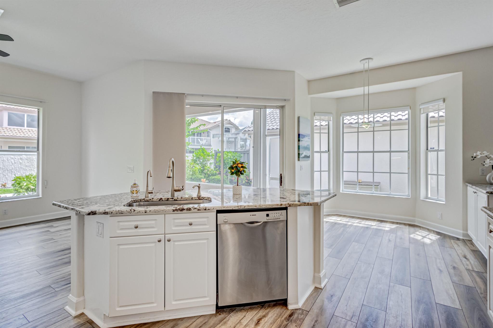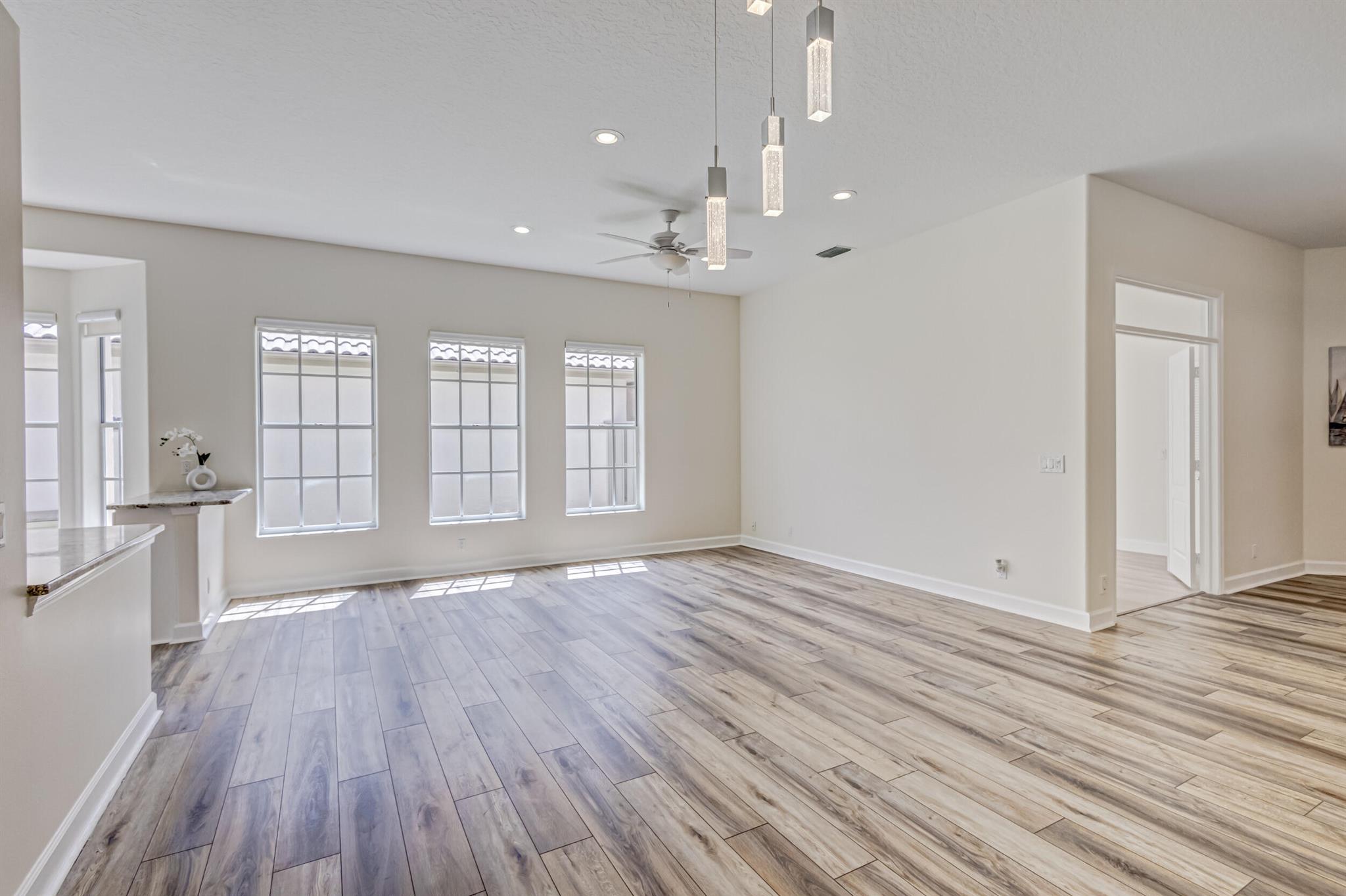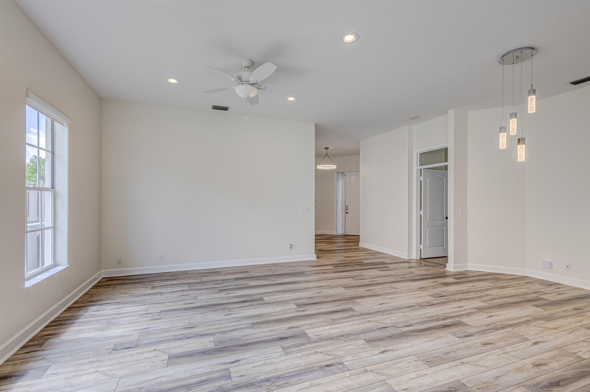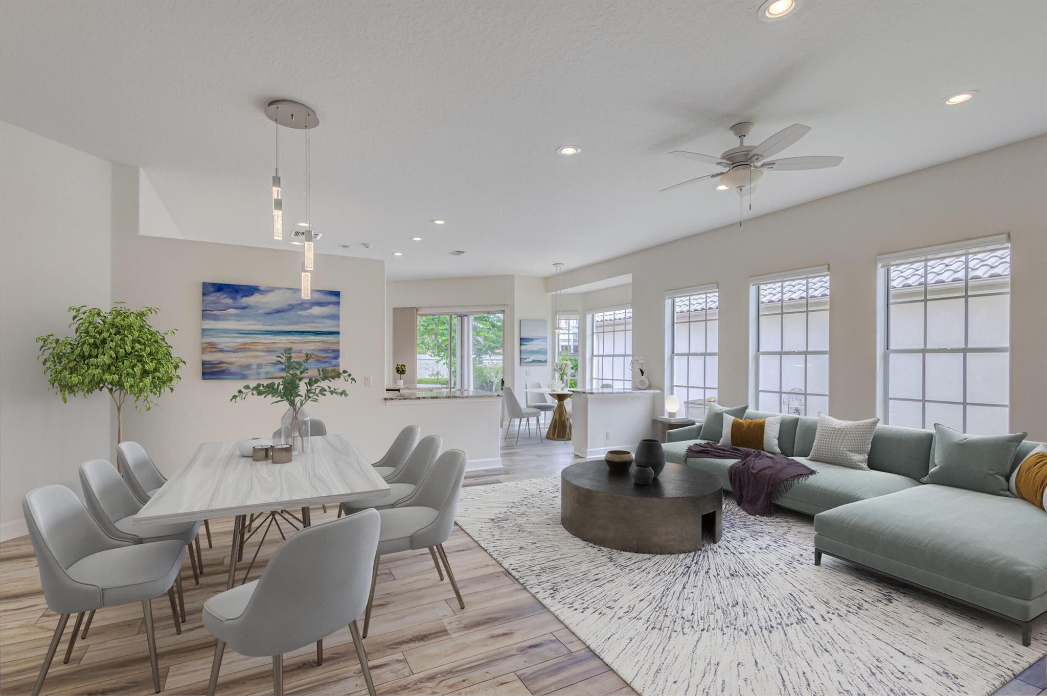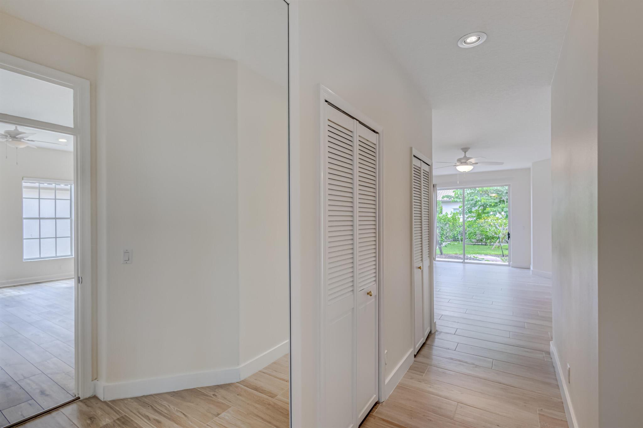 Resort Lifestyle in this light-bright fully renovated 3 bedroom 3 bath wheelchair-accessible house in the double gated community of Eagleton in the PGA Golf Resort. Open and spacious floor plan 3 bedrooms including a spacious Owner’s Suite with a spa-like bathroom and custom built closets. The third bathroom features a walk-in jacuzzi tub. Laundry Room with a quartz counter top and a stainless-steel sink. This house feature simulated wood porcelain tile floors. Open bright gourmet kitchen with gas stove, custom cabinetry, granite countertops with a large eat-in island. Enjoy private backyard with a screened patio. 2 car attached garage includes extra storage. House is within short walk to the community pool. In the heart of PBG. Also nice quite neighborhood with no traffic noice.