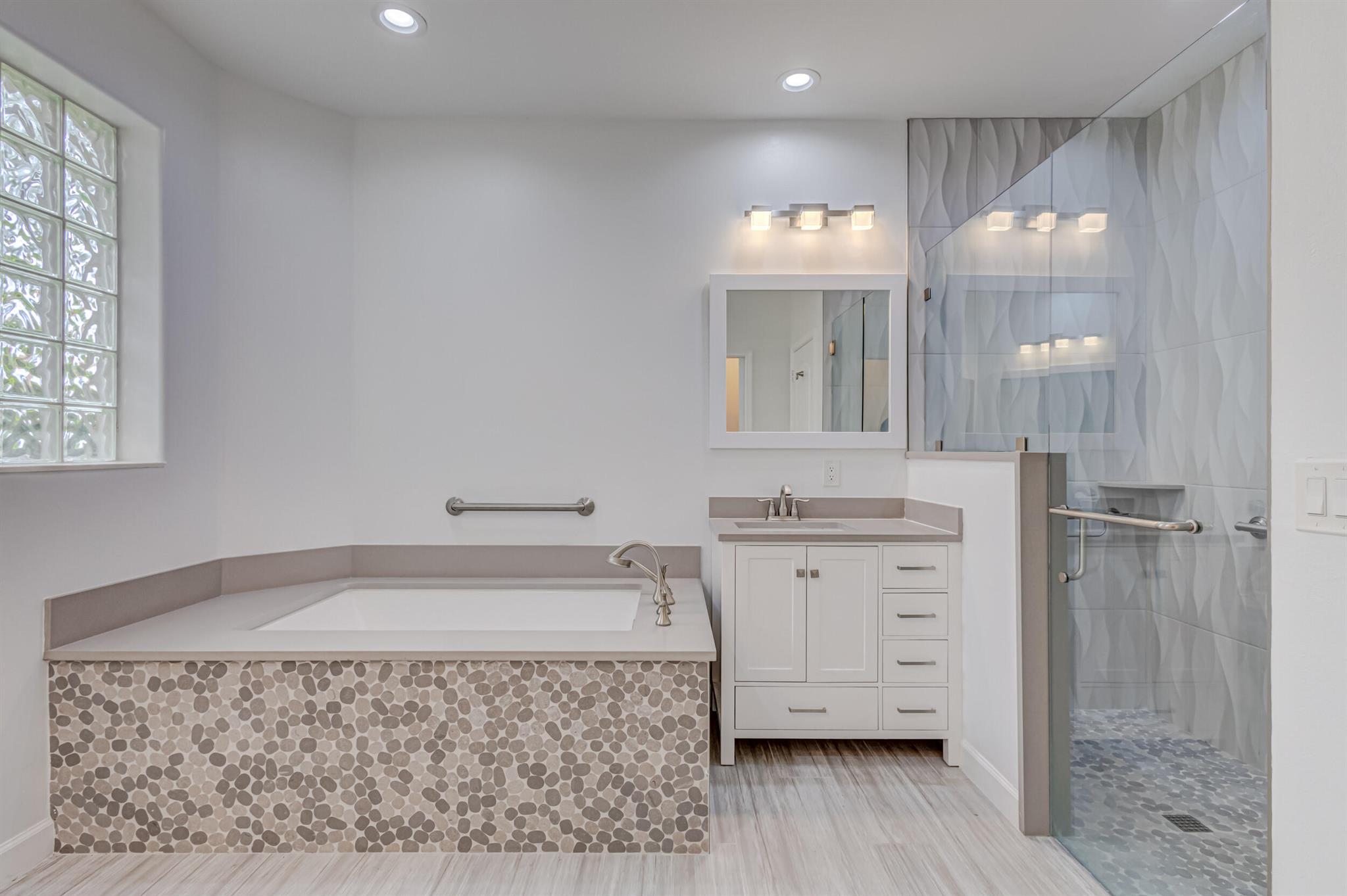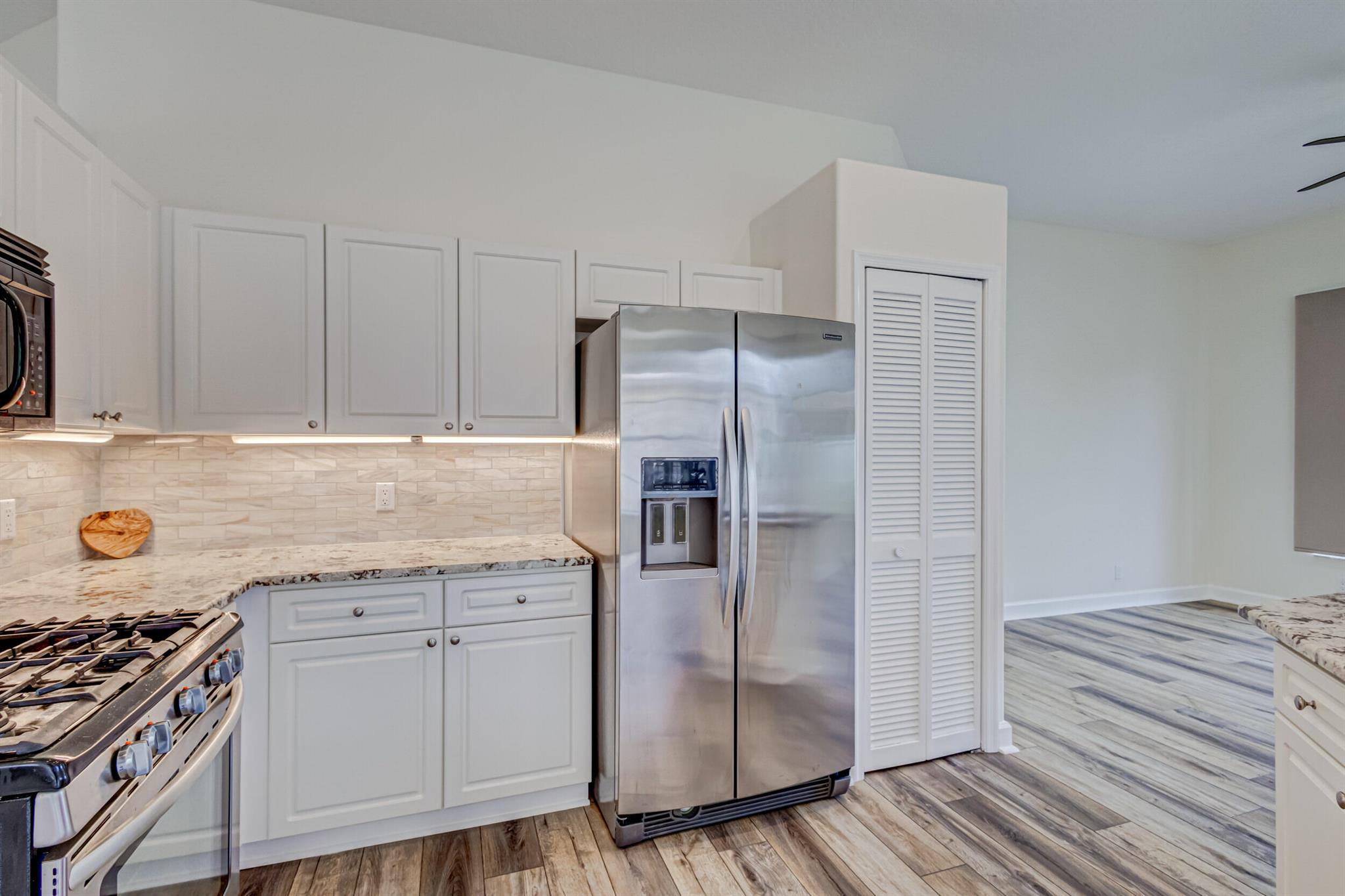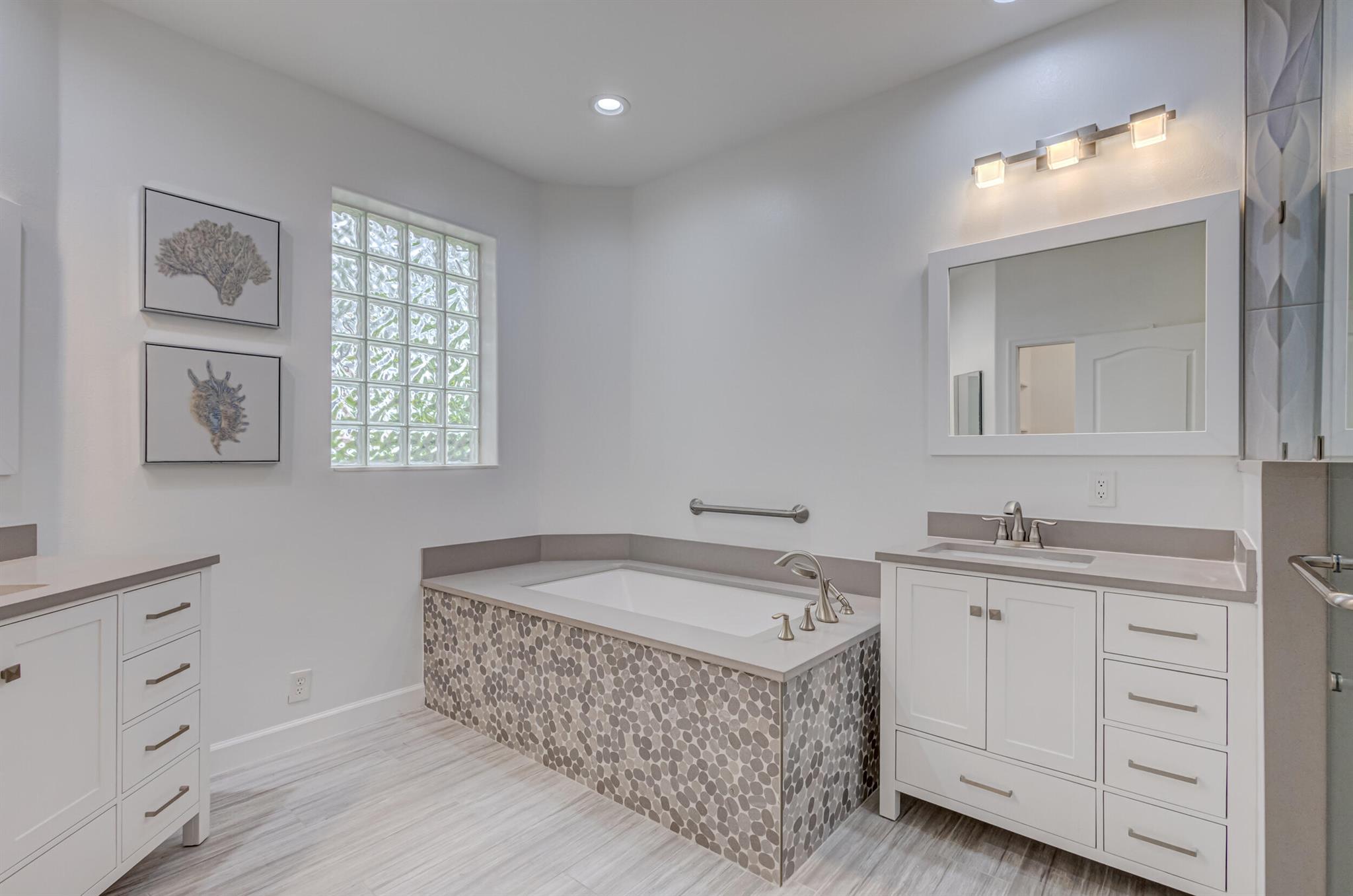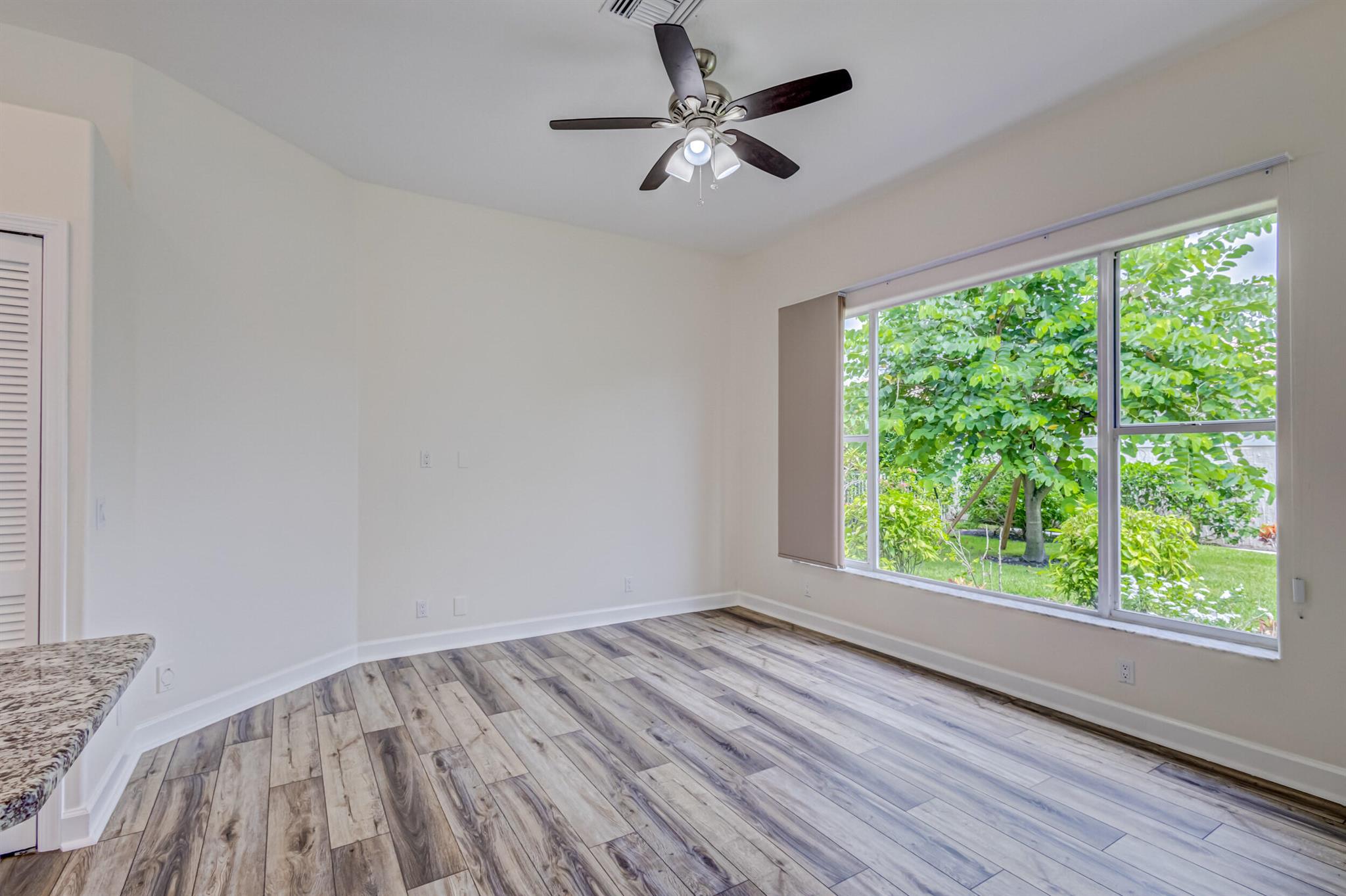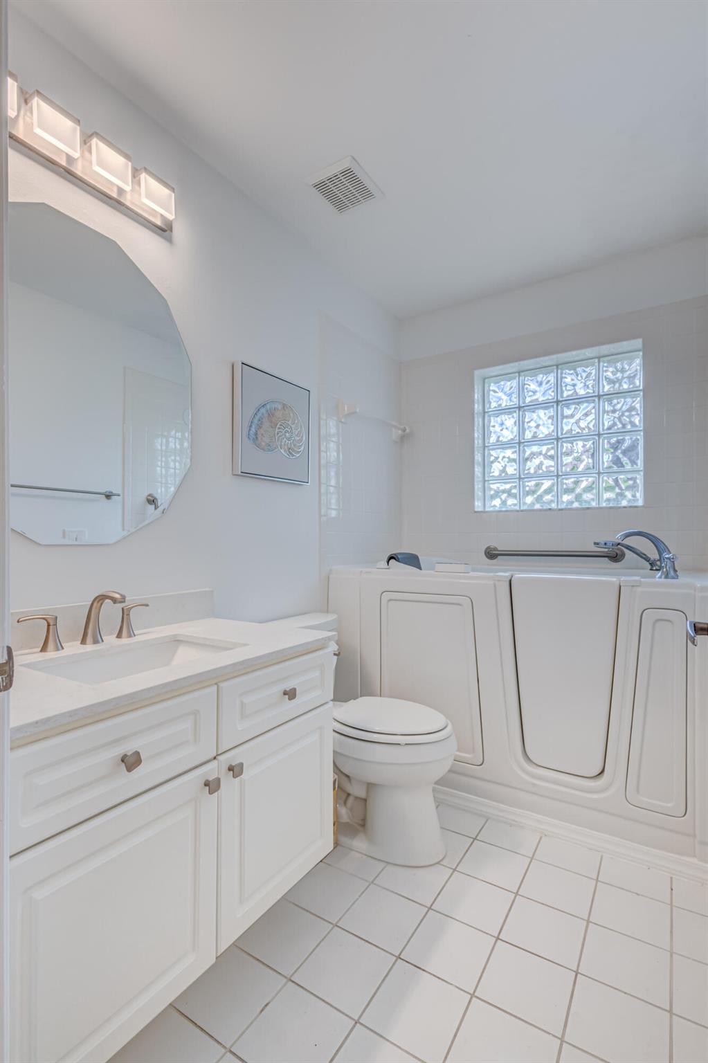 Resort Lifestyle in this light-bright fully renovated 3 bedroom 3 bath wheelchair-accessible house in the double gated community of Eagleton in the PGA Golf Resort. Open and spacious floor plan 3 bedrooms including a spacious Owner’s Suite with a spa-like bathroom and custom built closets. The third bathroom features a walk-in jacuzzi tub. Laundry Room with a quartz counter top and a stainless-steel sink. This house feature simulated wood porcelain tile floors. Open bright gourmet kitchen with gas stove, custom cabinetry, granite countertops with a large eat-in island. Enjoy private backyard with a screened patio. 2 car attached garage includes extra storage. House is within short walk to the community pool. In the heart of PBG. Also nice quite neighborhood with no traffic noice.