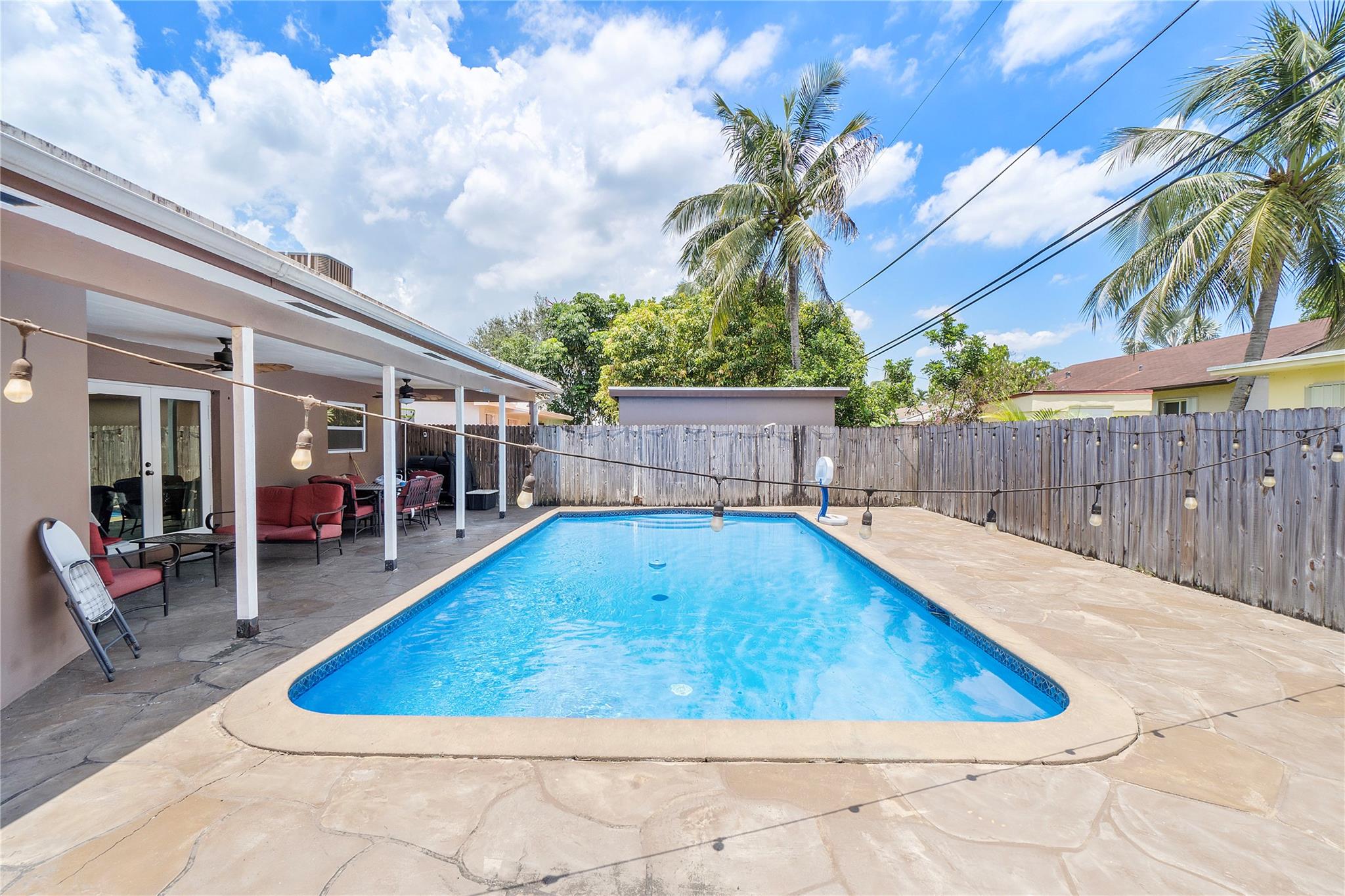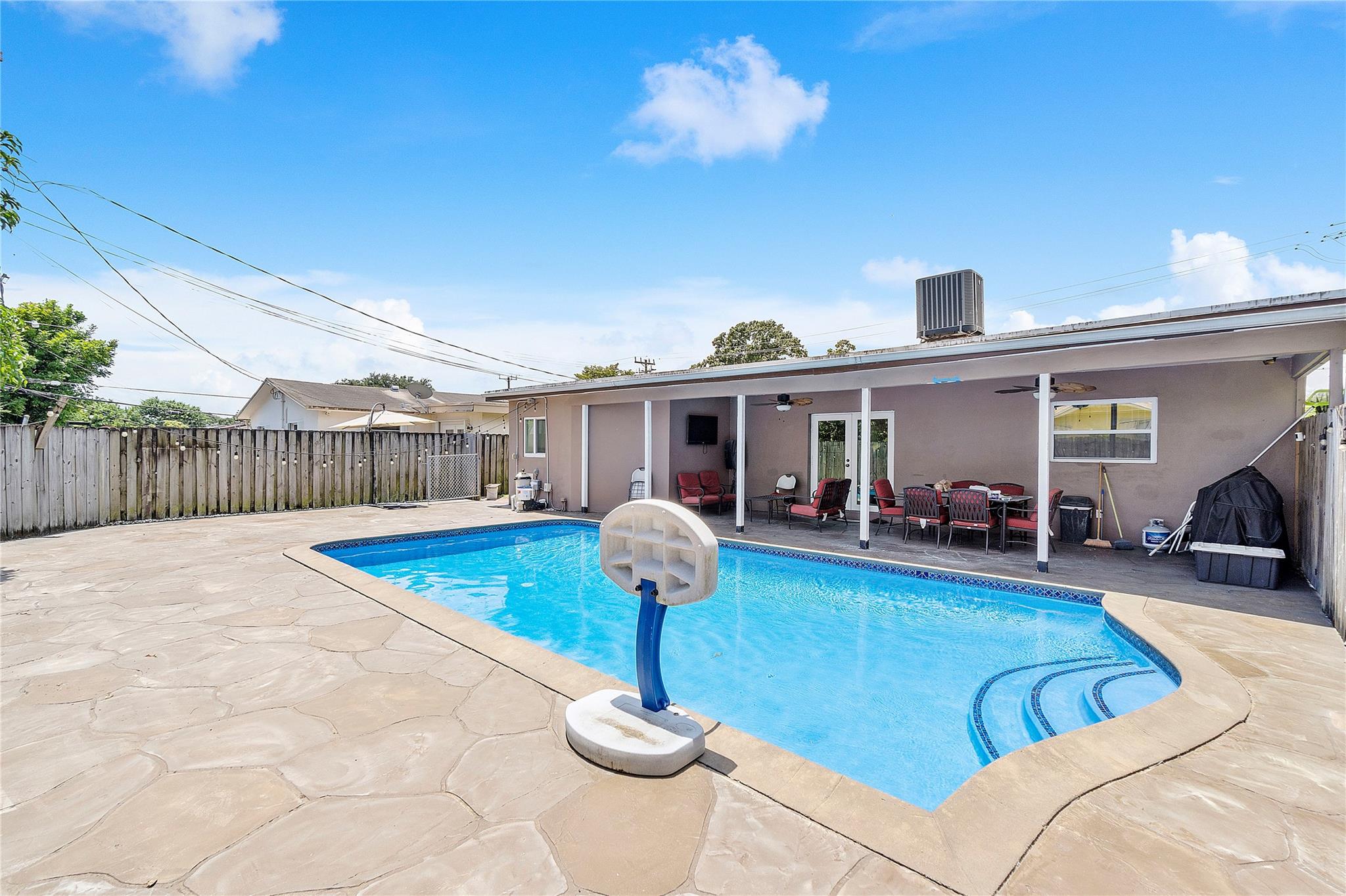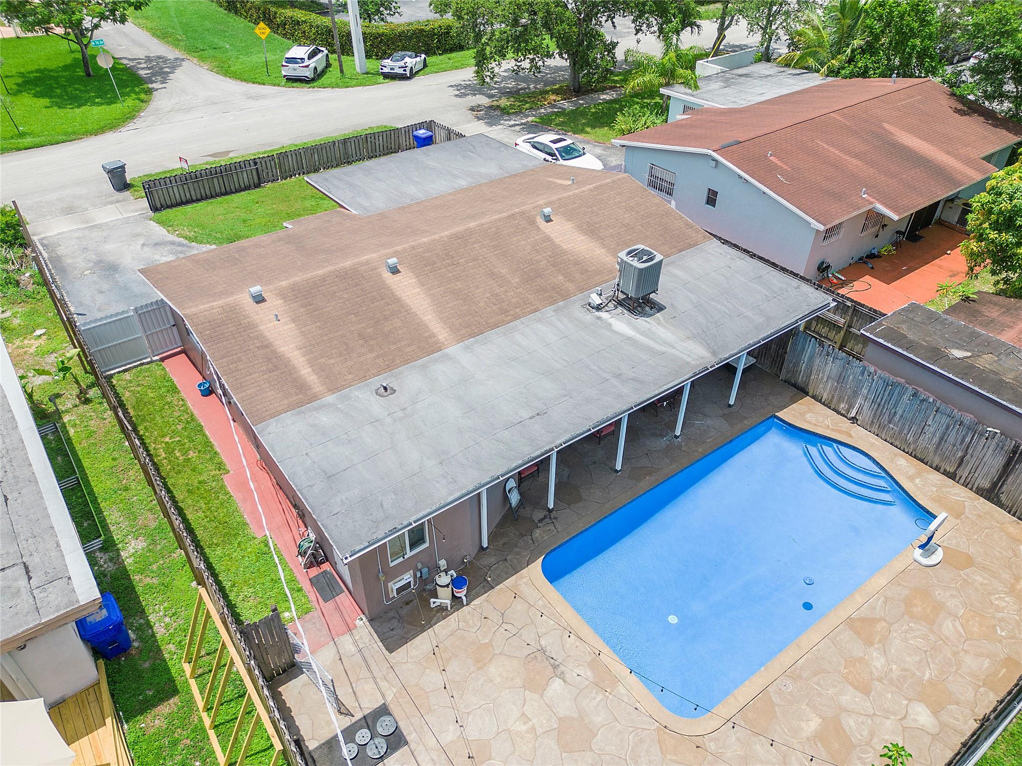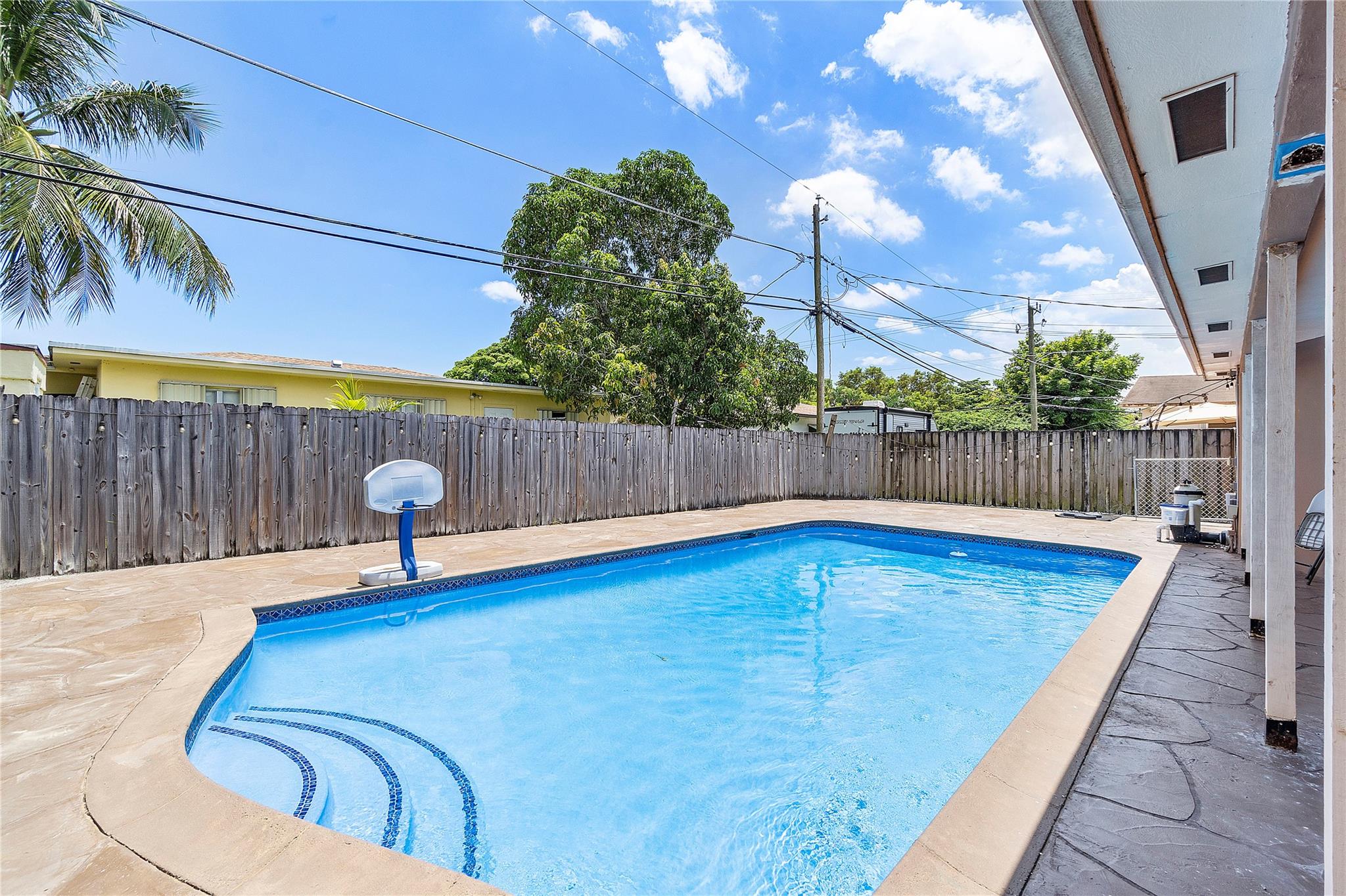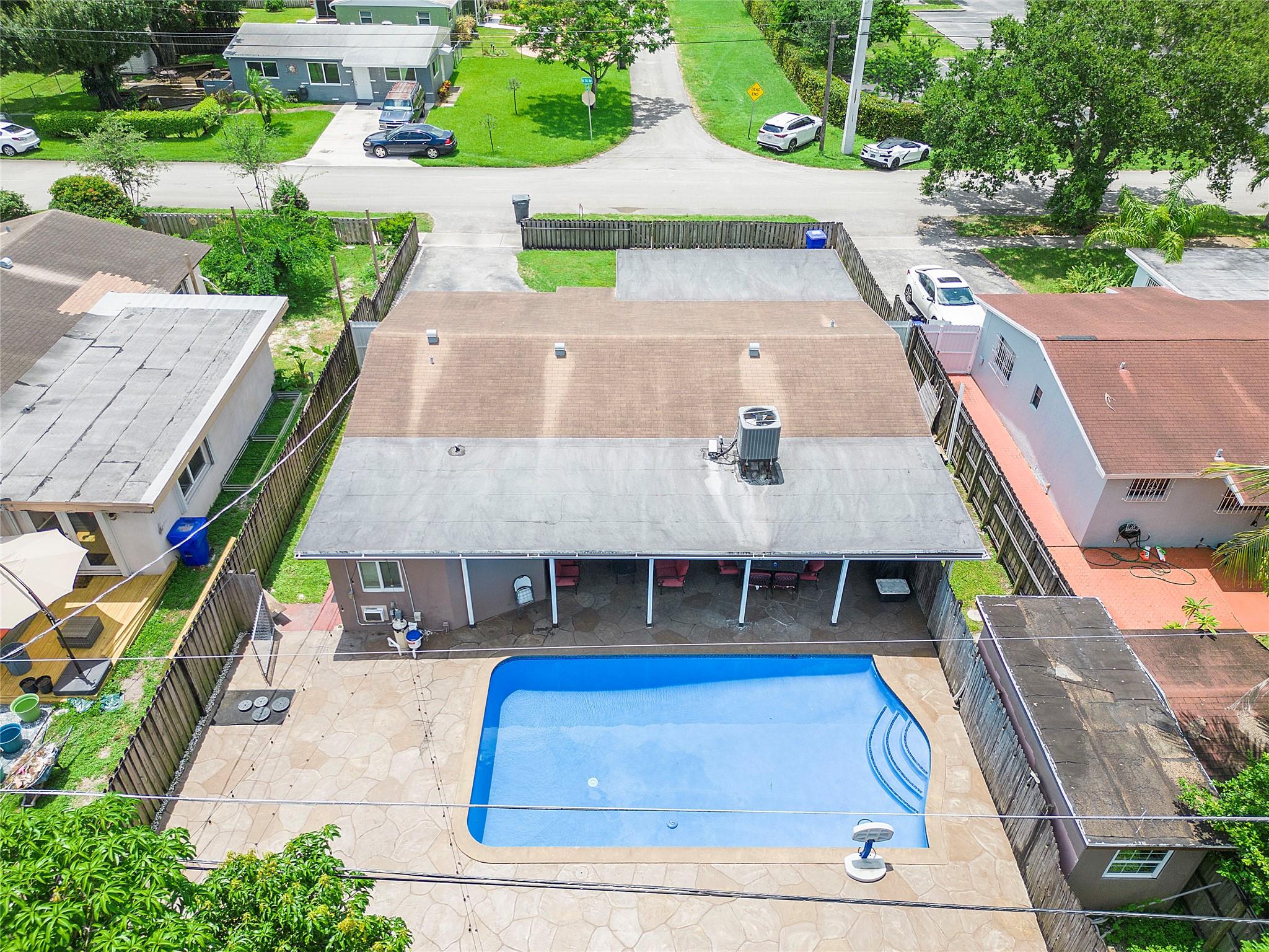 The house has impact windows and doors, ensuring safety and security. Fenced backyard includes a shed, there is even a potential income-generating small efficiency with a full bathroom and wall unit A/C. Recently added amenities include a sparkling new pool and flooring, along with a new A/C system.