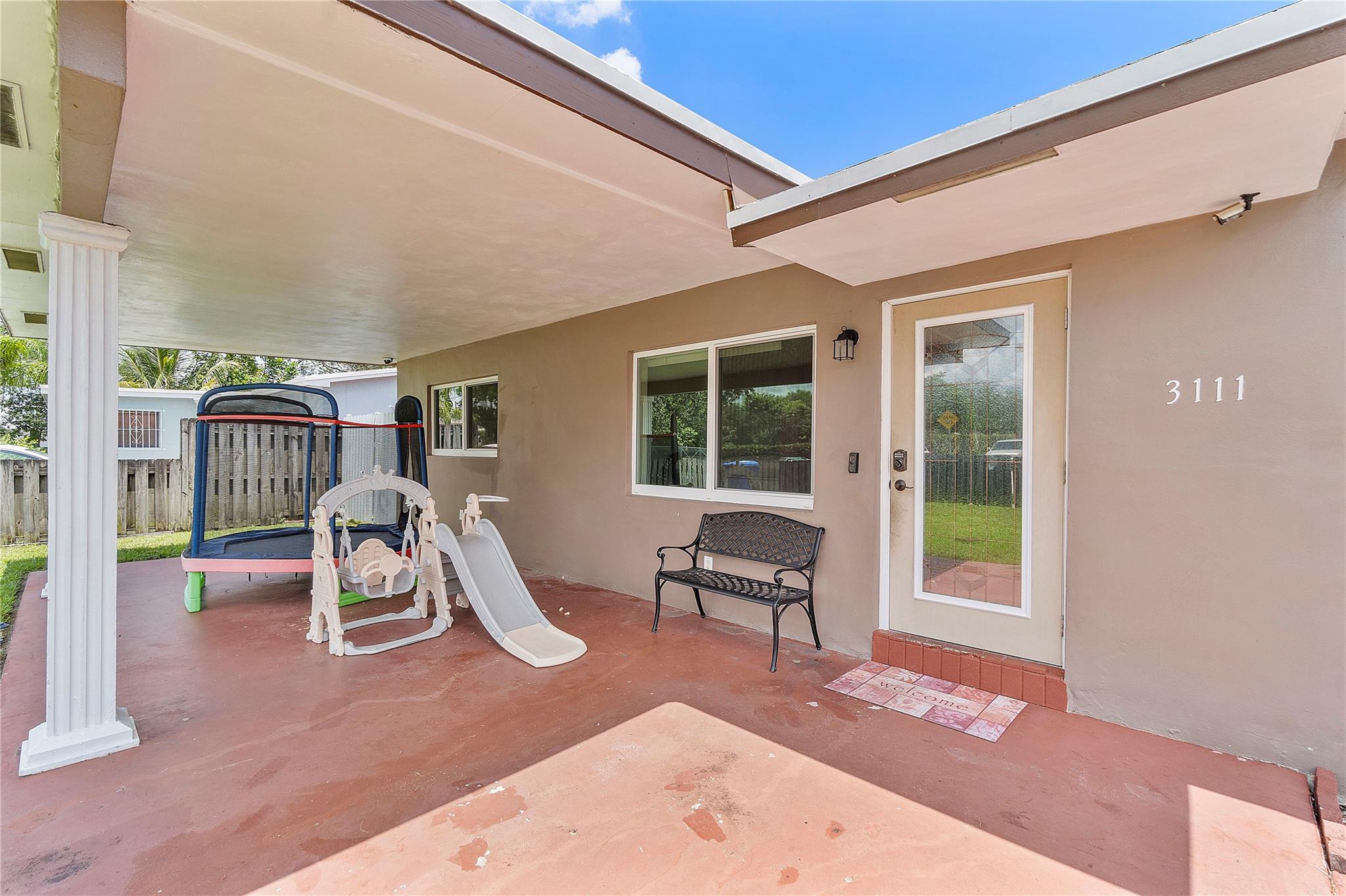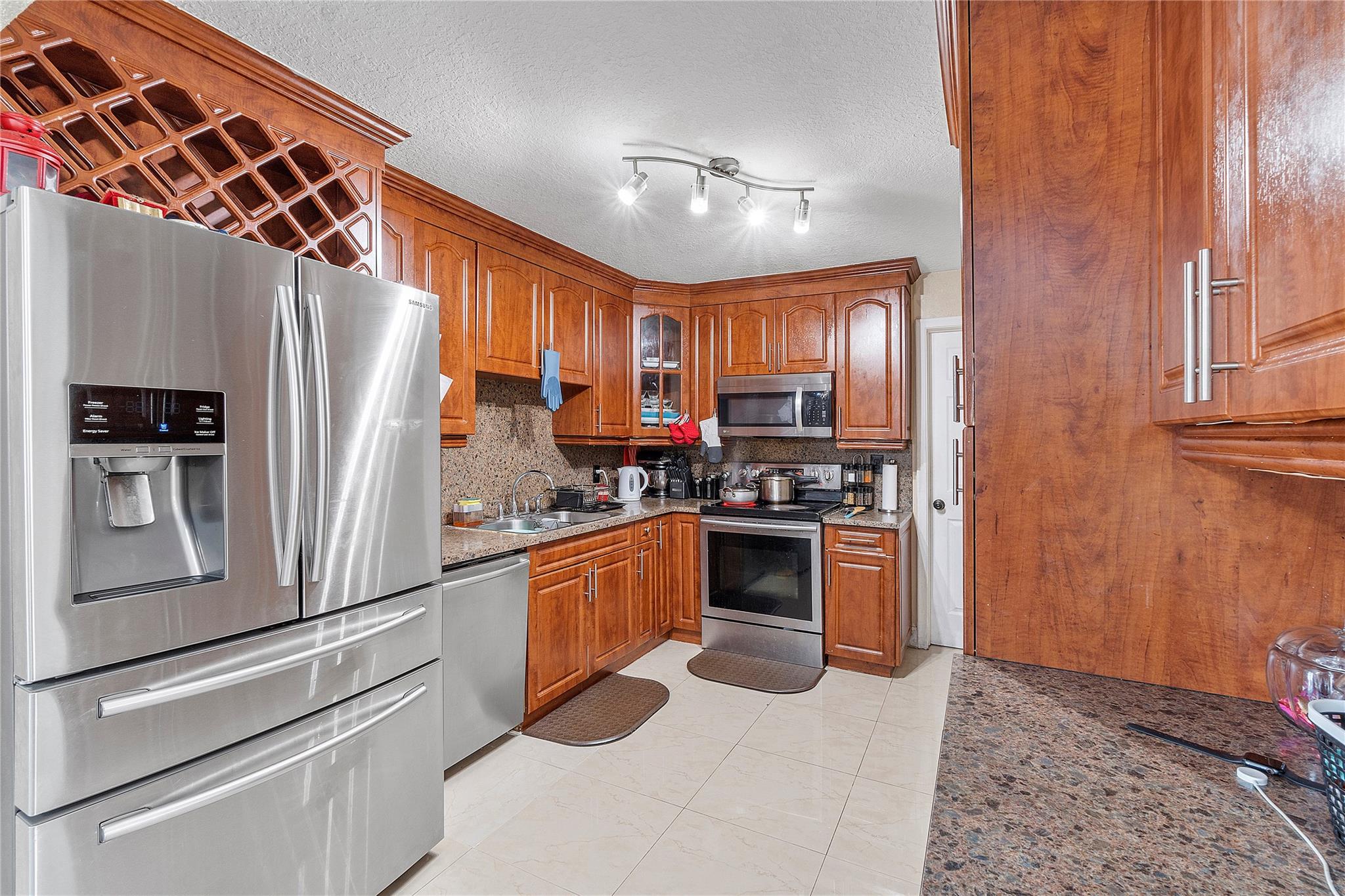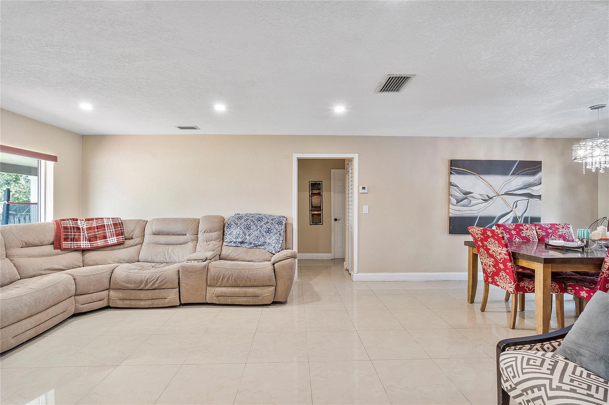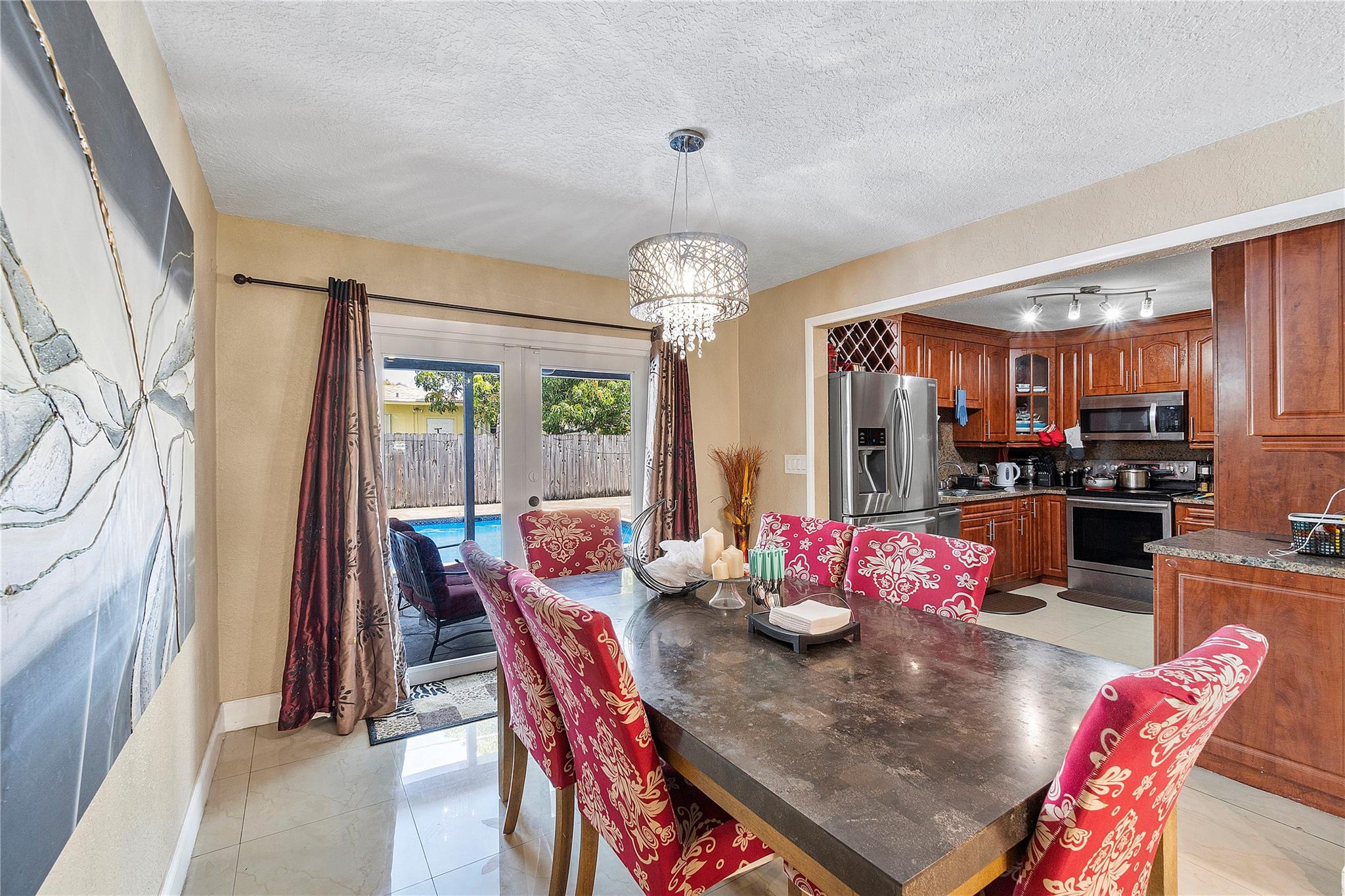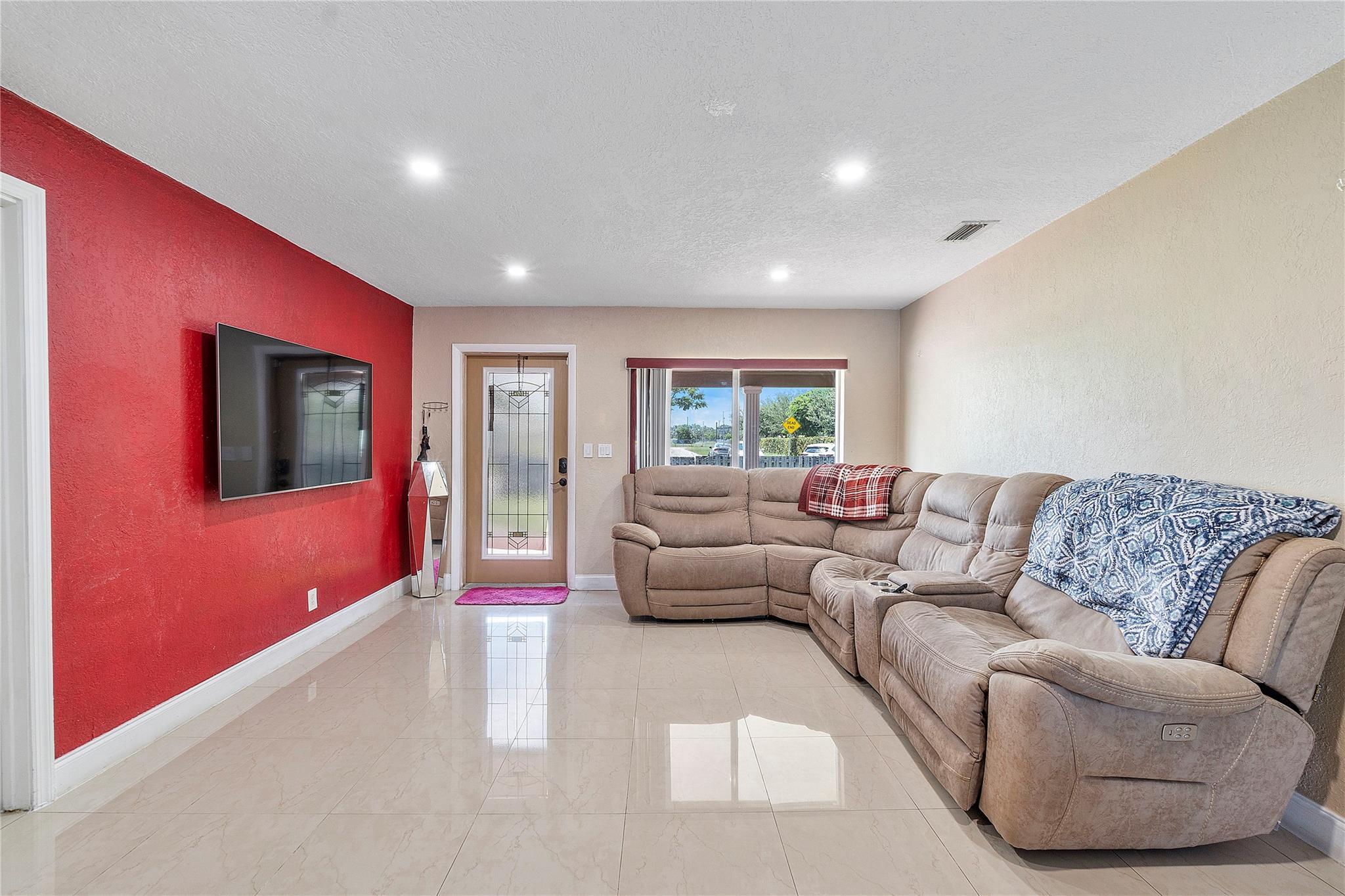 A separate laundry room is available. Porcelain tiles throughout the house. The kitchen is equipped with sleek stainless steel appliances and features a brand-new microwave. Roof replaced in 2016 and A/C replaced last year.