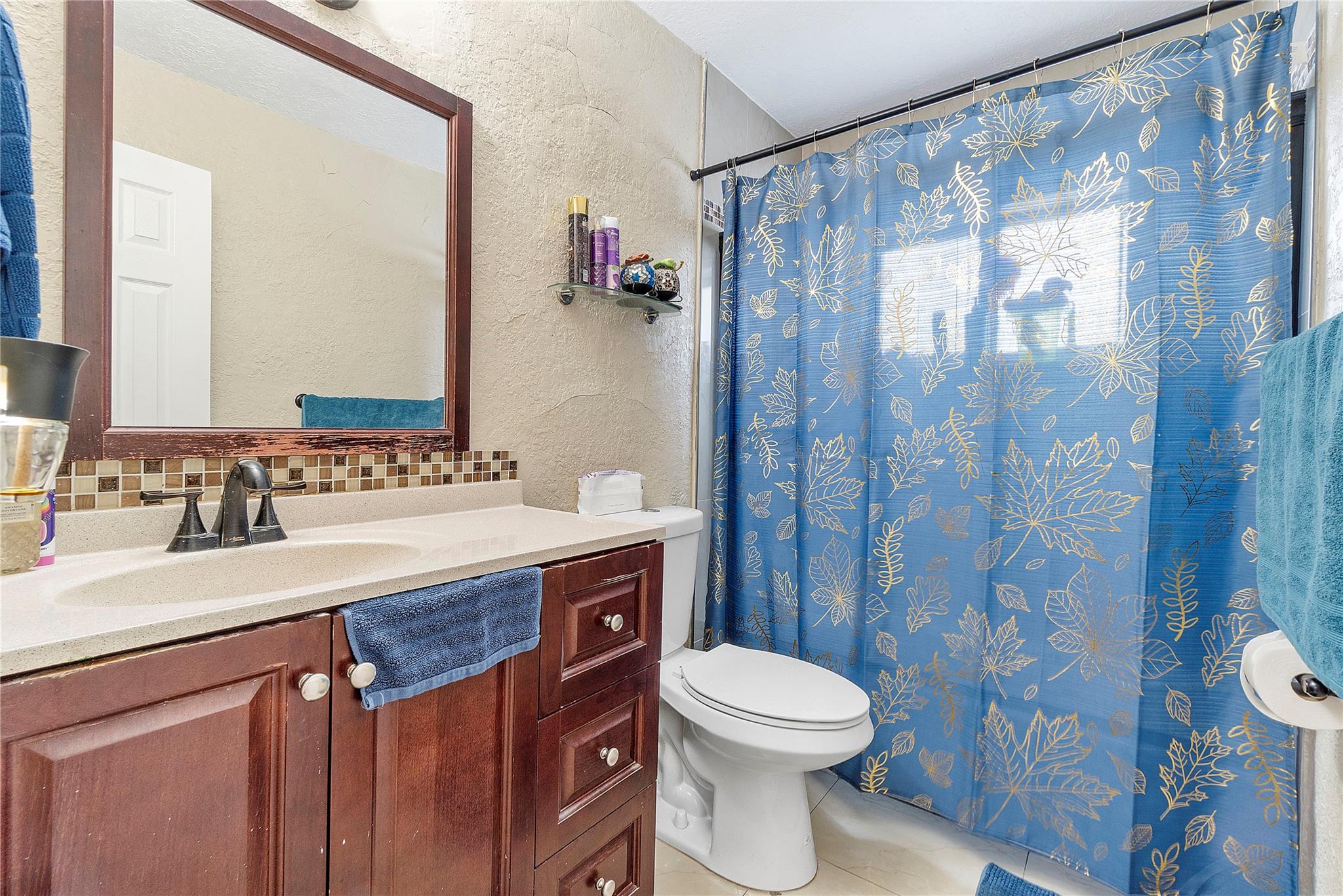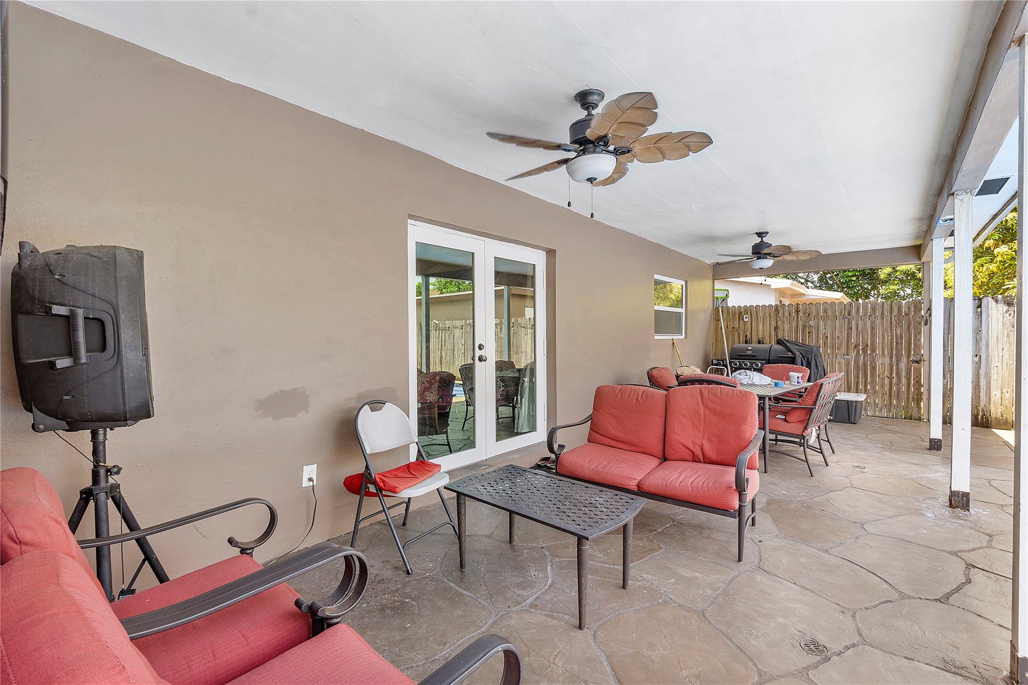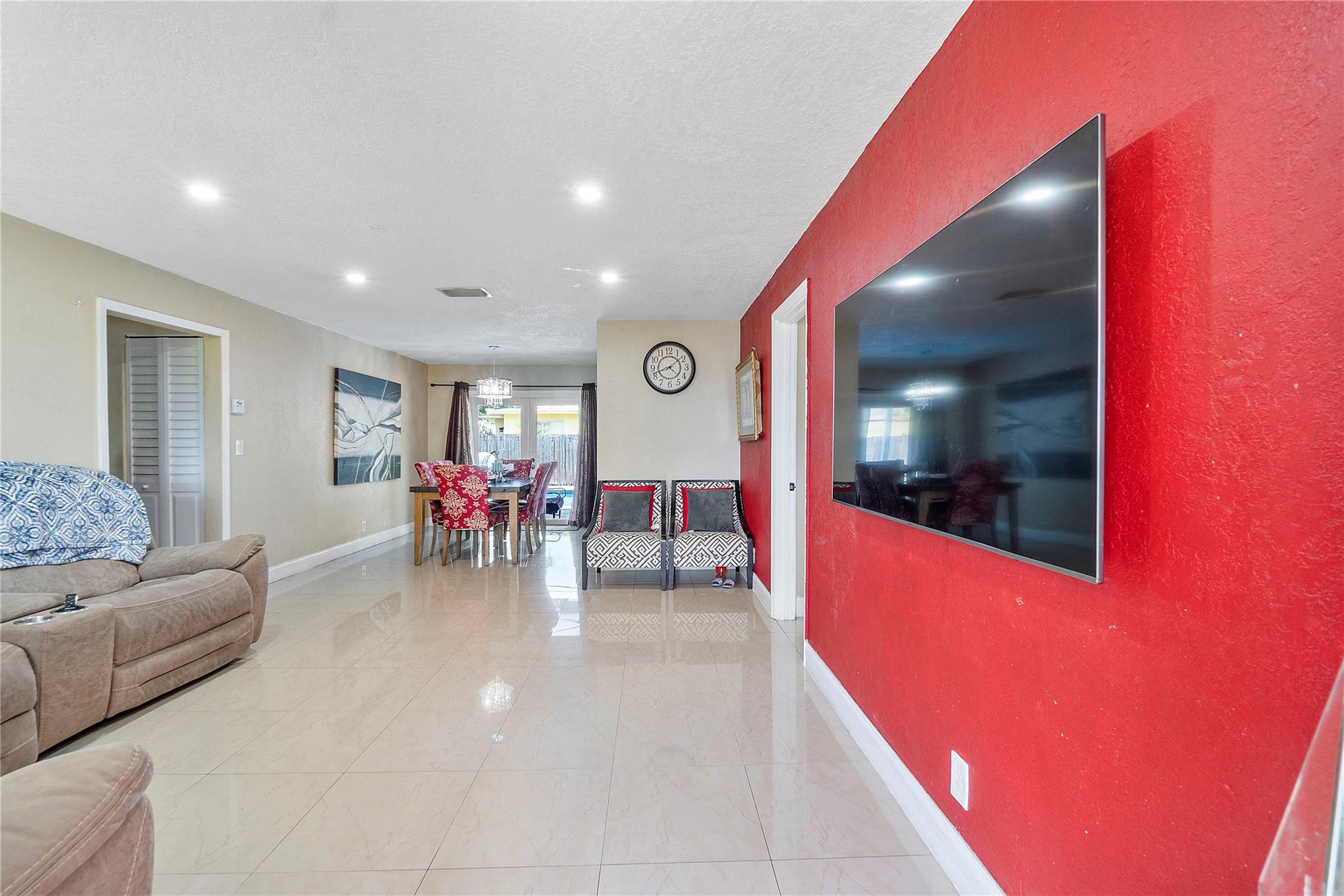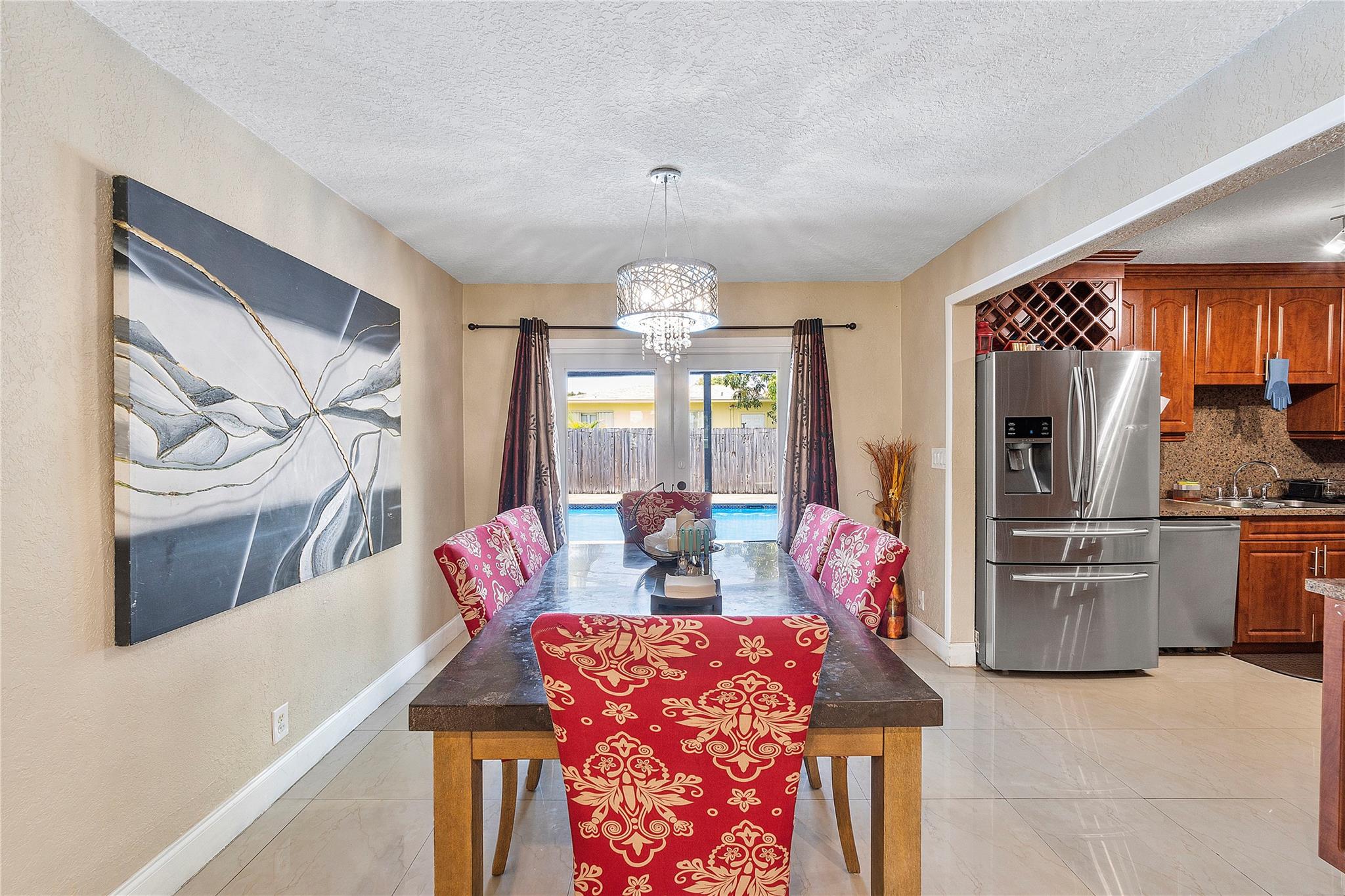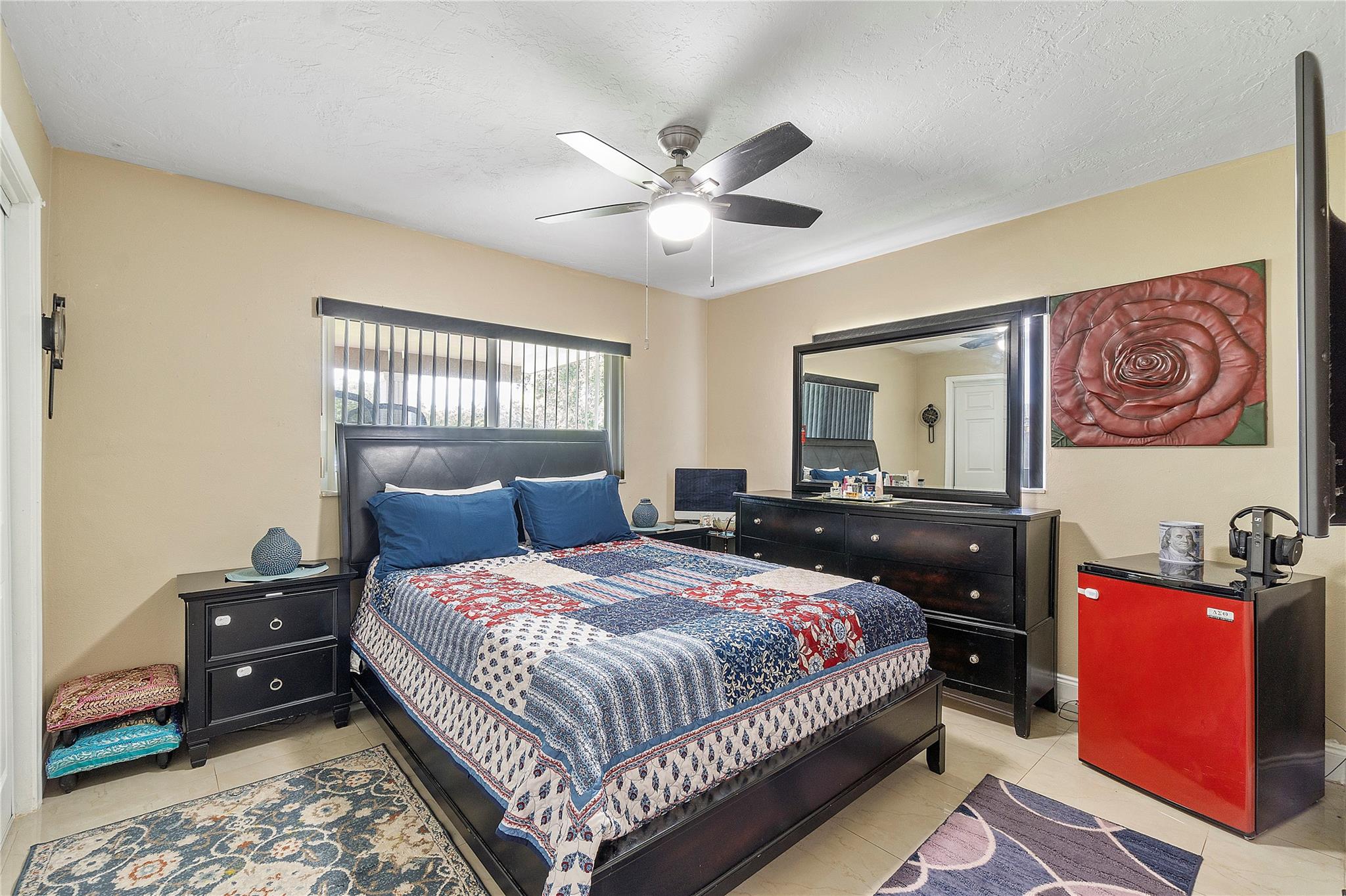 A separate laundry room is available. Porcelain tiles throughout the house. The kitchen is equipped with sleek stainless steel appliances and features a brand-new microwave. Roof replaced in 2016 and A/C replaced last year.