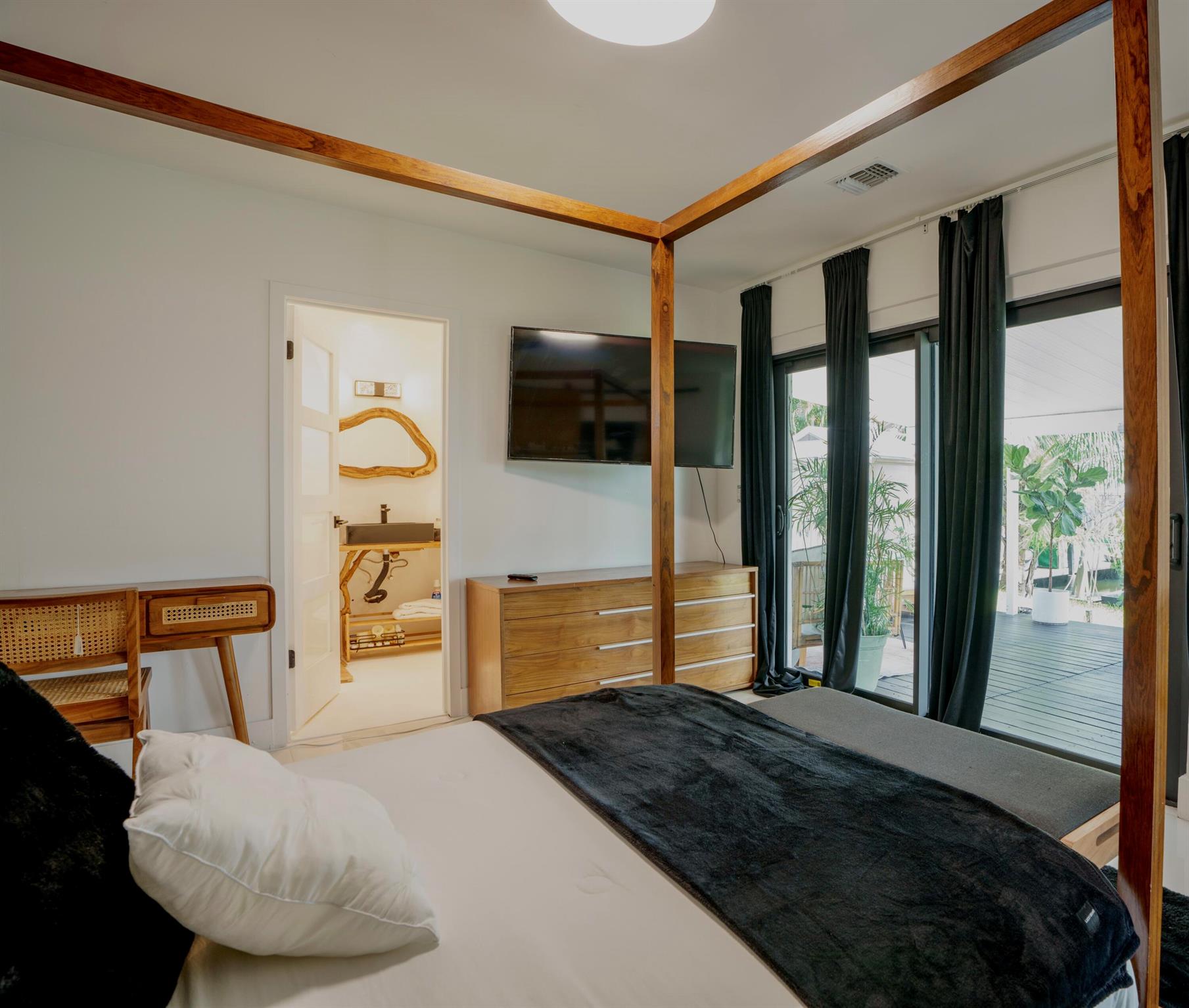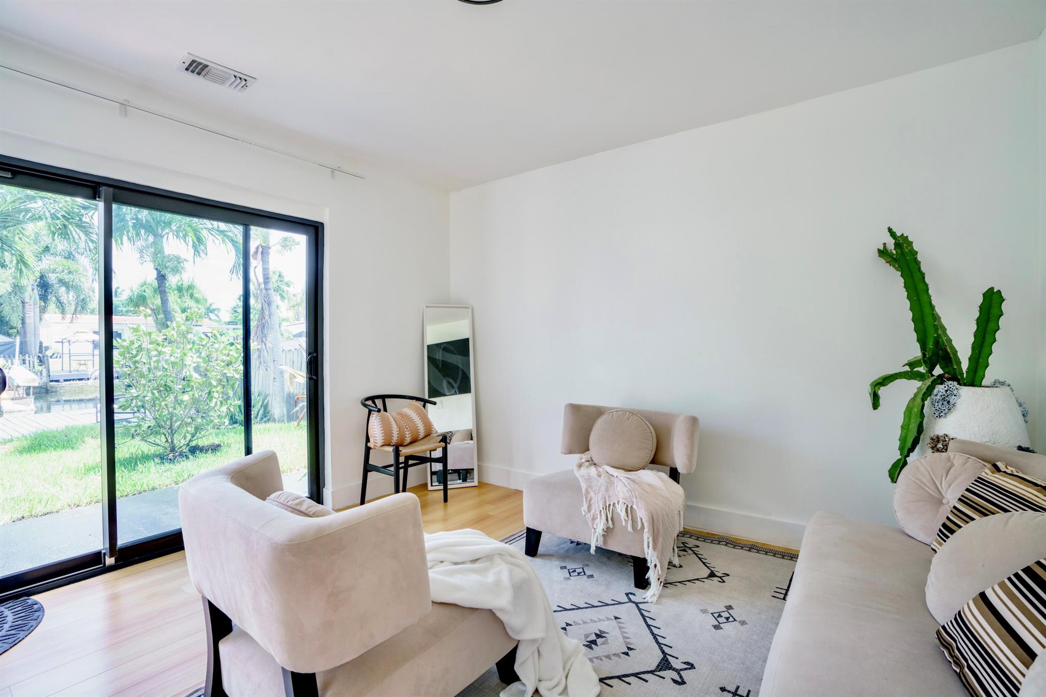 Ocean access waterfront 3bd 3 bathroom home, 6050 Sq Ft lot, Fully Furnished, with 55Ft Boat Dock, 30K sea wall, jet ski anchor pole with shore power.This waterfront home is the last available one in this area.Home is professional design and turnkey ready perfect for busy professionals, Airbnb Investment, and family who loves waterfront living. Soundproof windows and doors, fully fenced and 100% safe neighborhood.Active Backyard, enjoy Canoe, fishing, swimming,boating, host events,watch birds, manatees and turtles.Parking in the front for 6 cars. With additional 2 car space or boat parking at the side of the house.Home is design Modern Zen -Mediterranean Inspired Style. Boasting Greece micro cement bathroom & bedrooms.Indonesian