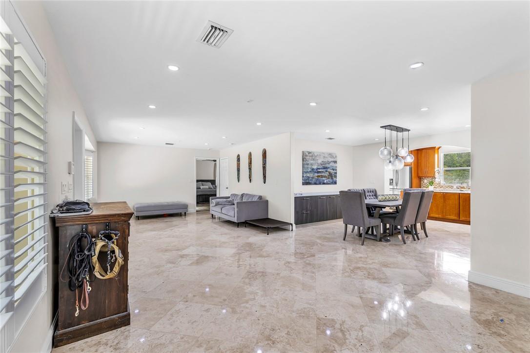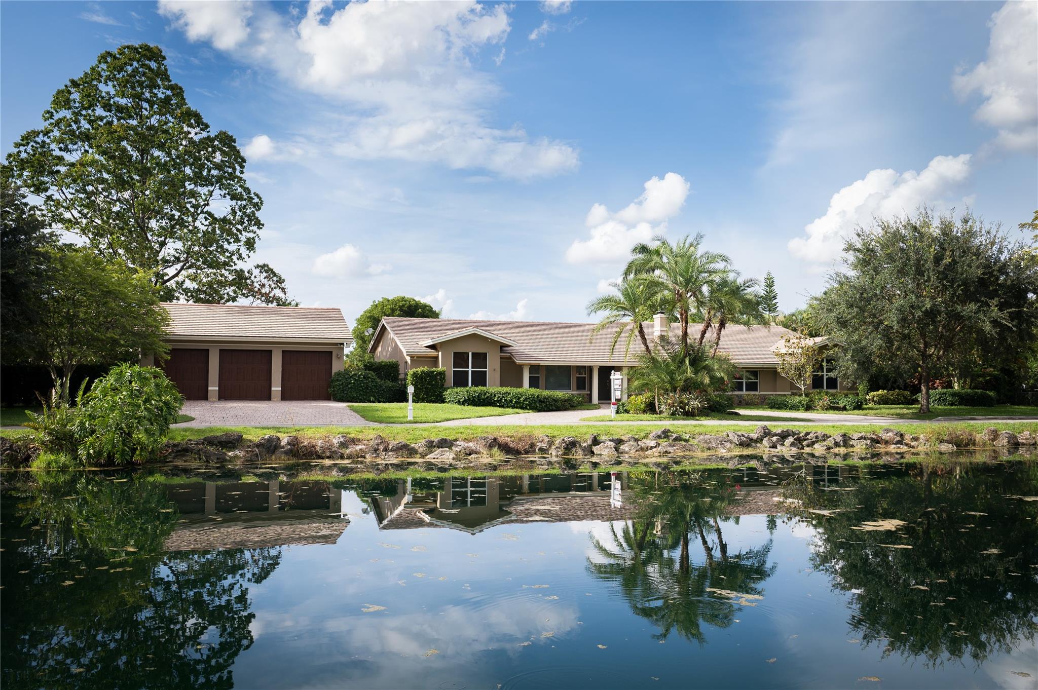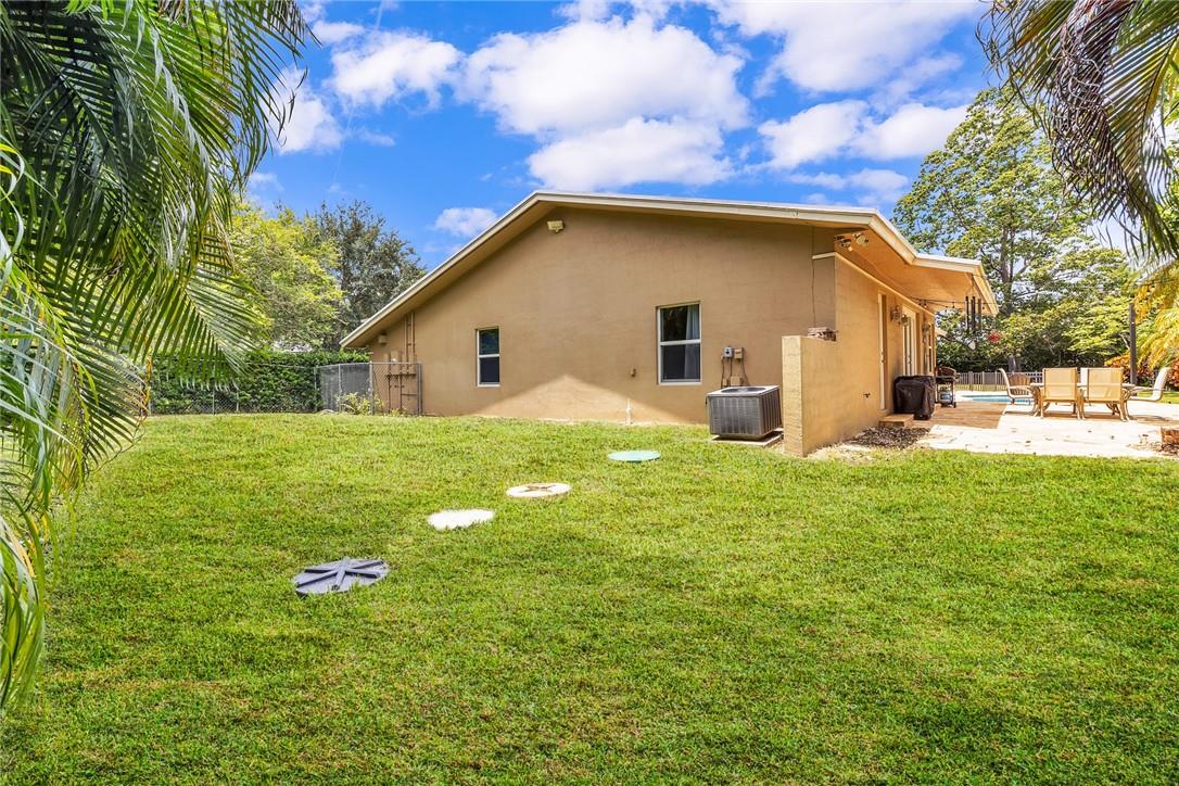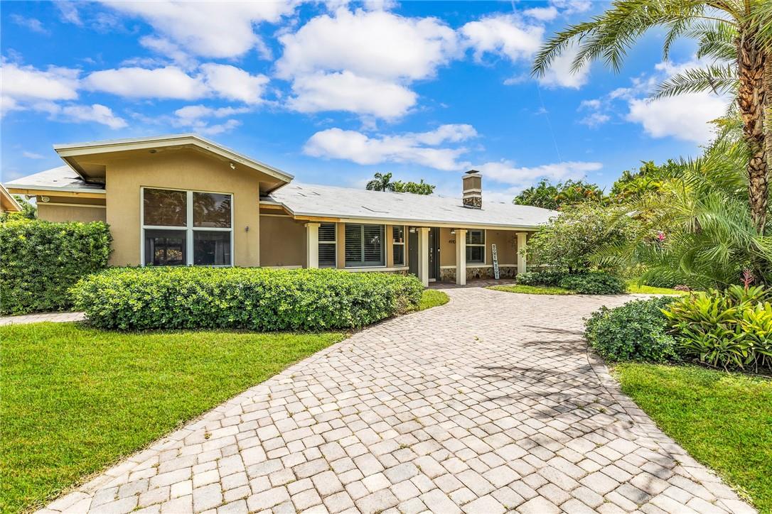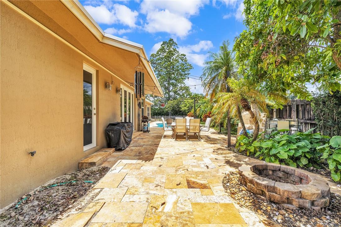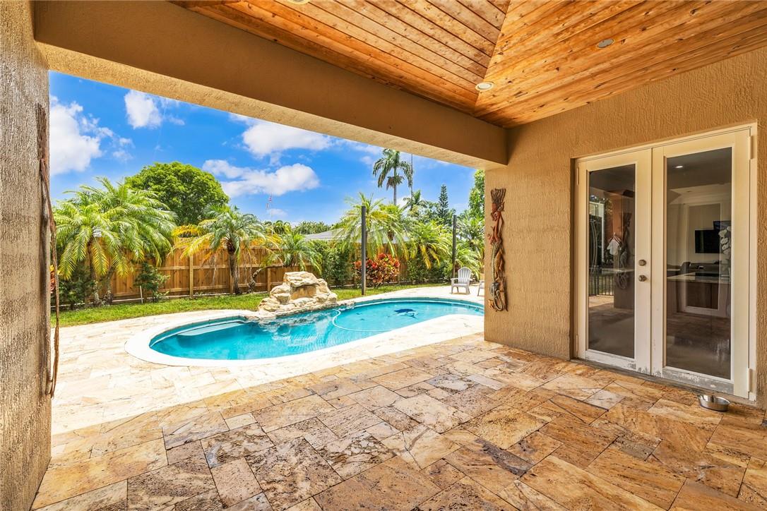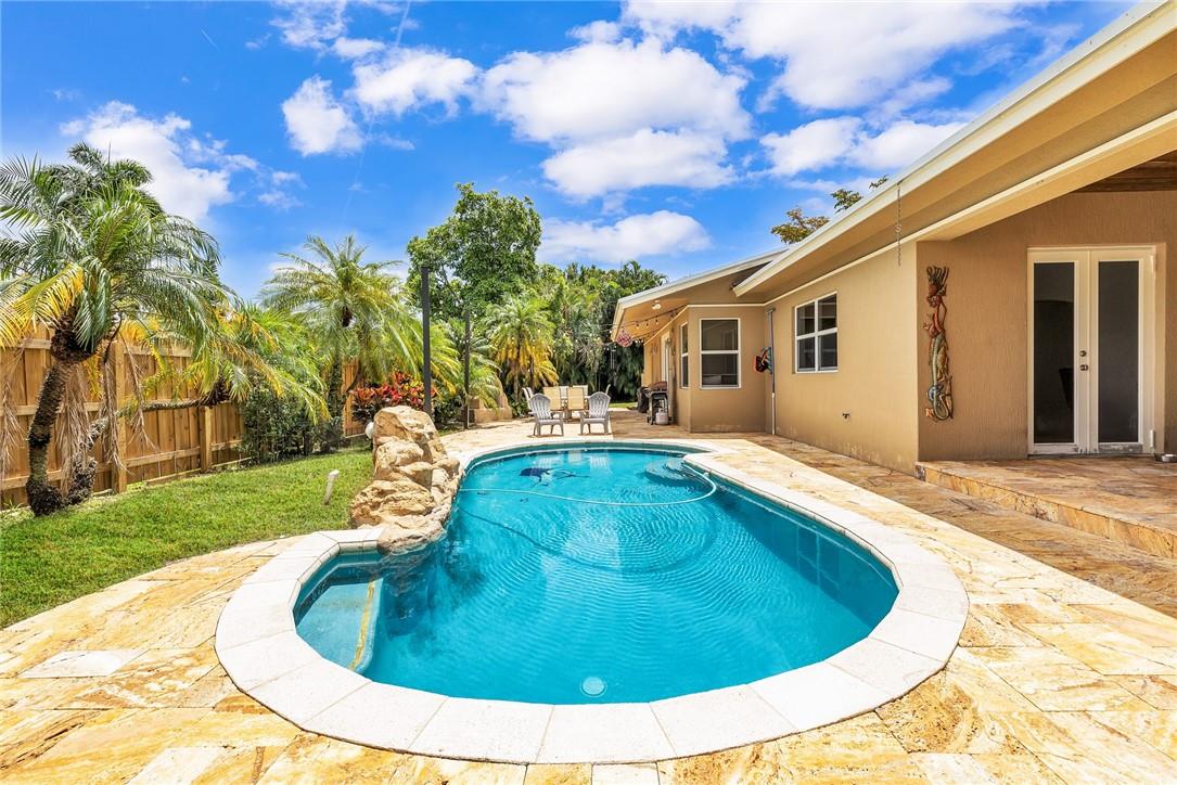 A beautiful 4 bedroom, 3 1/2 bathroom with a pool in Davie, Florida. Nestled on 9/10ths of an acre you will find this home to check off you “most wanted” list. This home was totally remodeled and sellers built/added a extra deep 32 foot deep 3 car detached garage on the property that has a/c. The split floor plan features a child’s playroom dream that has 2 bedrooms & 1 bathroom. Other loves are the double sided fireplace, customer kitchen design, granite kitchen counter tops, stainless steel appliances, polished marble flooring throughout the home, impact windows & doors, a July 2023 barrel tile new roof, large pool area that is fenced in, master bedroom suite & 4th bedroom is an e-suite. Large lake in the front of the home, security system & no HOA.