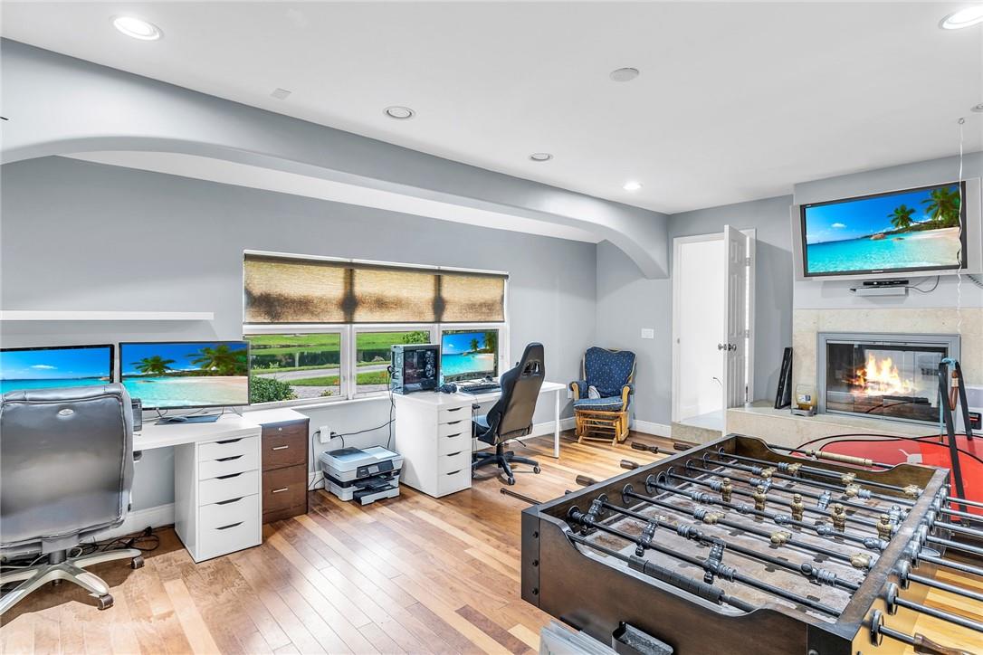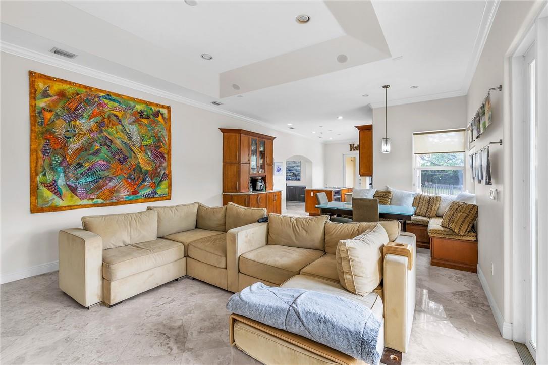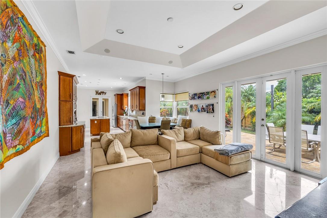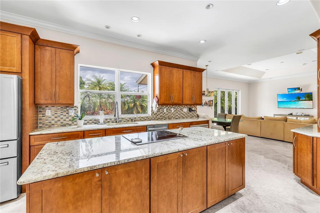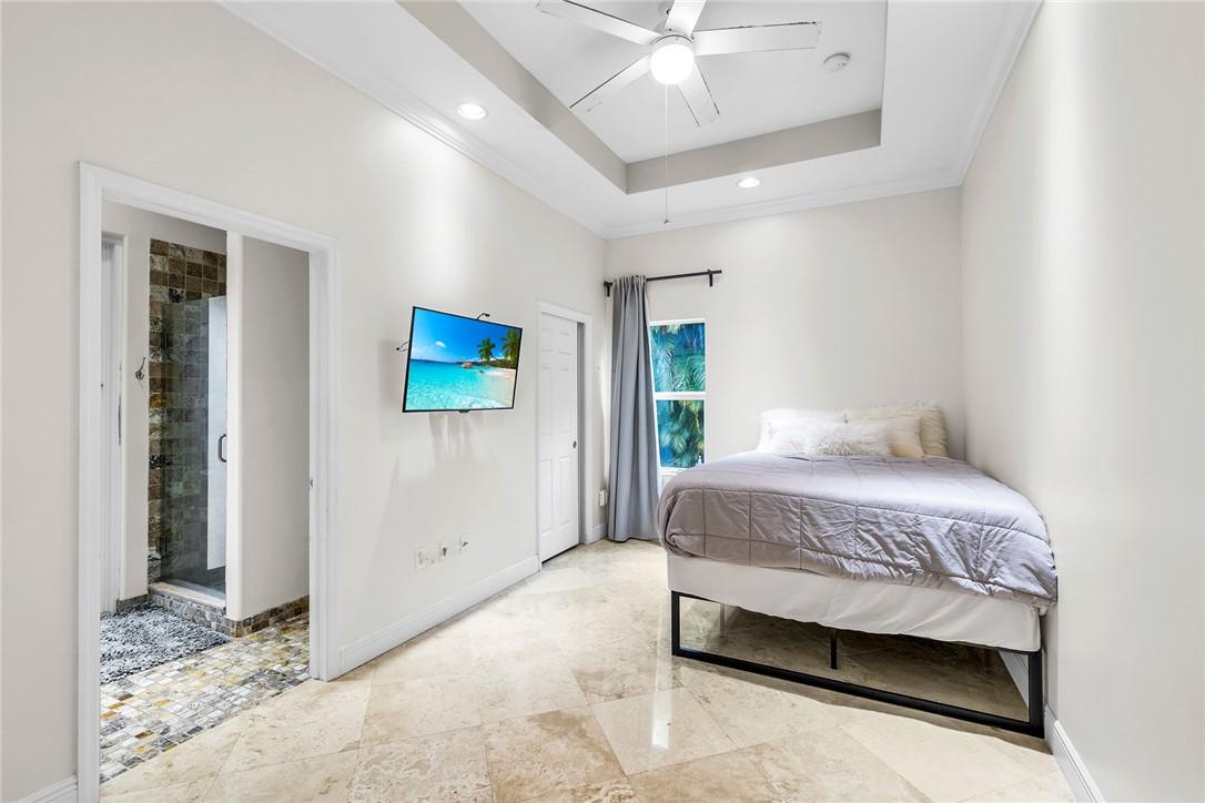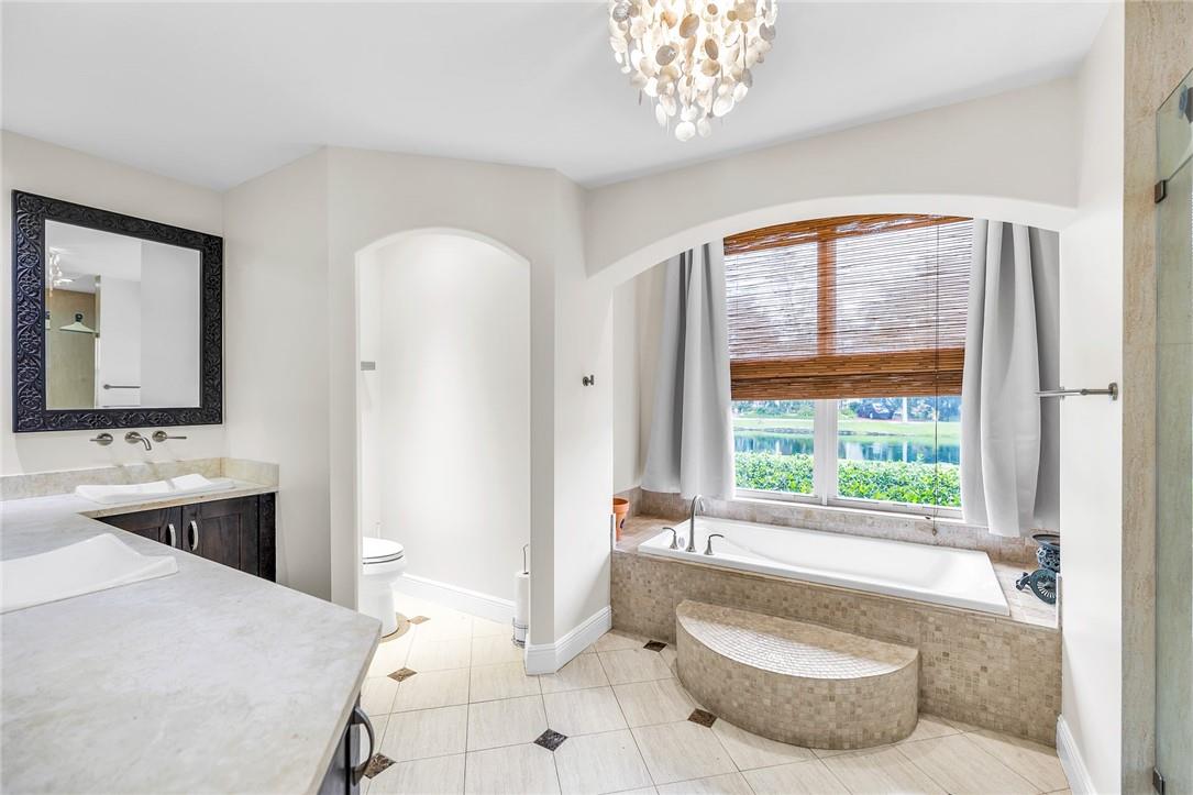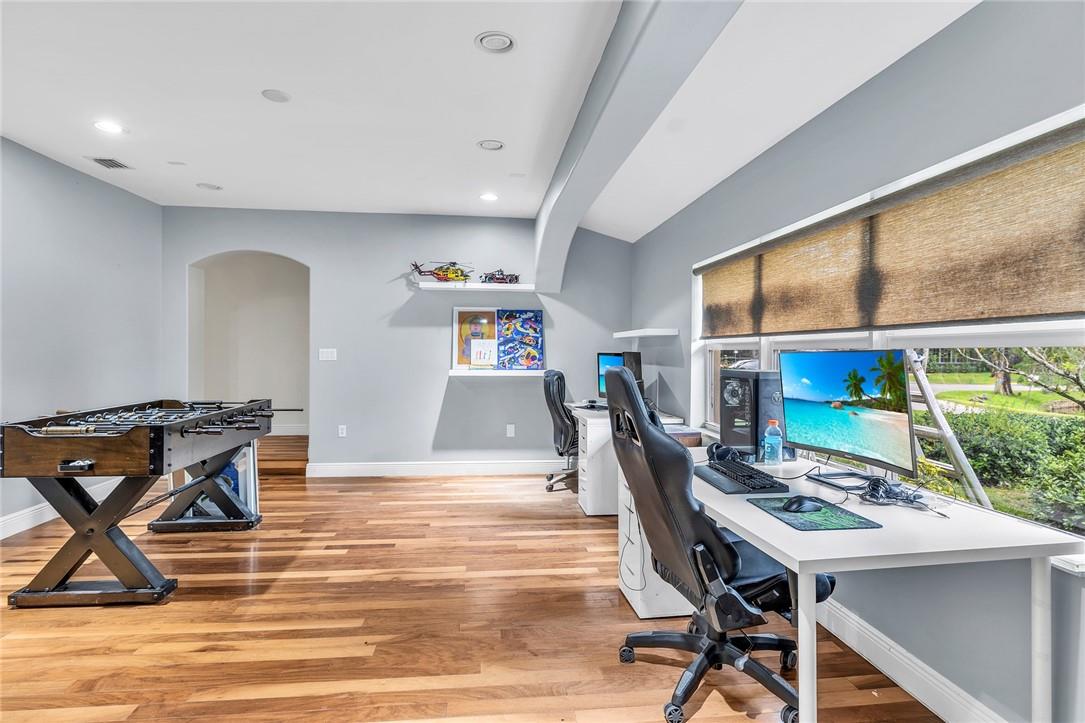 A beautiful 4 bedroom, 3 1/2 bathroom with a pool in Davie, Florida. Nestled on 9/10ths of an acre you will find this home to check off you “most wanted” list. This home was totally remodeled and sellers built/added a extra deep 32 foot deep 3 car detached garage on the property that has a/c. The split floor plan features a child’s playroom dream that has 2 bedrooms & 1 bathroom. Other loves are the double sided fireplace, customer kitchen design, granite kitchen counter tops, stainless steel appliances, polished marble flooring throughout the home, impact windows & doors, a July 2023 barrel tile new roof, large pool area that is fenced in, master bedroom suite & 4th bedroom is an e-suite. Large lake in the front of the home, security system & no HOA.