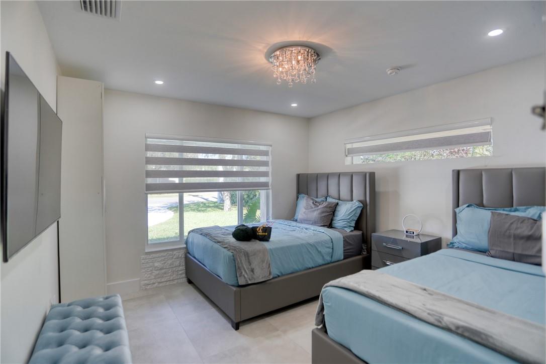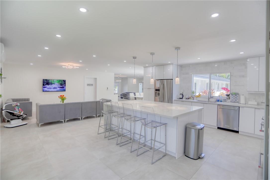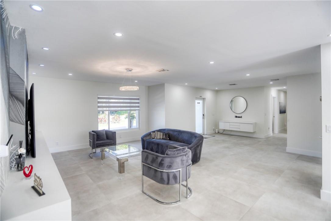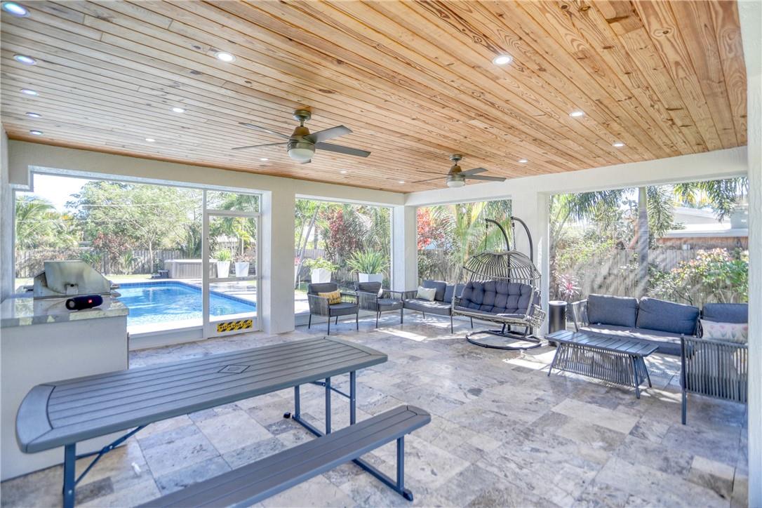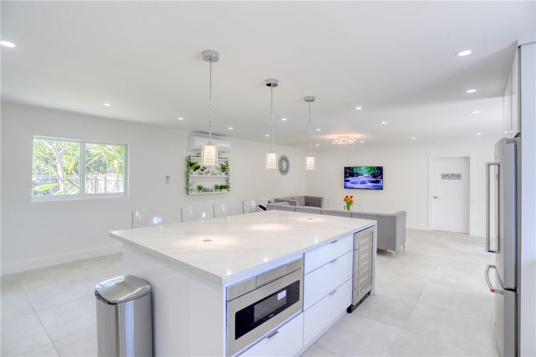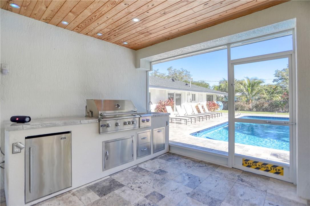 Welcome to the coolest home in Pompano Beach! Stunning resort-style residence, where classic elegance meets modern sophistication, rebuilt & redesigned from top to bottom, offering brand new house living experience. With a stunning large pool, breathtaking landscaping views, a large screened-in patio boasting an outdoor kitchen & dining area, outdoor shower, jacuzzi, children’s playground, waterfall, fire pit, game room, & more. Situated on an expansive doable size property lot spanning over half an acre. Furnished with top-notch appliances and fixtures. Be impressed by the huge spacious dream kitchen, with high-quality cabinets, build in mirowave, wine cooler & much more. Boasts 5 bed and 3 full baths, perfect for large family or guests. Enormous driveway can accommodate 10+ vehicles.