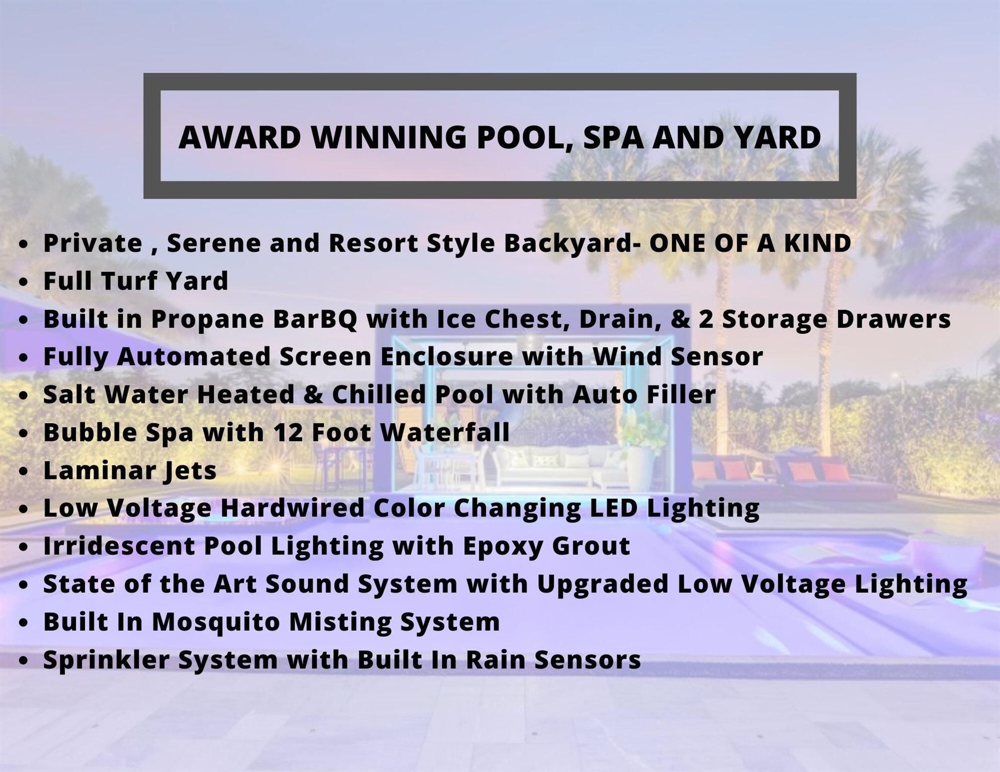 This Luxury One of a Kind Home Must Be Seen to be Believed, No Expenses has been Spared! From the moment you Pull In, You Feel the Modern Cool Contemporary Nature of the 5BR/4BA/3 Car Garage SMART HOME- Complete with Magnificent AWARD WINNING Resort Style Pool and Yard- Every Conceivable Upgrade! Enter and Immediately Note Your Quartz Staircase with Glass Walls and Steel Banisters, Designer Fans, Fixtures, & LED Lighting Throughout. Dining Room Boasts Custom Builtin & Beverage Fridge, Desirable Chefs Custom Kosher Kitchen. Grand Master Suite and Bath, Spacious Bathrooms, and Impact Windows and Doors. PLEASE SEE FULL LIST OF UPGRADES INCLUDE IN END OF THE PICTURES! DO NOT MISS OUT ON THIS RARE OPPORTUNITY- WILL NOT LAST LONG!