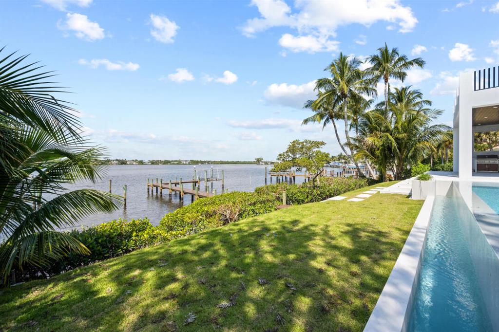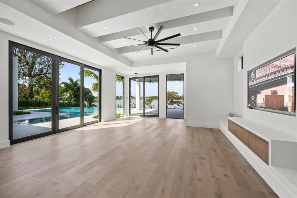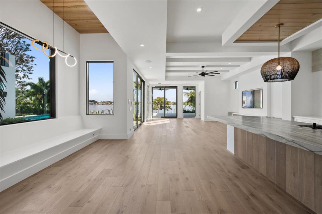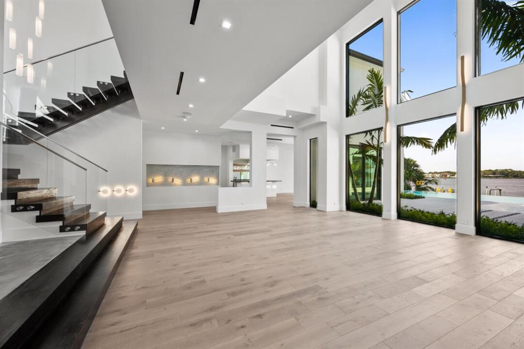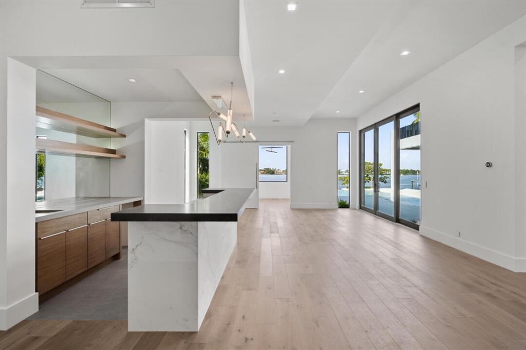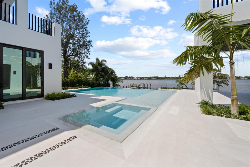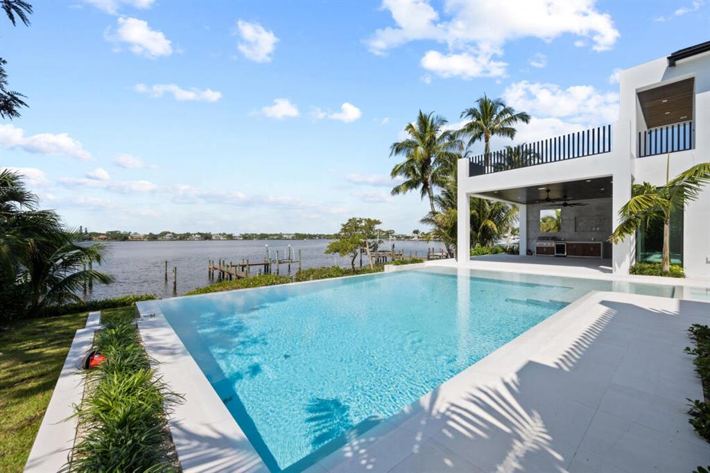 Magnificent new construction home with stunning river views. 0.40 acres, 86 feet on the water with a refurbished dock. It features a covered lanai summer kitchen resort style pool and spa. Poured cement second floor, hurricane impact windows and doors, formal living room, open plan chef’s kitchen spacious family room, state of the art kitchen large prep island, quartzite countertops top-of-the-line Wolf and Subzero stainless-steel appliances. Cellar space, game room, bar, theater room, tv/stereo, installed WIFI-Loxon, large gym-playroom, 2 laundry rooms, engineered wood porcelain tile flooring, luxurious carpeting, designer fixtures, elevator ready, 4 Bedrooms with private baths, stunning Master Bedroom suite with luxurious master bath, two walk-in closets, morning bar and balcony.