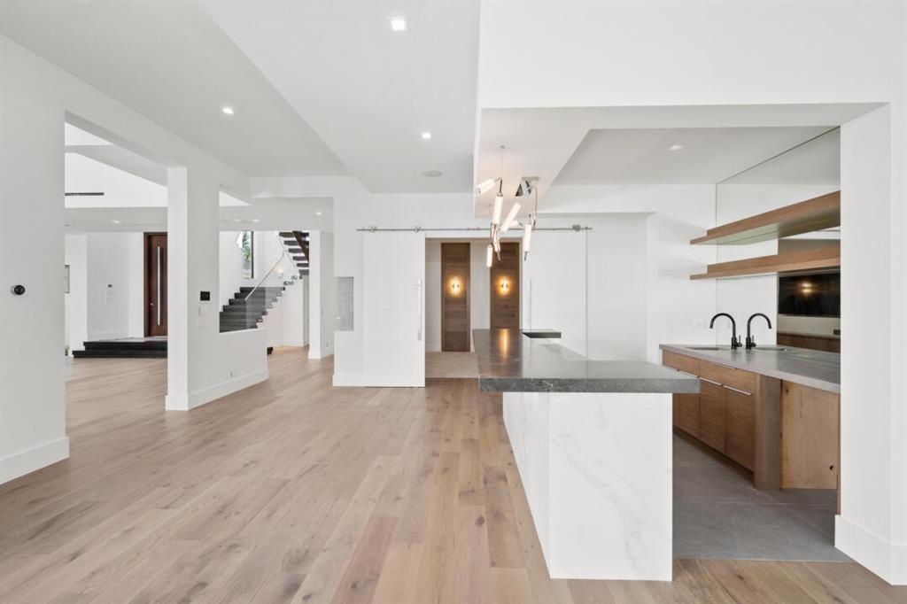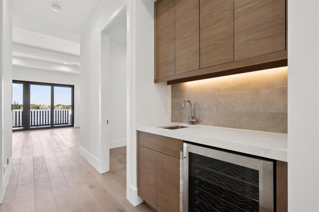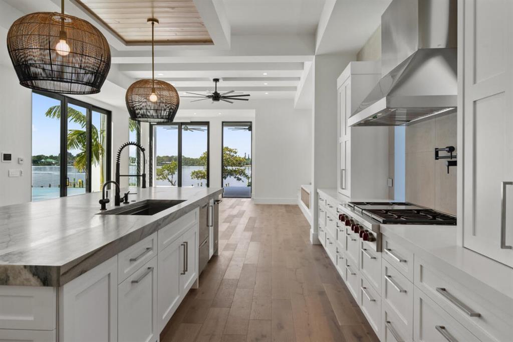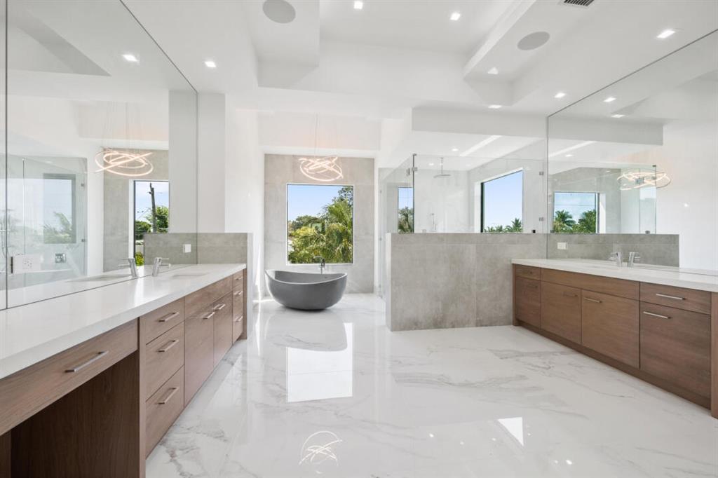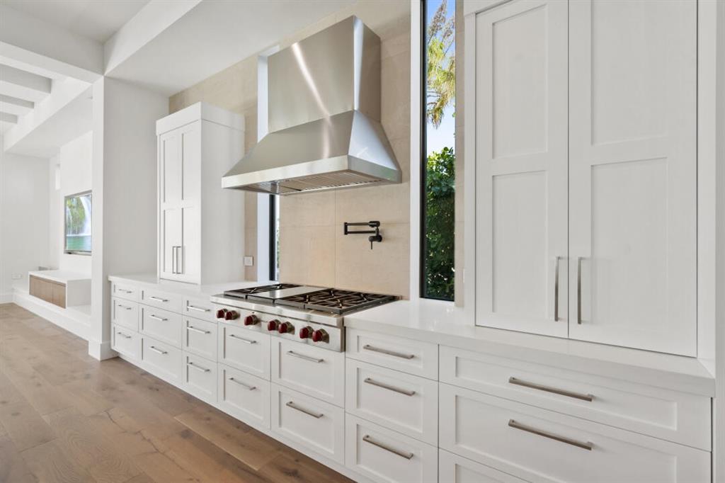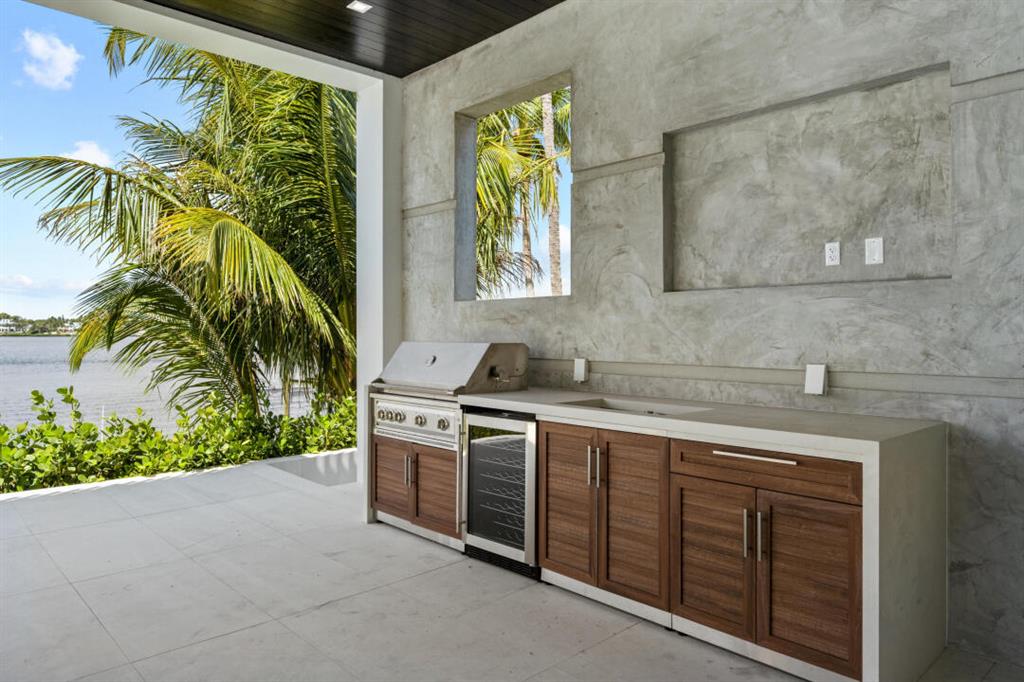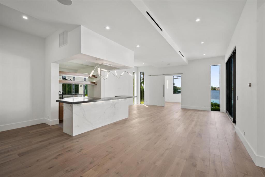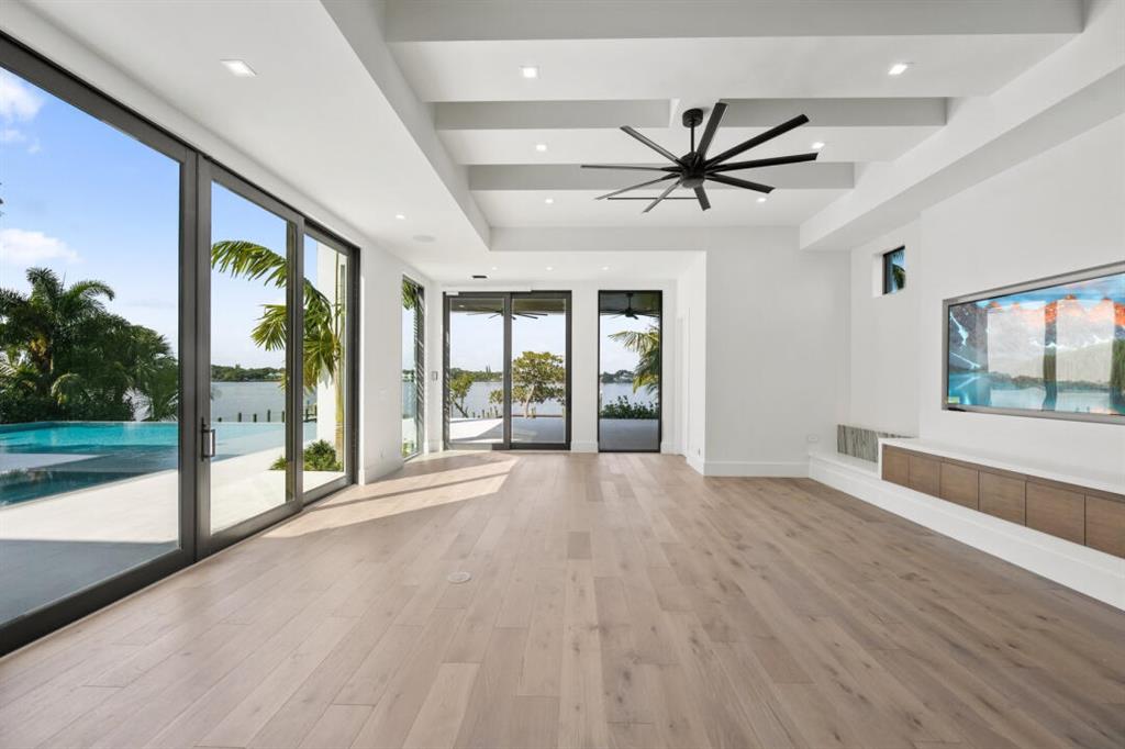 Magnificent new construction home with stunning river views. 0.40 acres, 86 feet on the water with a refurbished dock. It features a covered lanai summer kitchen resort style pool and spa. Poured cement second floor, hurricane impact windows and doors, formal living room, open plan chef’s kitchen spacious family room, state of the art kitchen large prep island, quartzite countertops top-of-the-line Wolf and Subzero stainless-steel appliances. Cellar space, game room, bar, theater room, tv/stereo, installed WIFI-Loxon, large gym-playroom, 2 laundry rooms, engineered wood porcelain tile flooring, luxurious carpeting, designer fixtures, elevator ready, 4 Bedrooms with private baths, stunning Master Bedroom suite with luxurious master bath, two walk-in closets, morning bar and balcony.