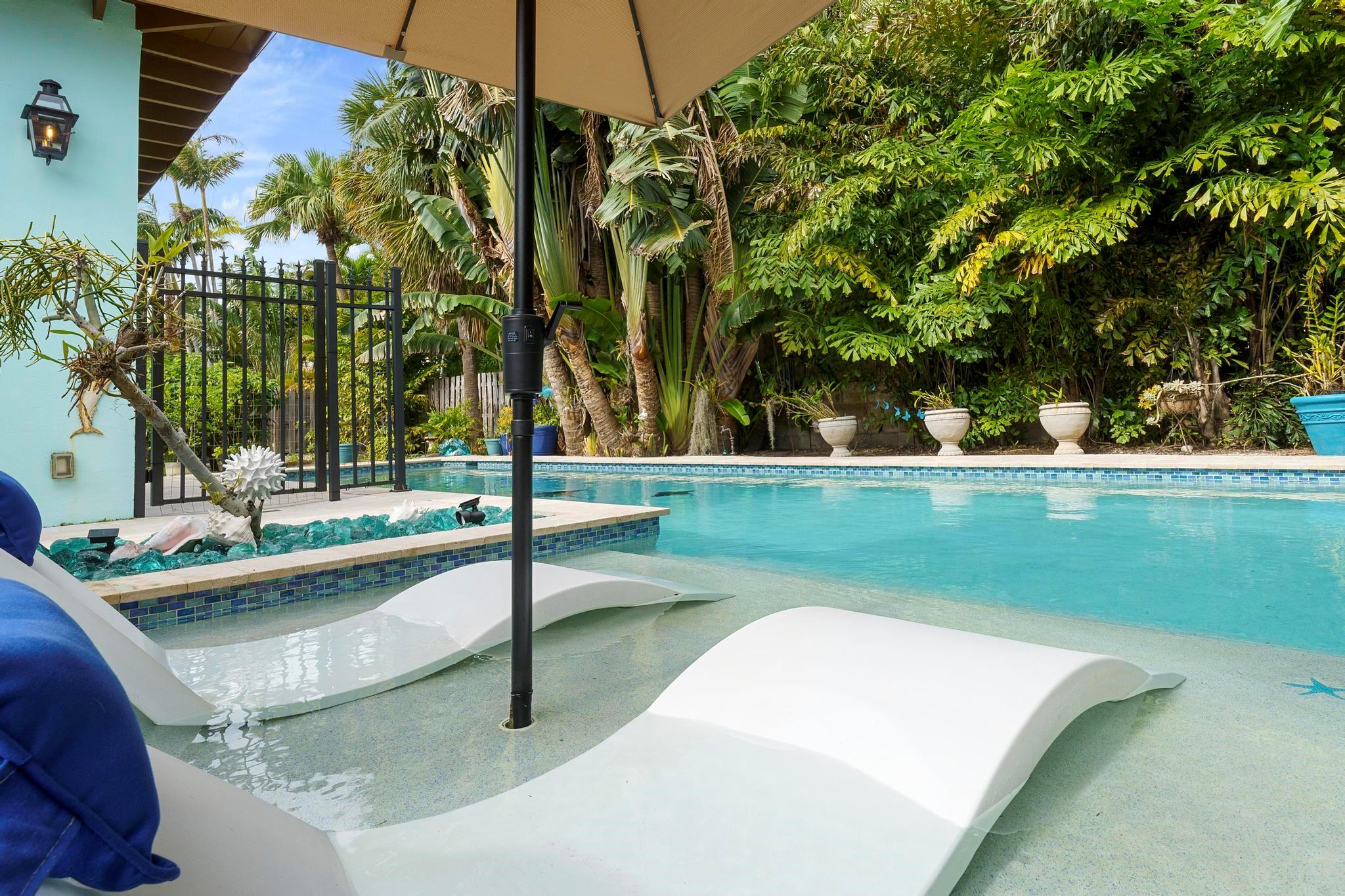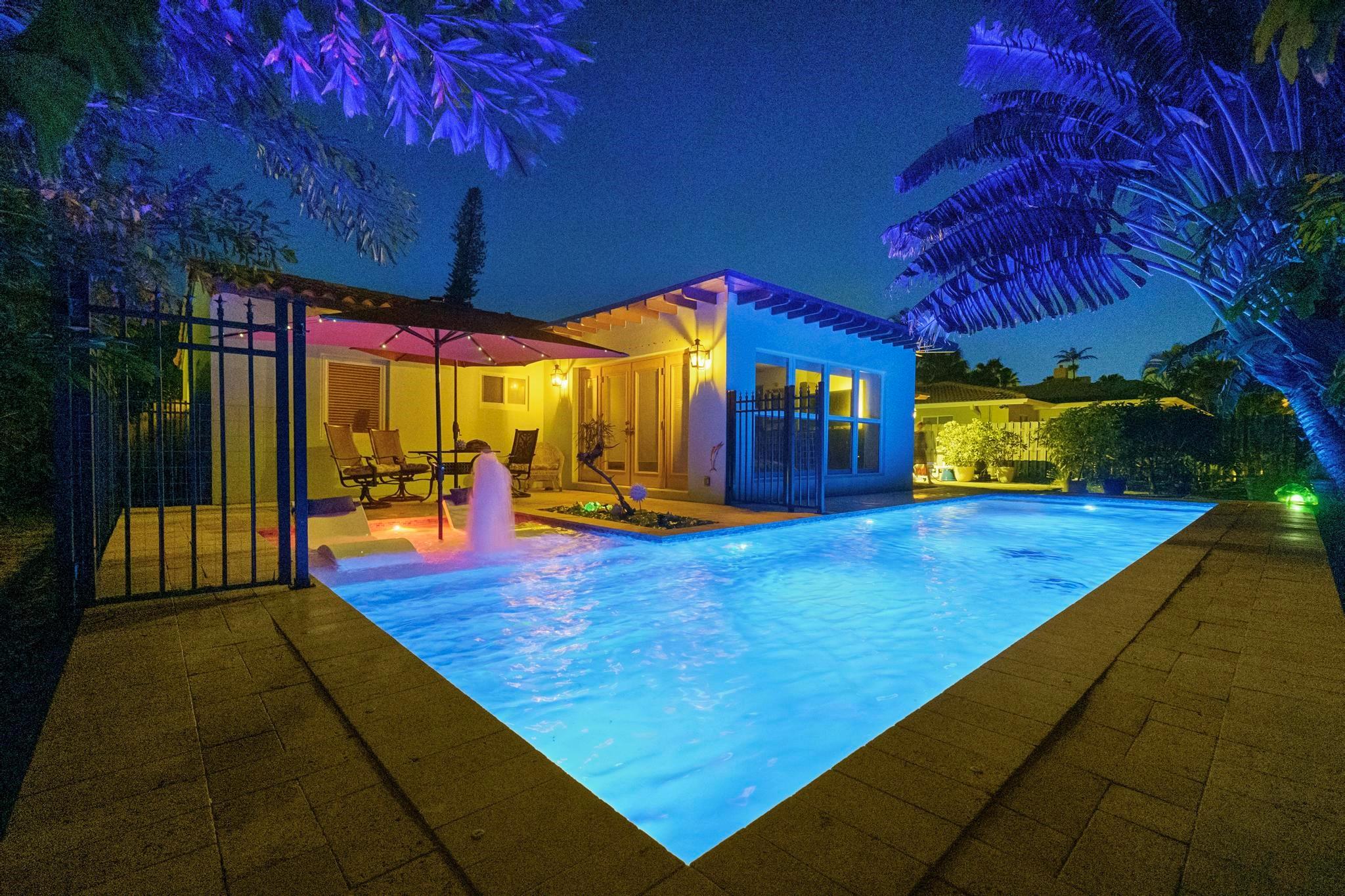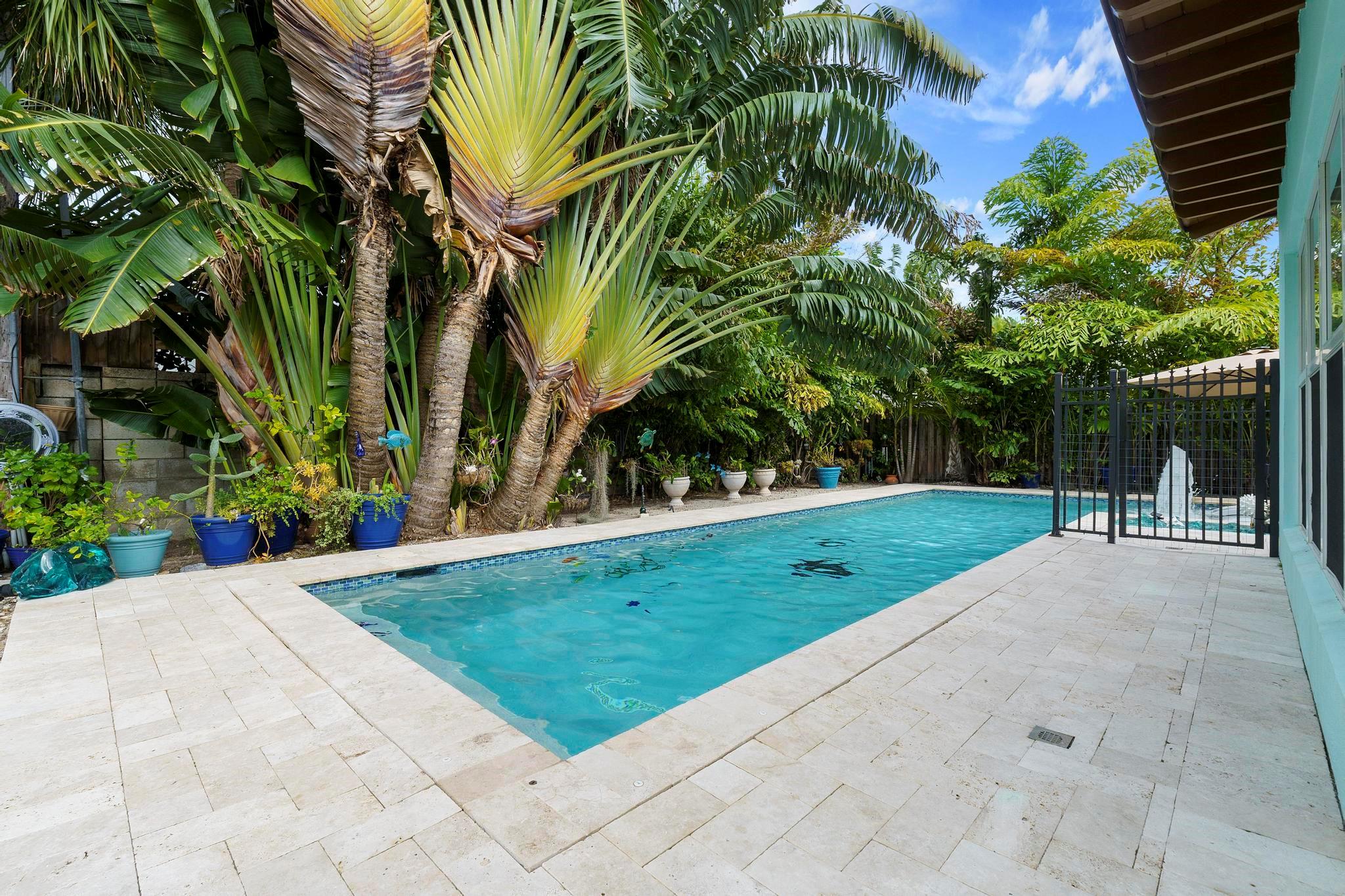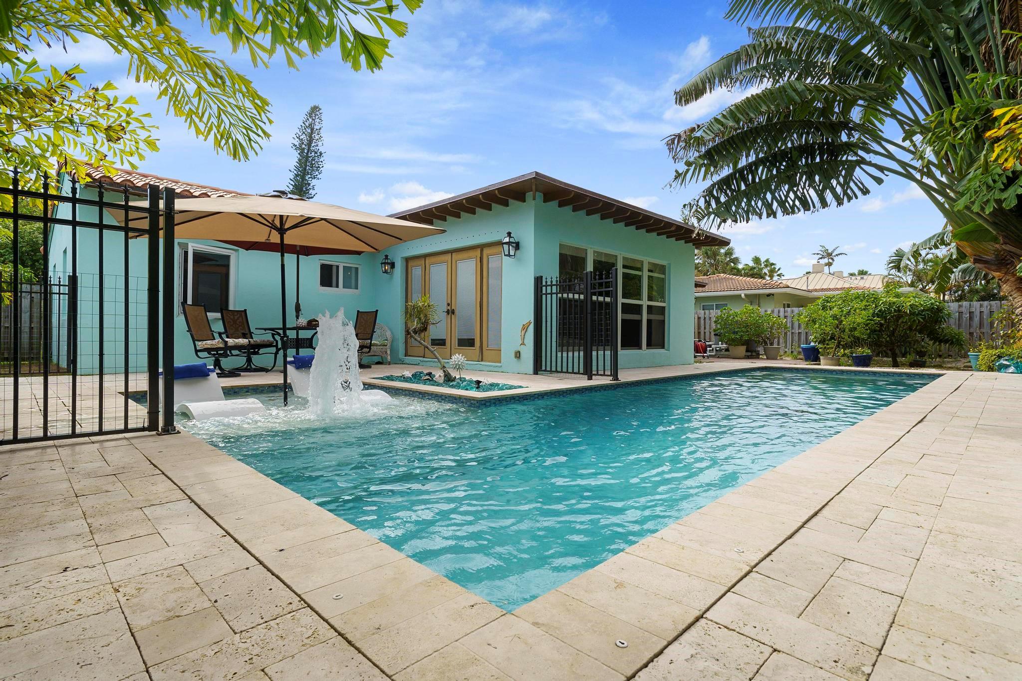 Beach House 2 doors from the ocean in upscale Hillsboro Shores with 2 beach access gates. Close enough to listen to waves at night. L-Shaped Salt Filtration Pool with Sun Shelf, hand painted tiles: Sting-Rays, fish, turtles, starfish, etc., fountain. Buried electric, no overhead wires! 3 bed/2 bath 1,591 sf includes separate 1/1 Suite. Impact Windows, 1-Car Garage, Paver driveway. Glass mosaic fireplace, A/C (2018), New Flat Roof. Barrel Tile 2005. Fenced Private Oasis yards to Sand. Surrounded by Multi-Million dollar homes. Close to Beach yet Private. No beach-walkers peek in your windows or dip in your pool. Perfect Getaway and fantastic real estate investment, relatively affordable considering proximity to the beach. Potential Ocean View. Non-mandatory HOA. Owner-Agent.