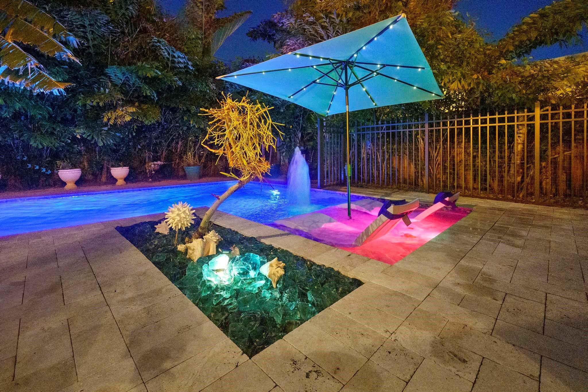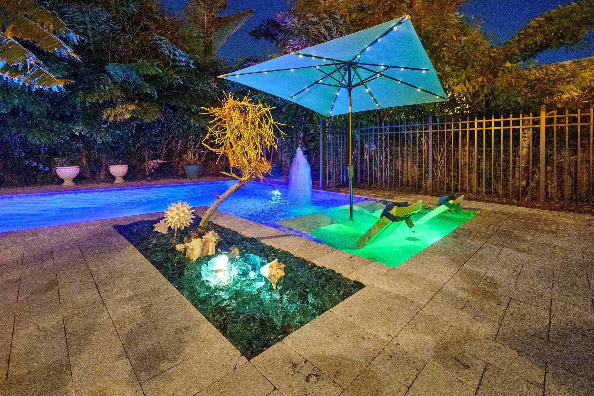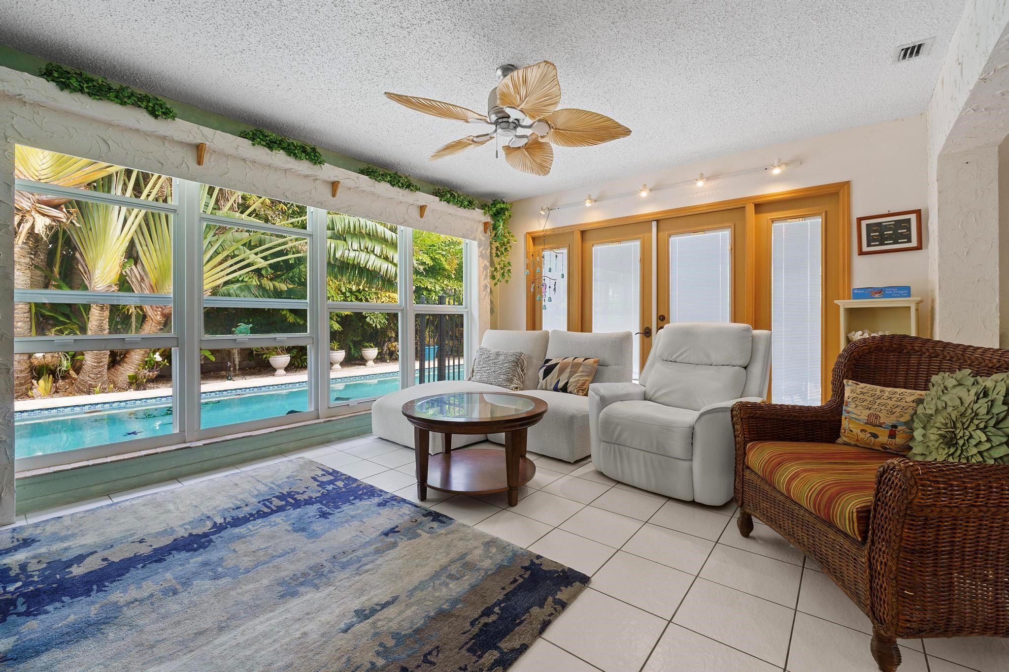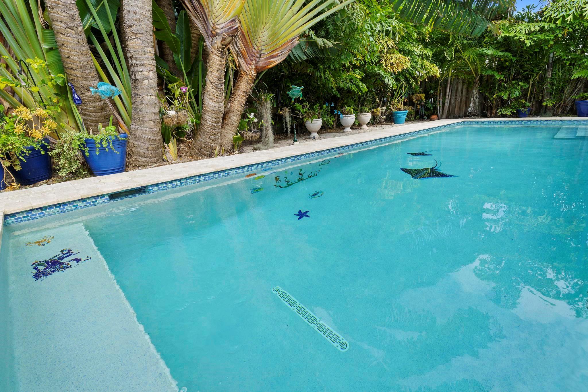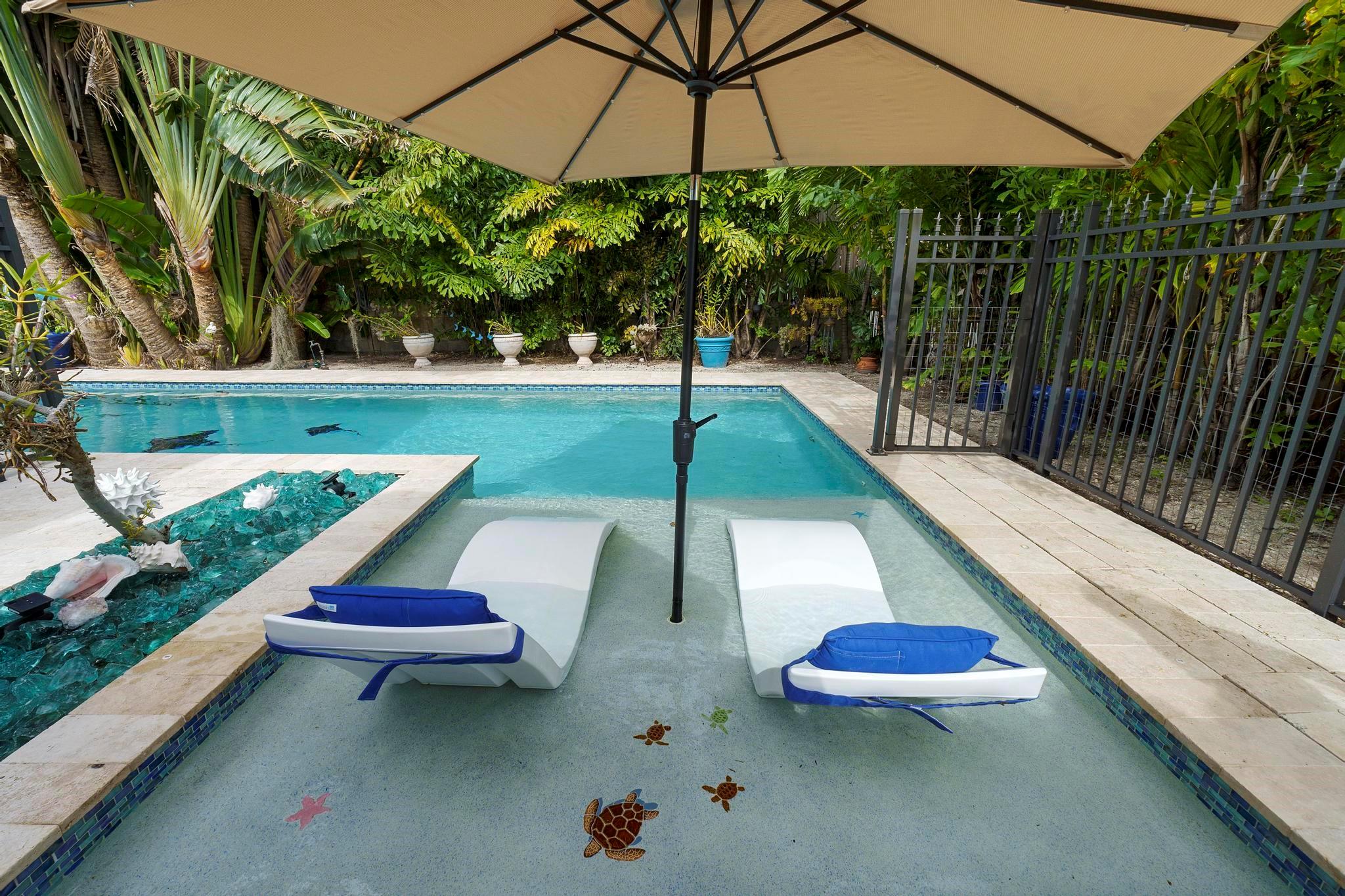 Beach House 2 doors from the ocean in upscale Hillsboro Shores with 2 beach access gates. Close enough to listen to waves at night. L-Shaped Salt Filtration Pool with Sun Shelf, hand painted tiles: Sting-Rays, fish, turtles, starfish, etc., fountain. Buried electric, no overhead wires! 3 bed/2 bath 1,591 sf includes separate 1/1 Suite. Impact Windows, 1-Car Garage, Paver driveway. Glass mosaic fireplace, A/C (2018), New Flat Roof. Barrel Tile 2005. Fenced Private Oasis yards to Sand. Surrounded by Multi-Million dollar homes. Close to Beach yet Private. No beach-walkers peek in your windows or dip in your pool. Perfect Getaway and fantastic real estate investment, relatively affordable considering proximity to the beach. Potential Ocean View. Non-mandatory HOA. Owner-Agent.