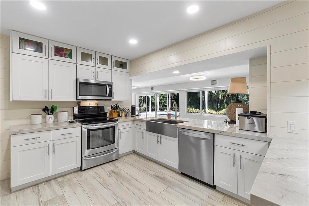 Completely updated, this home boasts the highest end materials, chef’s kitchen, stainless appliances, farm sink, soft close drawers & cabinets top of the line porcelain tiles throughout, rare quartzite countertops, impact window and doors in the main part of the home, led lighting, tankless water heater, salt pool, new bathrooms, primary featuring custom cabinetry, dual sinks, top of the line bidet his/hers closets and an incredible shower with duel shower heads as well as a rain shower. Too many upgrades to mention. Move in Ready!!!