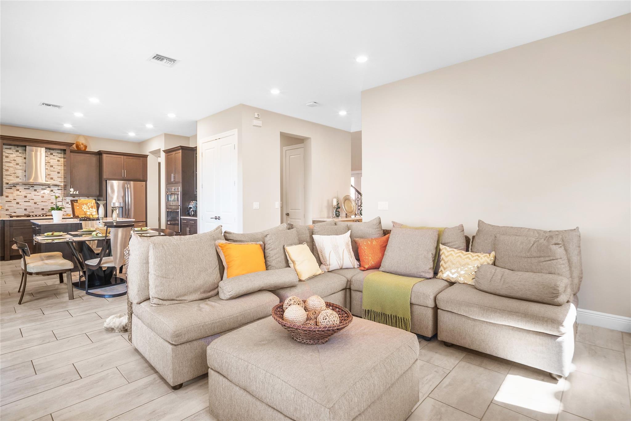 Family Room & Custom Kitchen w/Stainless Steel Appliances, Quartz Countertops, Gas Stove & Soft-Close Doors.