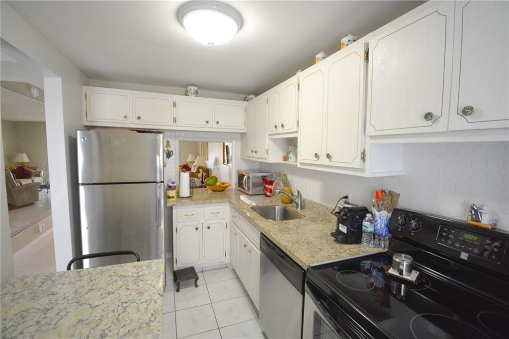 A meticulously clean, third-floor haven at Garden-Aire Village. This beautifully renovated 2-bedroom, 2-bathroom condominium boasts granite countertops, pristine porcelain flooring, a newer AC, and impact-resistant glass front doors and windows (slider has shutters, ensuring a perfect blend of style and functionality. Step into this inviting residence and be greeted by two spacious bedrooms with ample closet space, providing an ideal sanctuary for rest and relaxation. The large balcony presents a fantastic view of the well-maintained pool and lush garden area, where you can unwind and enjoy the serene surroundings. Whether looking for the perfect place to spend your winter vacation or a year-round paradise residence, this exceptional condominium will surely exceed your expectations.