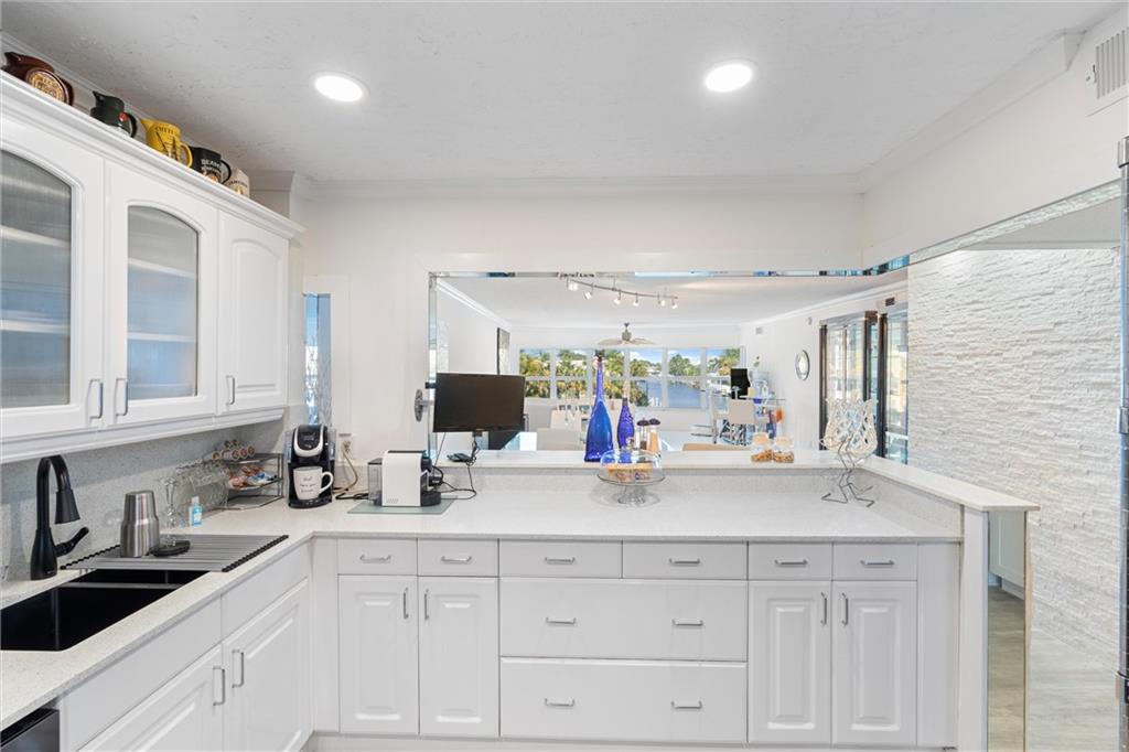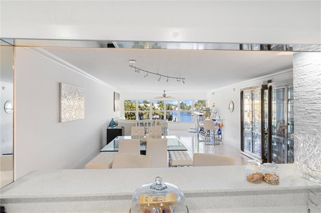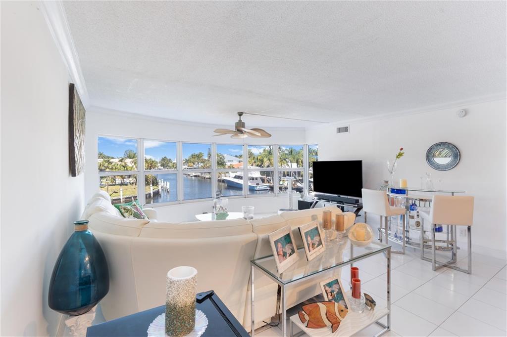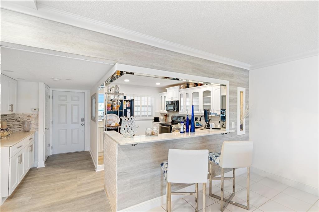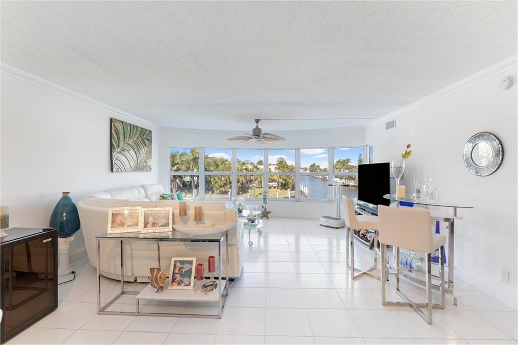 Immaculate & beautifully updated 2 bed, 2 bath waterfront condo in highly desirable Royal Lauderdale Landings w/ tranquil water views from living room & primary bedroom! This upgraded unit features open kitchen w/ tons of cabinet space, new 2022 quartz counters & backsplash and refrigerator! Eat-in bar area w/ stacked stone and tile accents plus additional bar area! Split BR plan w/ spacious primary bedroom w/ walk-in closet & updated bath w/ newer vanity & large shower! 2nd BR w/ walk-in closet & en suite updated bath w/ walk-in shower! New 2022 tinted windows in LR & primary BR! Laminate wood-look flooring in both BR’s, hallway & kitchen & white tile in living area! Impact glass thru/out! Crown molding! Stacked stone accent wall! Must see…this home is not to be missed!