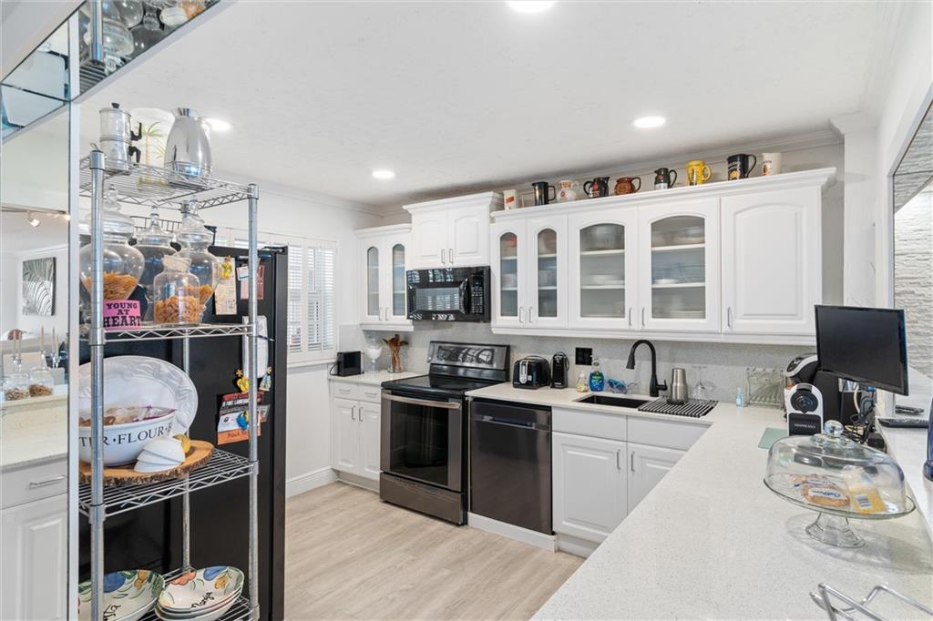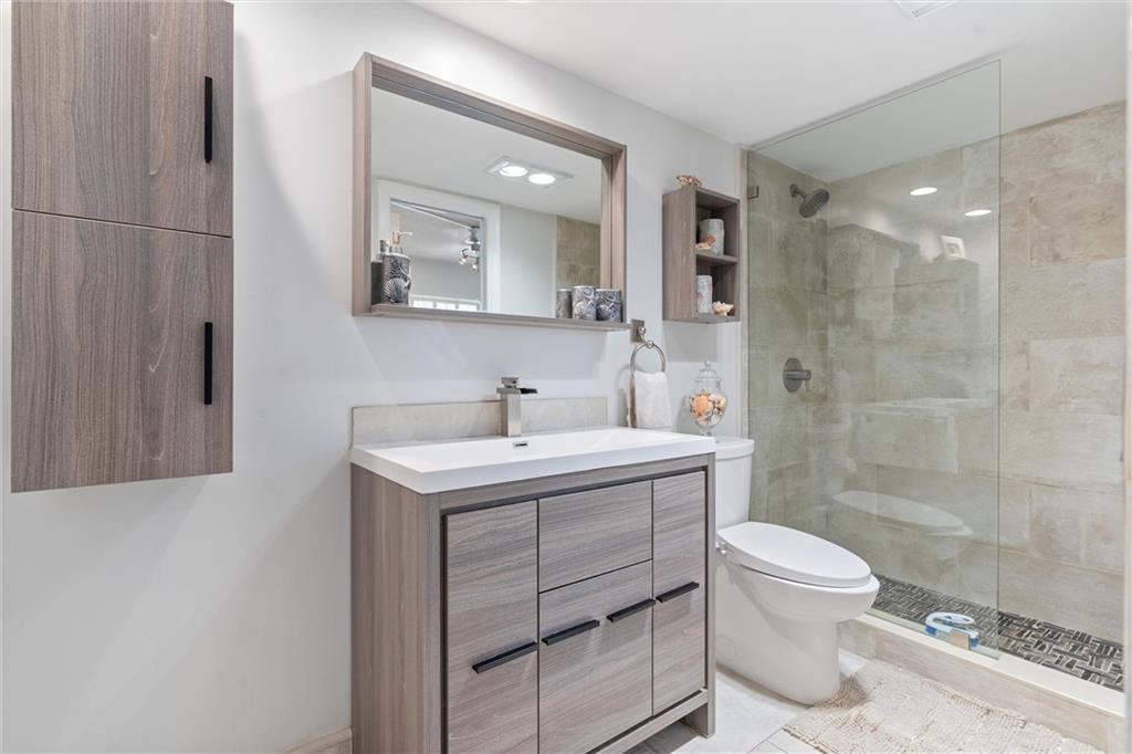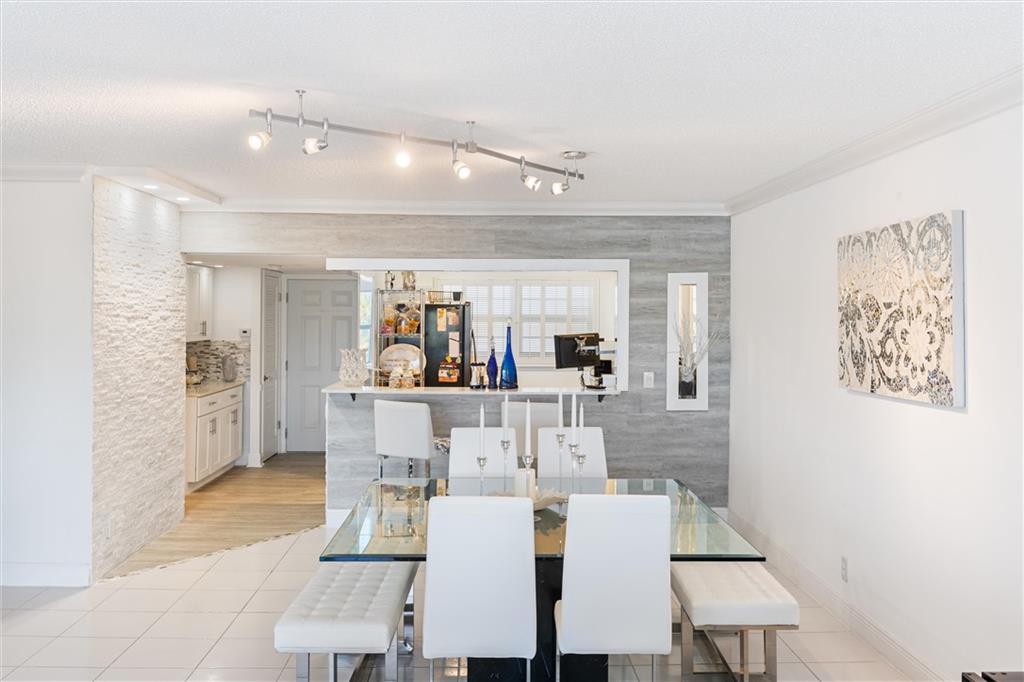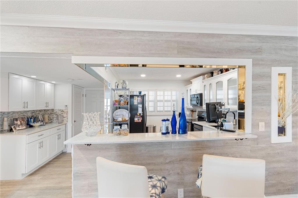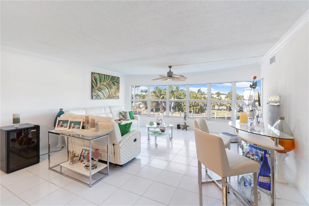 Immaculate & beautifully updated 2 bed, 2 bath waterfront condo in highly desirable Royal Lauderdale Landings w/ tranquil water views from living room & primary bedroom! This upgraded unit features open kitchen w/ tons of cabinet space, new 2022 quartz counters & backsplash and refrigerator! Eat-in bar area w/ stacked stone and tile accents plus additional bar area! Split BR plan w/ spacious primary bedroom w/ walk-in closet & updated bath w/ newer vanity & large shower! 2nd BR w/ walk-in closet & en suite updated bath w/ walk-in shower! New 2022 tinted windows in LR & primary BR! Laminate wood-look flooring in both BR’s, hallway & kitchen & white tile in living area! Impact glass thru/out! Crown molding! Stacked stone accent wall! Must see…this home is not to be missed!