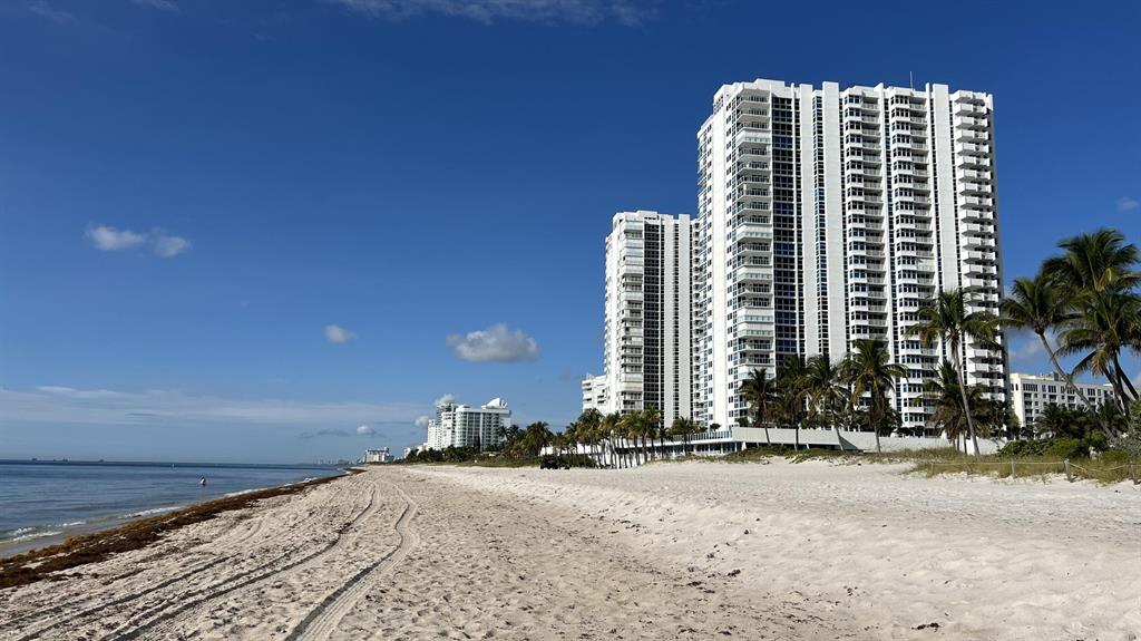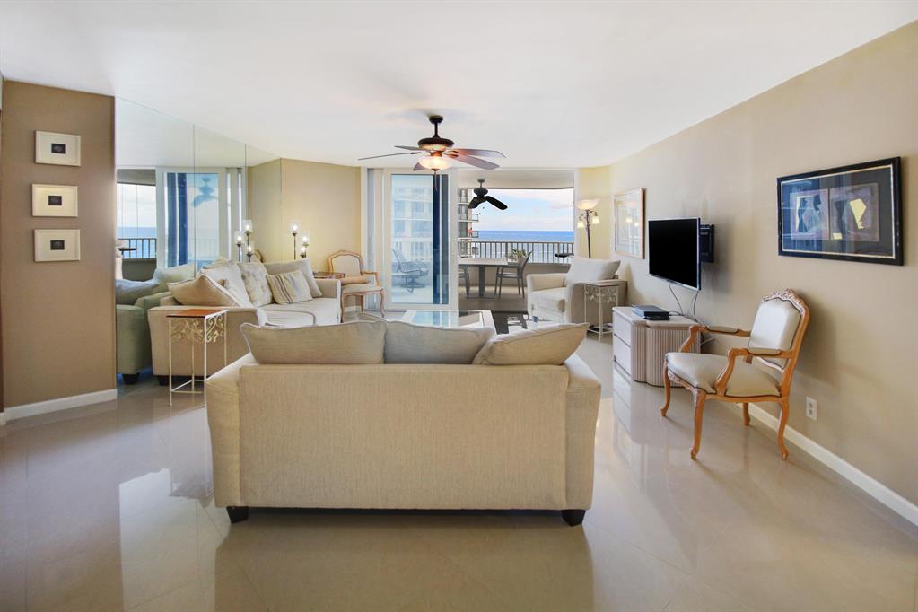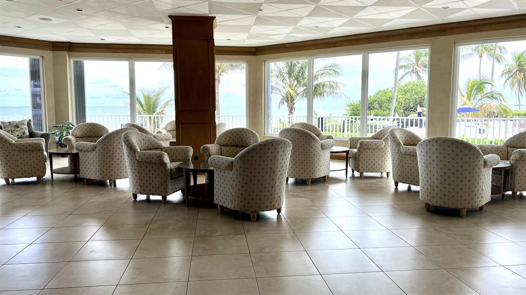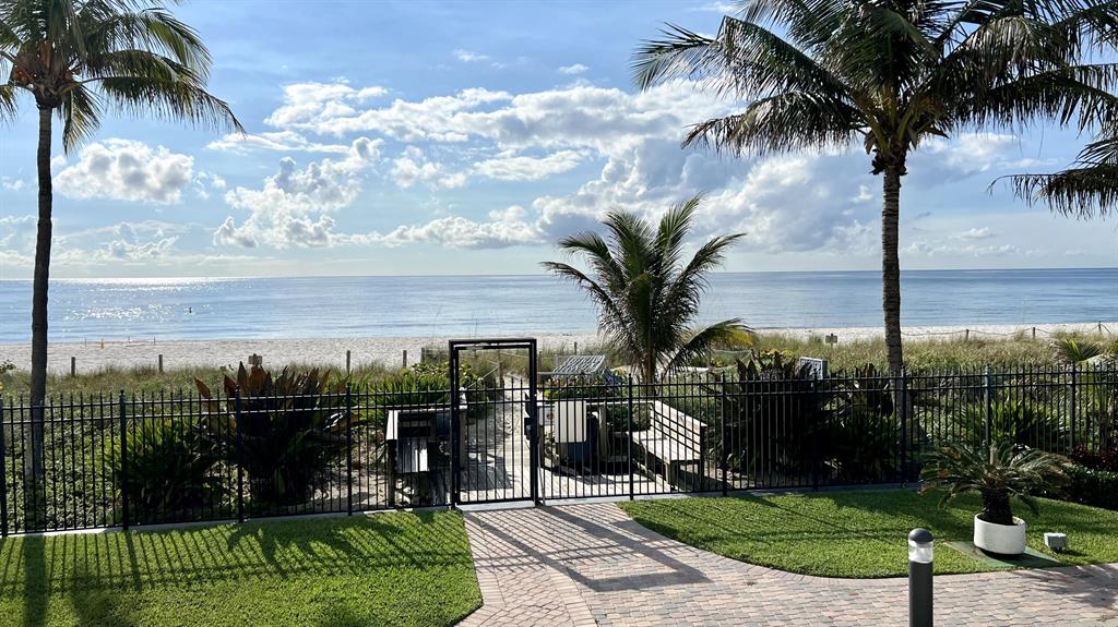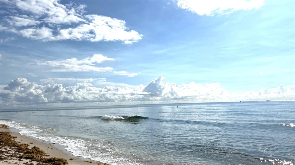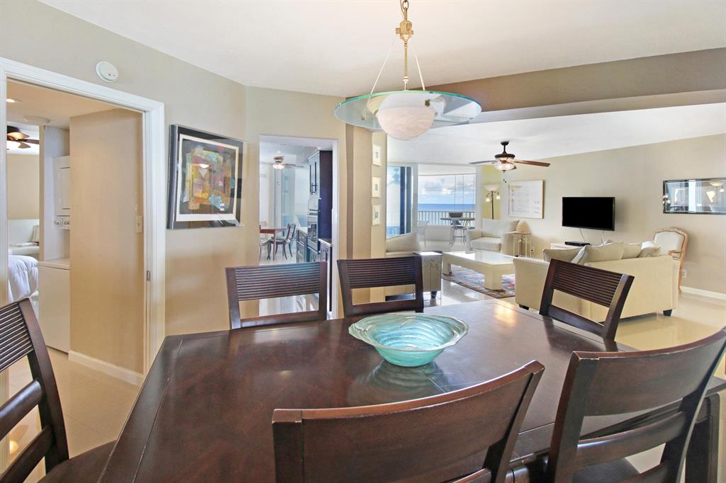 Ocean views from this unit!! Walk into your beautiful condo on the beach with ocean breezes from the large balcony accessible from the kitchen, living room and the master bedroom. The unit has two bedrooms with two large walk in closets and two bathrooms complete with impact windows as well as hurricane shutters. Furniture is negotiable. The washer/dryer is in the unit. Garage parking number 123. Amenities include gym, sauna, 24 hour security, beach, meeting area with kitchen and pool. This is a no pet building.