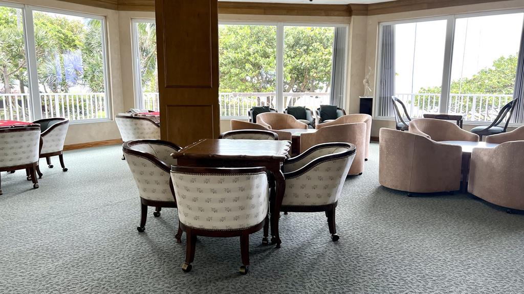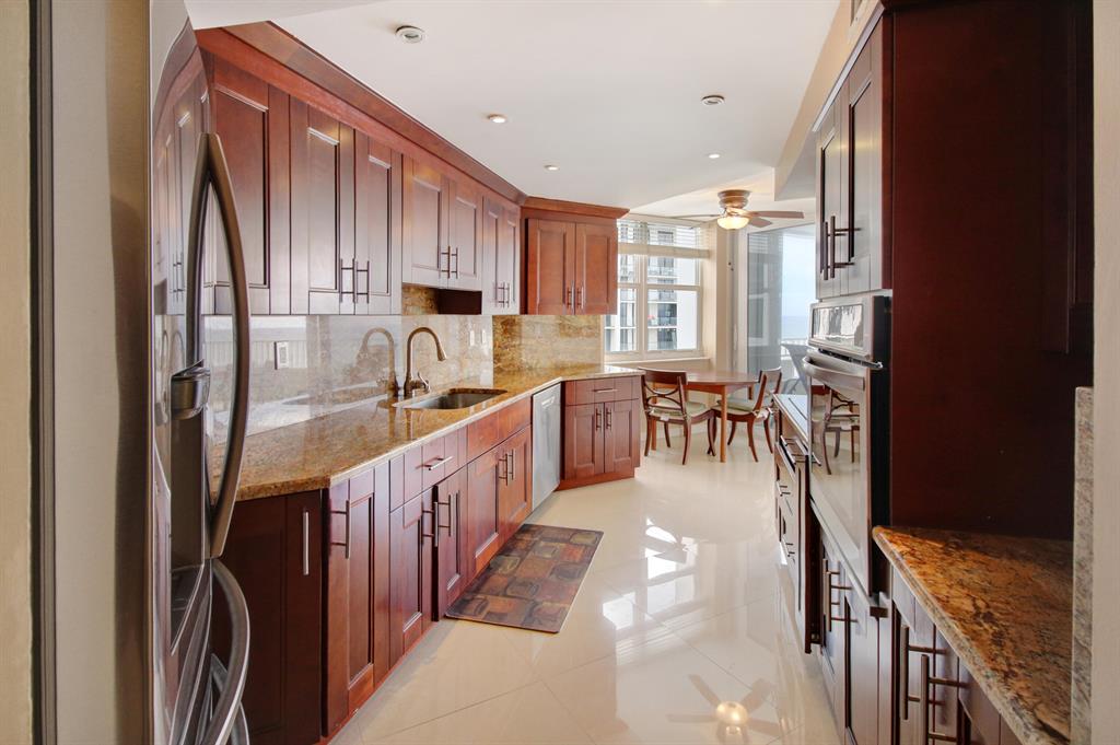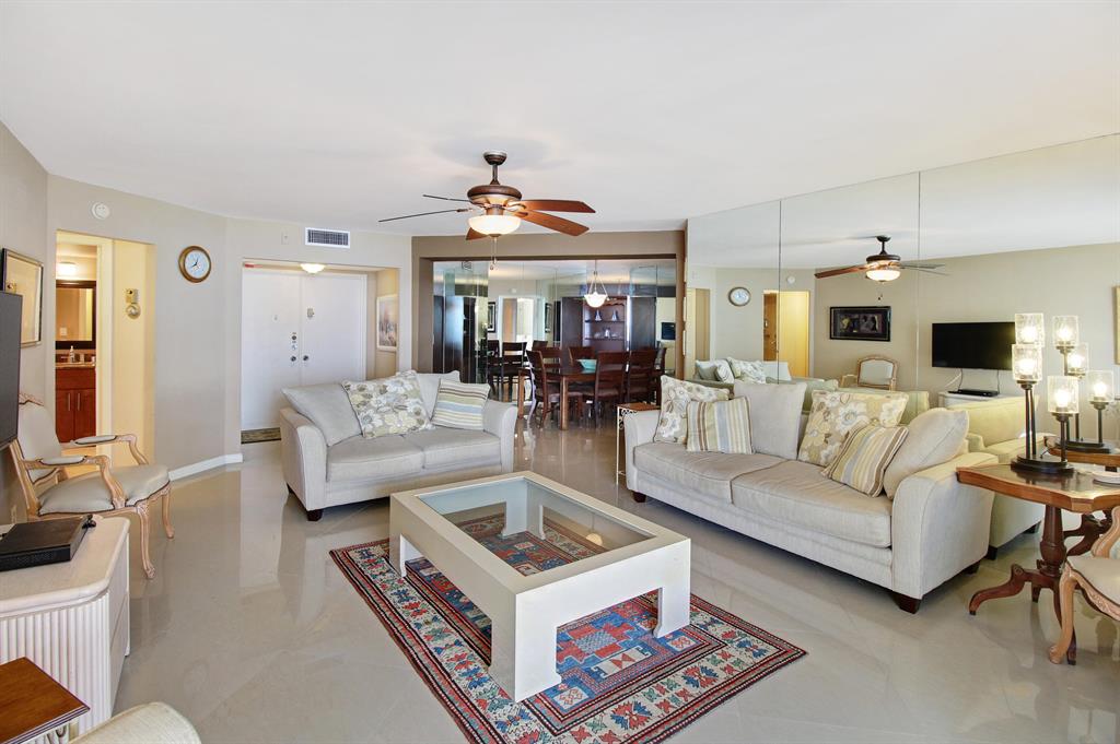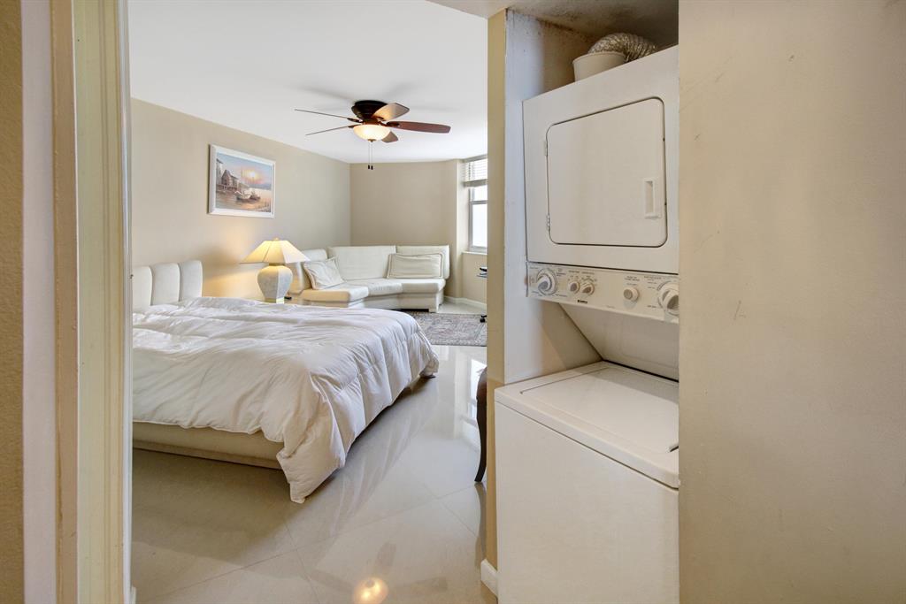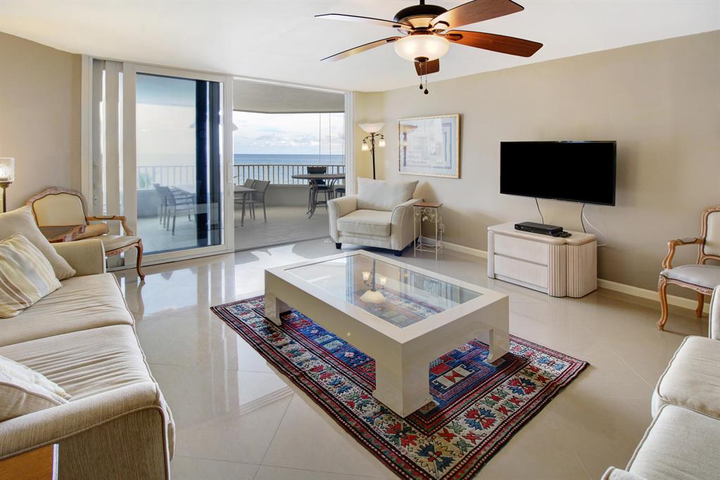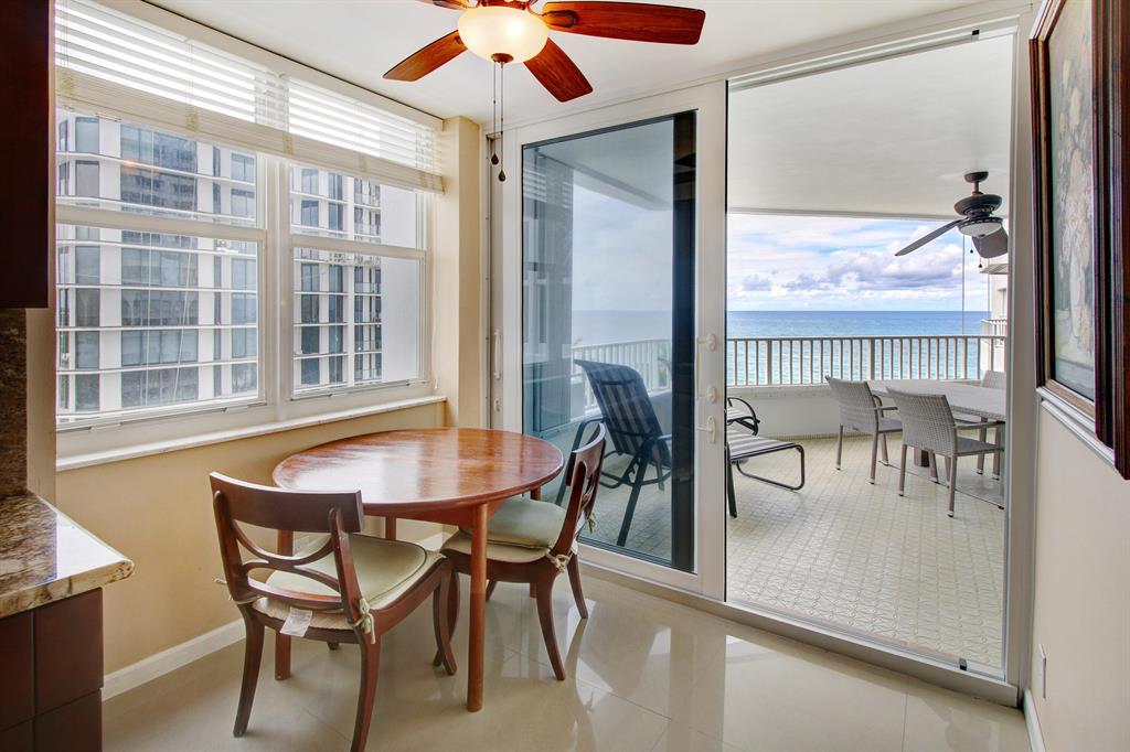 Ocean views from this unit!! Walk into your beautiful condo on the beach with ocean breezes from the large balcony accessible from the kitchen, living room and the master bedroom. The unit has two bedrooms with two large walk in closets and two bathrooms complete with impact windows as well as hurricane shutters. Furniture is negotiable. The washer/dryer is in the unit. Garage parking number 123. Amenities include gym, sauna, 24 hour security, beach, meeting area with kitchen and pool. This is a no pet building.