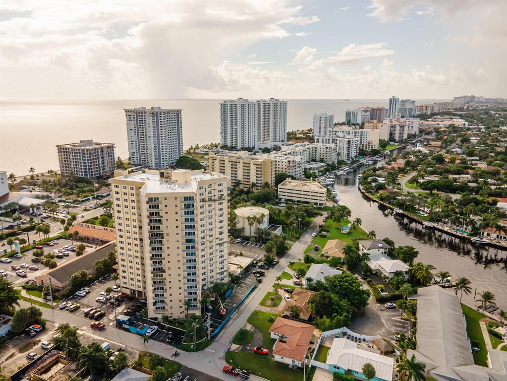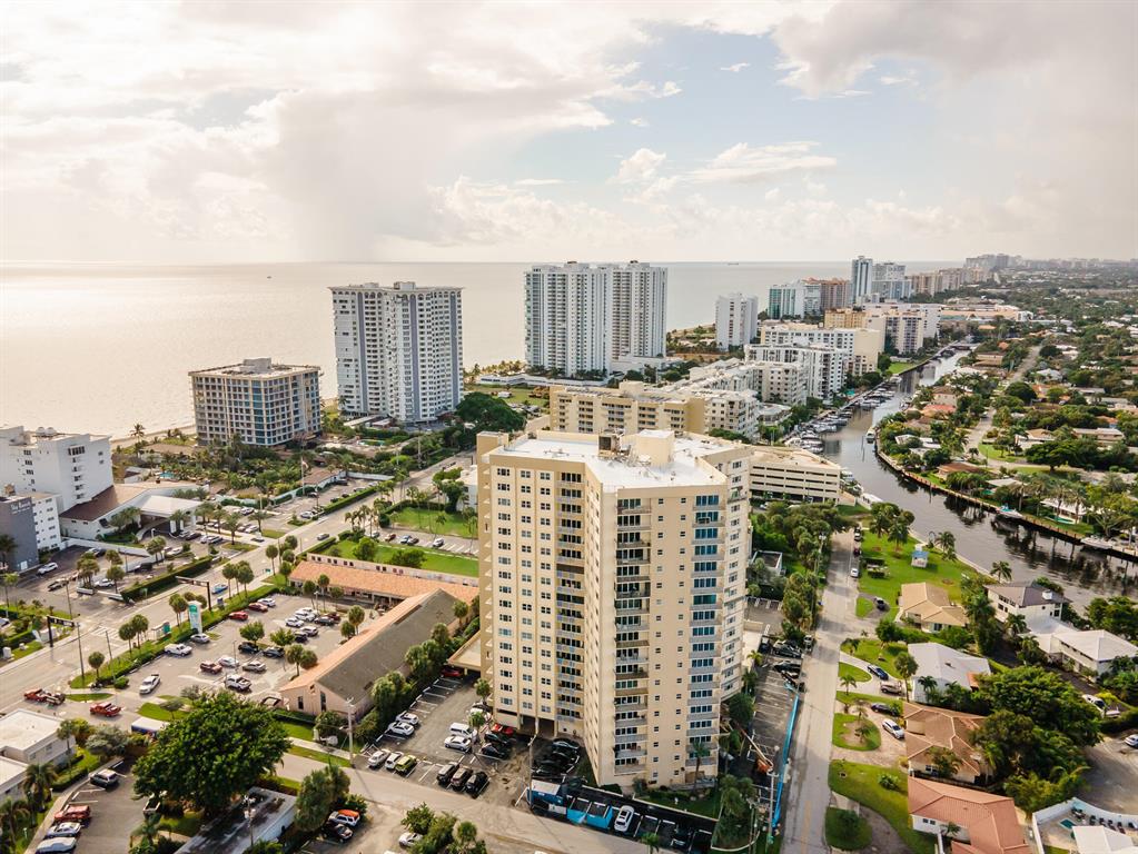 Gorgeous 2Bed/2Bath Condo with Intracoastal and Ocean Views. Recently Renovated. Porcelain Tile throughout, Modern Kitchen Cabinets andStainless Steel Appliances. Impact Windows & Sliding Glass Doors. Onsite Gym and Management Office, Recreation Room, Heated Pool.Amazing location justminutes from the Intracoastal Waterway Taxi,New Pier,Lighthouse Point and Lauderdale by the Sea. Building passed 40 year inspection and is finishing up themandatory reconstruction of the balconies.