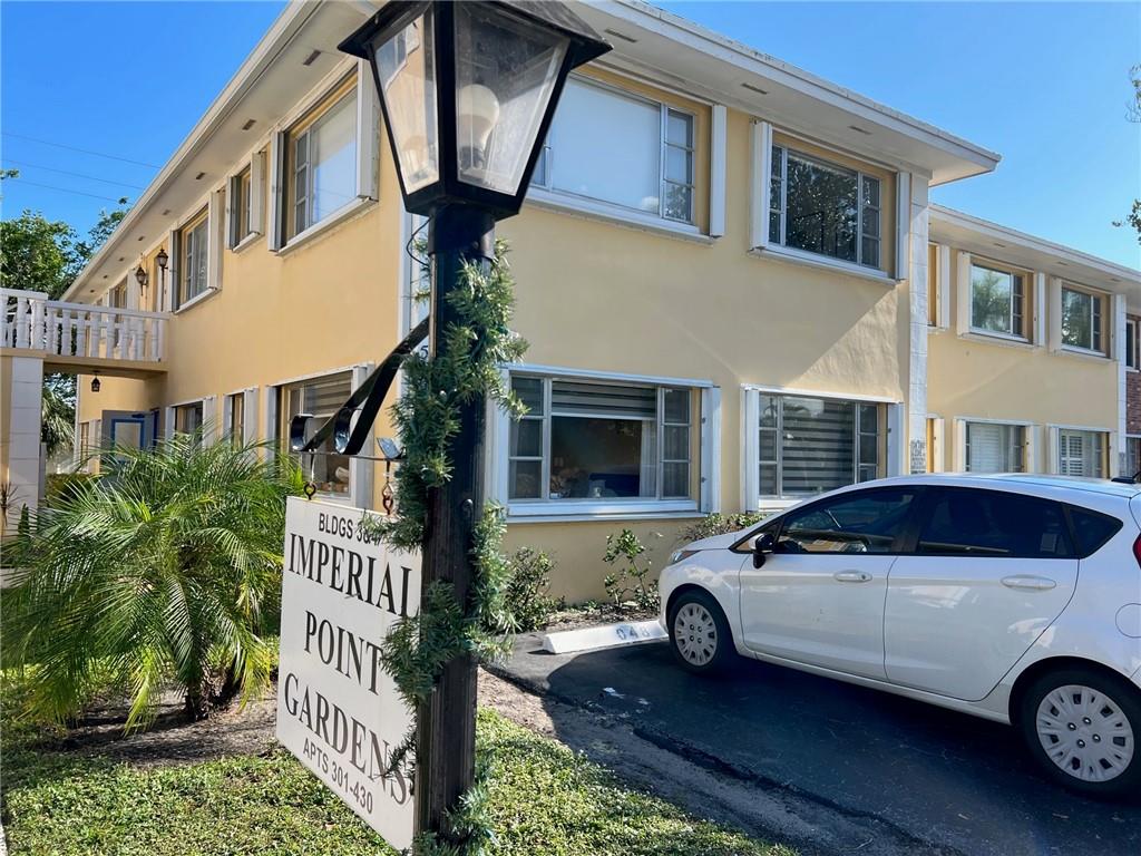 Partially updated 2 bedroom 2 bathroom first floor condo in sought after Imperial Point neighborhood. Kitchen has upgraded appliances including dishwasher and microwave. Extra full length closet at the entrance of condo. Spacious bedrooms, guest bedroom with walk-in shower and master bathroom offers a tub and shower combination. Unit has accordian hurricane storm shutters. A/C system was replaced 2 years ago. Maintenance includes cable TV, water and trash. Extra storage located in the building. Laundry is close to the unit and operated with a card, not coins. Surrounded by beautiful single family homes and right off Federal Highway, this condo is close to everything including the beach. Complex has a pool.