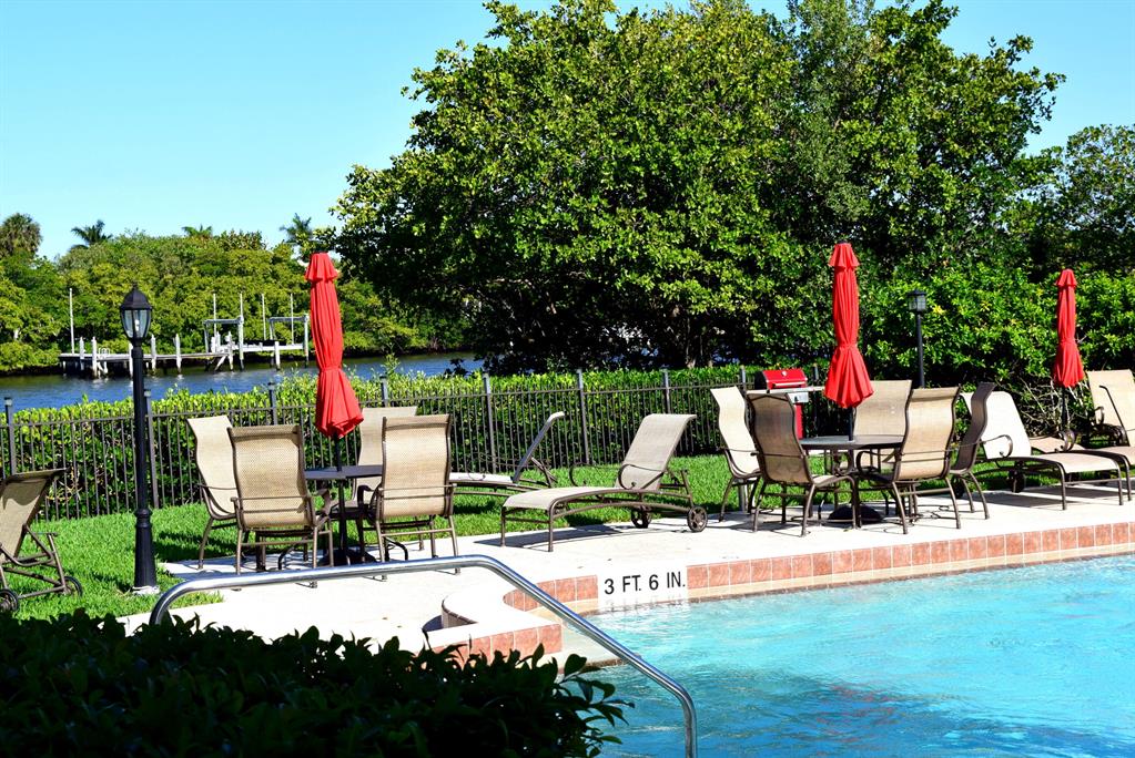 This is an amazing 1st floor 2-bedroom x 2-bath condo on the Intracoastal Waterway at a terrific price! The unit has impact windows, and is close to the front desk for those that want a more secure feeling and enjoy more lighting. It’s also in the very front of the building and close proximity to the parking lot. The view of the fountain and lush gardens from the back lanai is amazing along with the relaxing sound of the fountain. There is an amazing community pool on the Intracoastal with beautiful views. Deeded beach access is located across the street so you literally walk to your private beach. You are close to shopping and the Palm Beach Airport is only 20 minutes away. One of the most popular restaurants in all of Palm Beach County is within walking distance, Dune Deck.