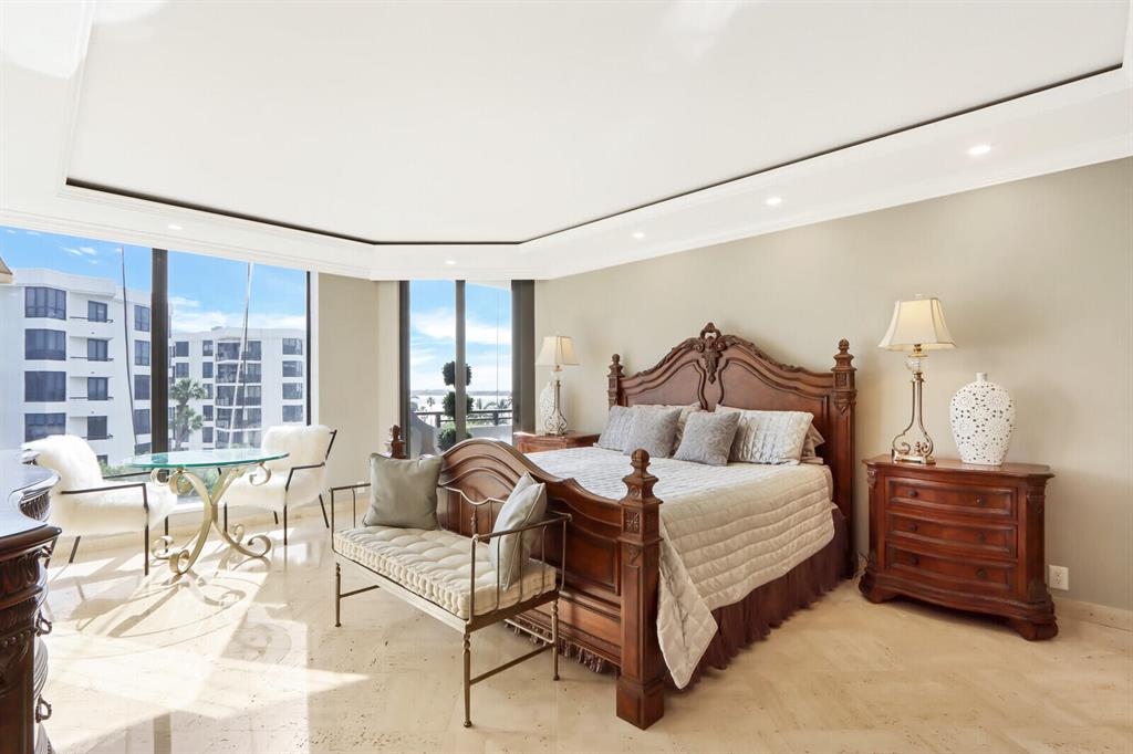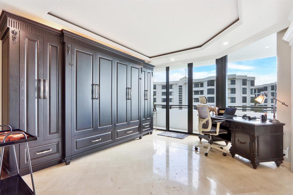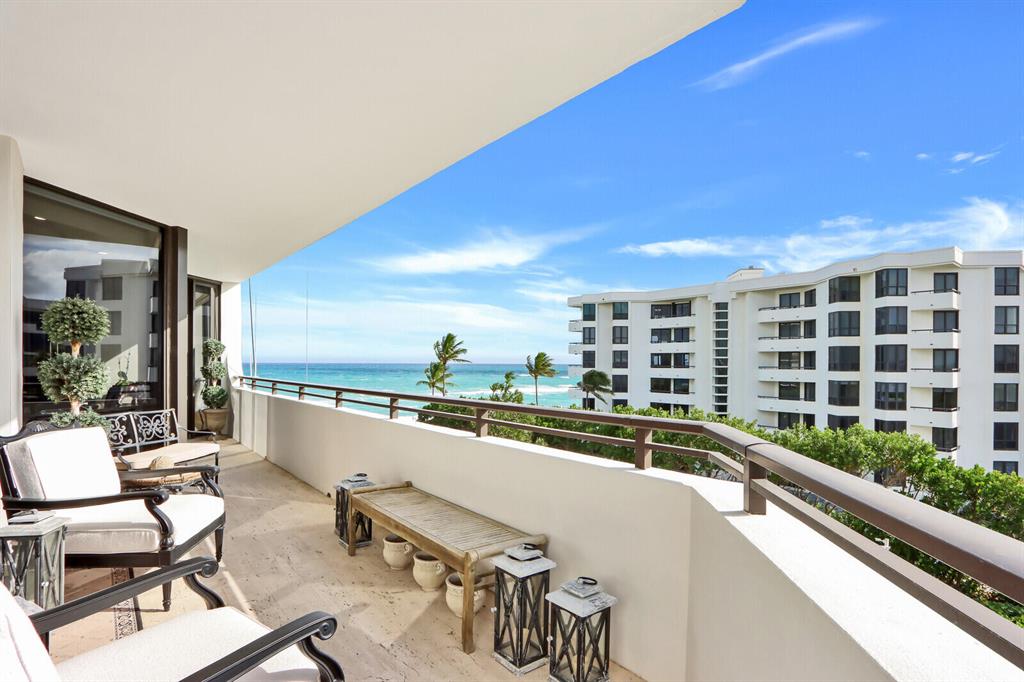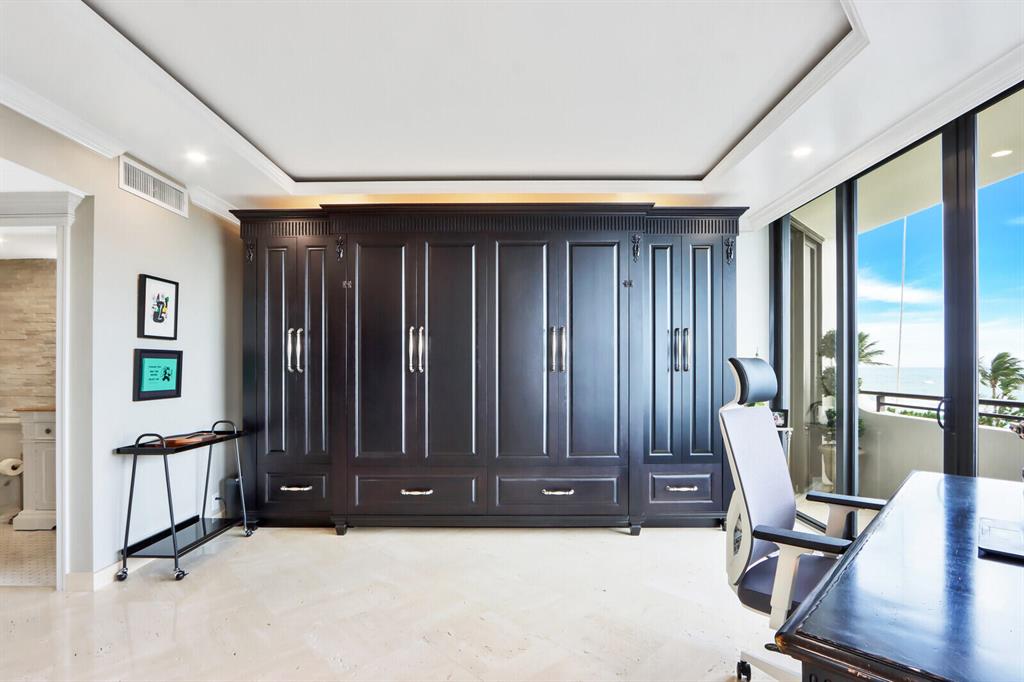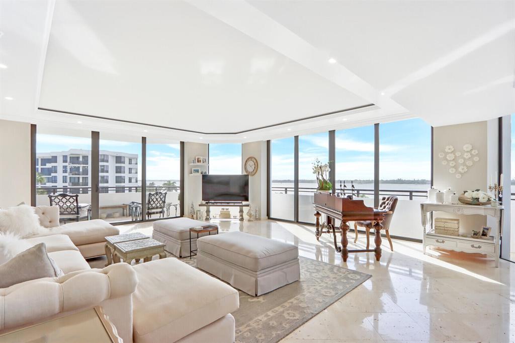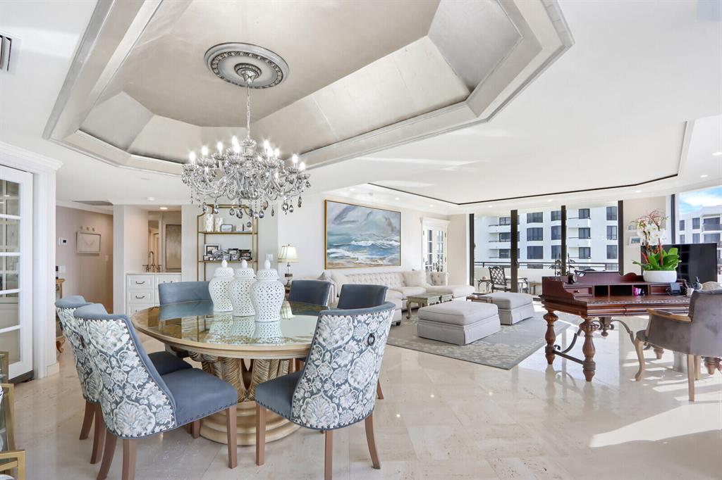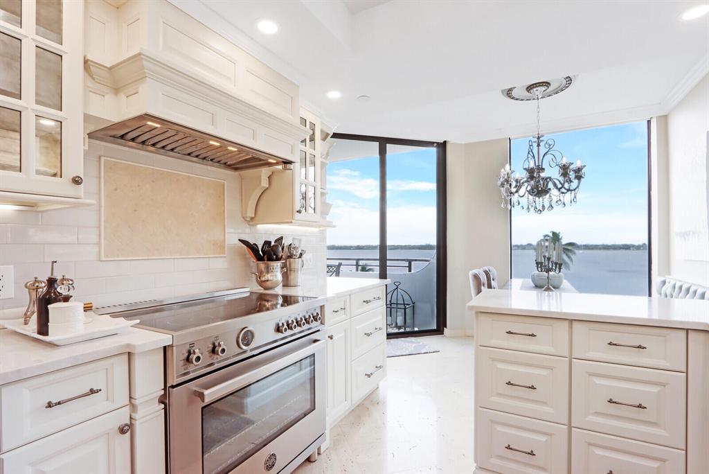 Exquisite renovation by designer/owner is breathtaking in this spacious southern corner unit. With parquet marble floors throughout, clean lines and stylish elegance, this Classic/Modern designed home offers expansive views of the ocean or intracoastal from all major rooms including the dramatic entry, wide-open living room and dining area. No detail has been overlooked from the custom millwork and cabinetry in the kitchen, bedroom suites, master bath, dressing room, and second bedroom library unit. Enjoy the all-white kitchen that features Italian Bertazzoni appliances and a charming built-in breakfast leather banquette overlooking the intracoastal. Home features include Toto sinks & Kohler toilets.