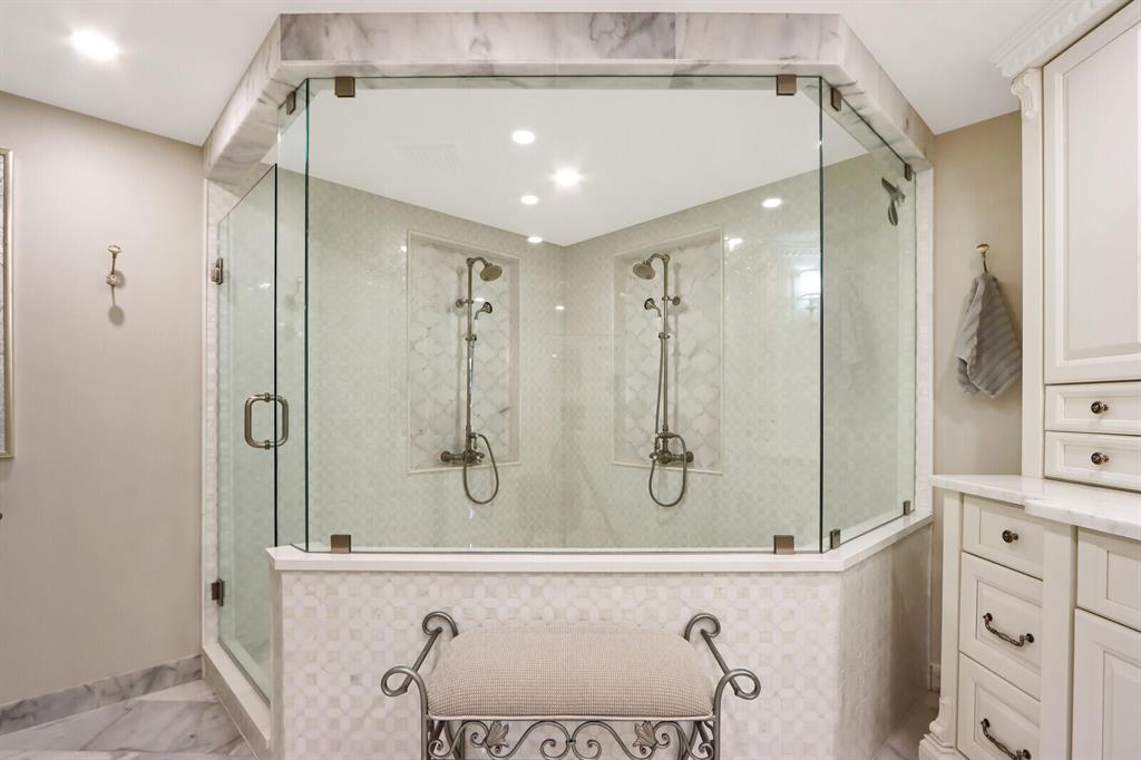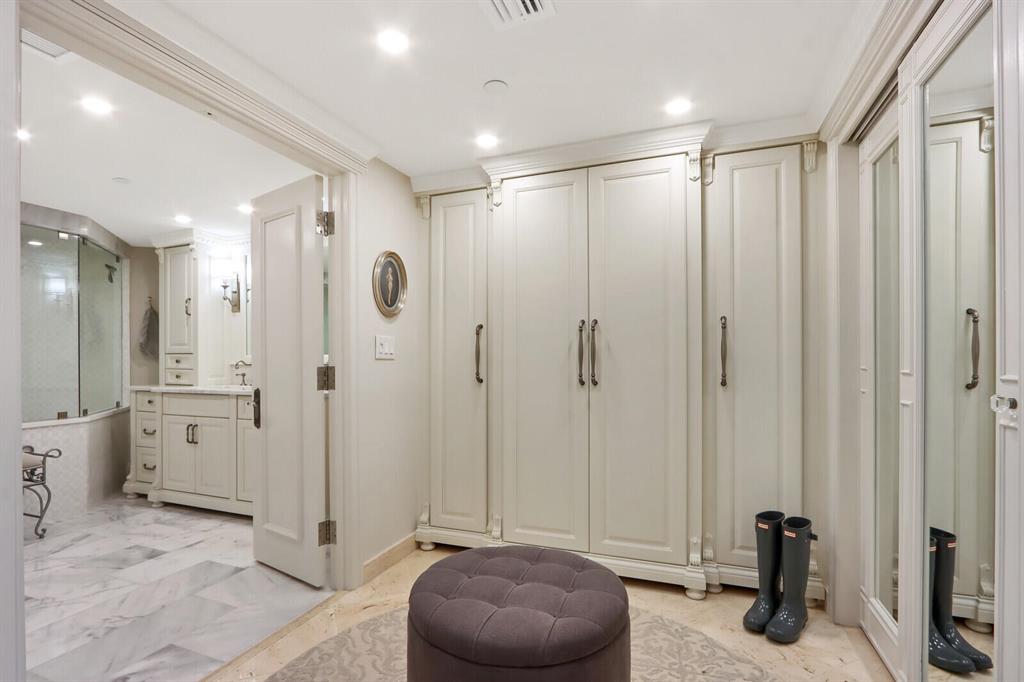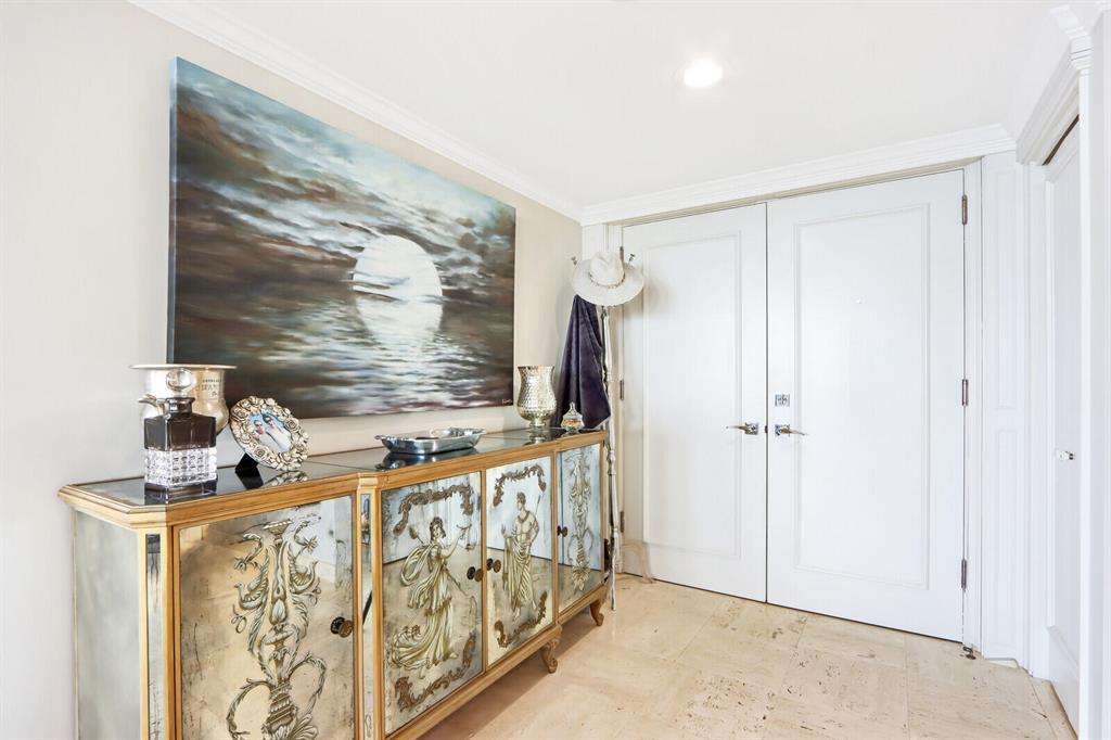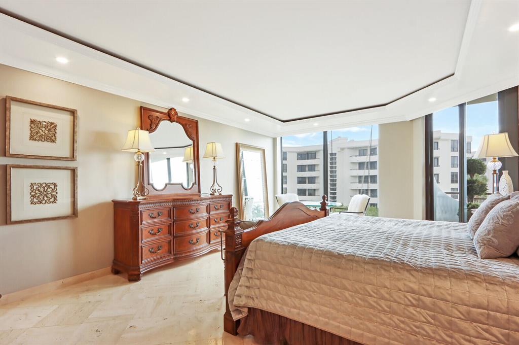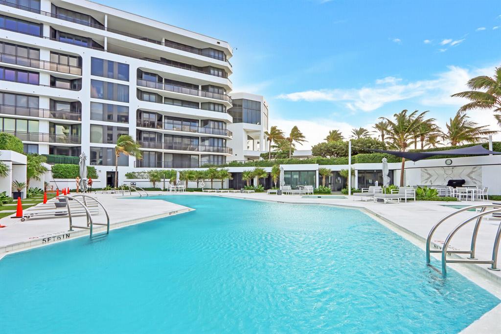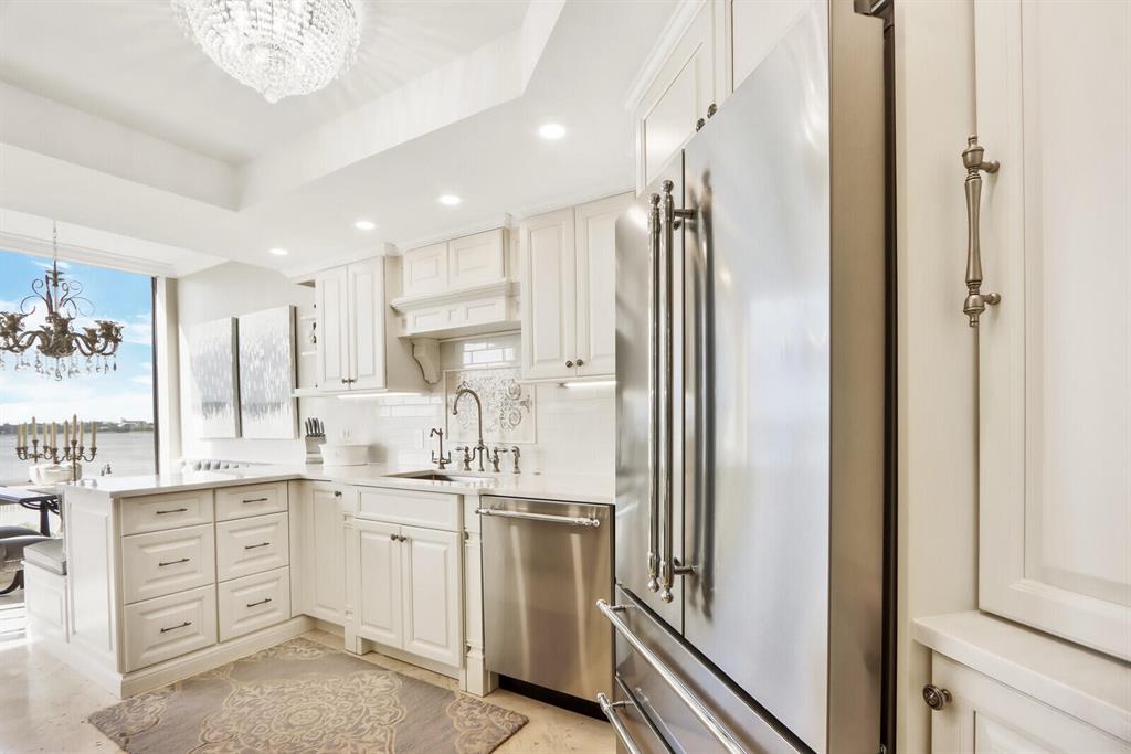 Exquisite renovation by designer/owner is breathtaking in this spacious southern corner unit. With parquet marble floors throughout, clean lines and stylish elegance, this Classic/Modern designed home offers expansive views of the ocean or intracoastal from all major rooms including the dramatic entry, wide-open living room and dining area. No detail has been overlooked from the custom millwork and cabinetry in the kitchen, bedroom suites, master bath, dressing room, and second bedroom library unit. Enjoy the all-white kitchen that features Italian Bertazzoni appliances and a charming built-in breakfast leather banquette overlooking the intracoastal. Home features include Toto sinks & Kohler toilets.