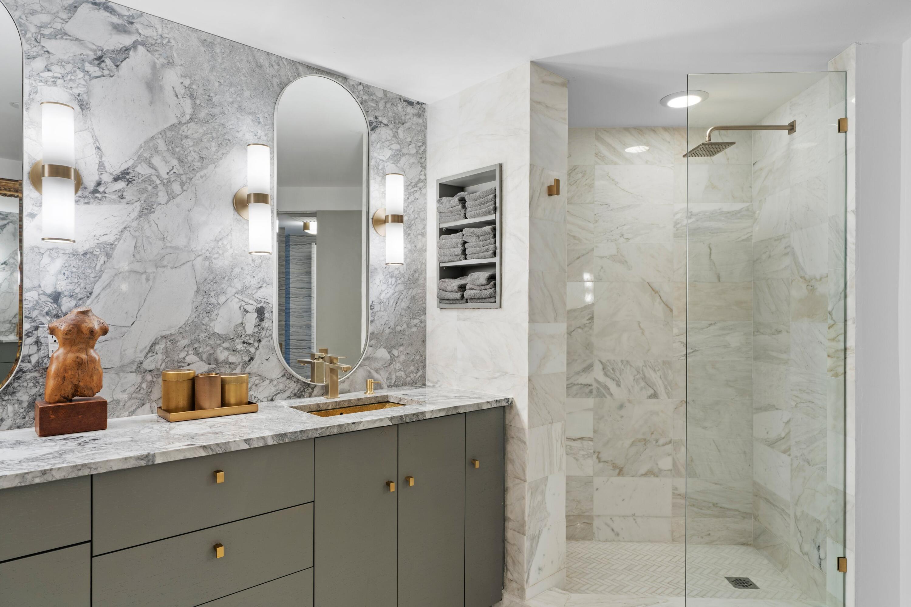 Absolutely gorgeous, move-in ready apartment at the highly desirable Palm Beach Hampton Condominium. Residence 301S has been professionally renovated from top-to-bottom with only the finest designer-curated finishes. Warm tones and rich textures are used throughout to create spaces that are striking & modern yet comfortable for entertaining and everyday living alike. The kitchen is outfitted with herringbone wood floors, marble countertops & top-of-the-line Dacor Modernist Series & Miele appliances. The primary suite offers both ocean & Intracoastal views, a marble-clad en-suite bathroom & large closets with custom cabinetry.The Palm Beach Hampton is a full service building with updated amenities such as a state-of-the-art fitness center, tennis courts & renovated lobbies.