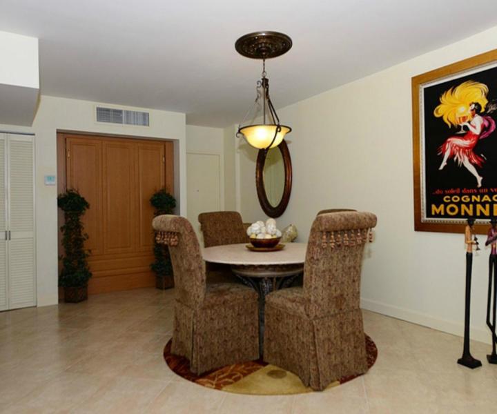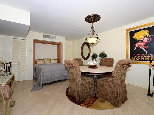 This all inclusive ”As Is” Turn key Condo with Built in Murphy Bed is a must See! Professionally remodeled bright South facing one bedroom, one & one-half bath condo in an Ocean front building with a new Air Conditioner! Custom kitchen cabinets, granite counter & breakfast bar. 18” diagonally set tile flooring in living area. Impact glass windows & door! Built in Murphy bed is located in the dining area & looks like a cabinet when not in use. Furniture, window treatments, wall hangings all included. Great move in ready condo for year round living or Beach get a way! The building has gone through a comprehensive renovation, including plumbing, new roof, concrete restoration & reinforcements as well as beautification of new impact glass railings on all balconies and brand new pool deck!
