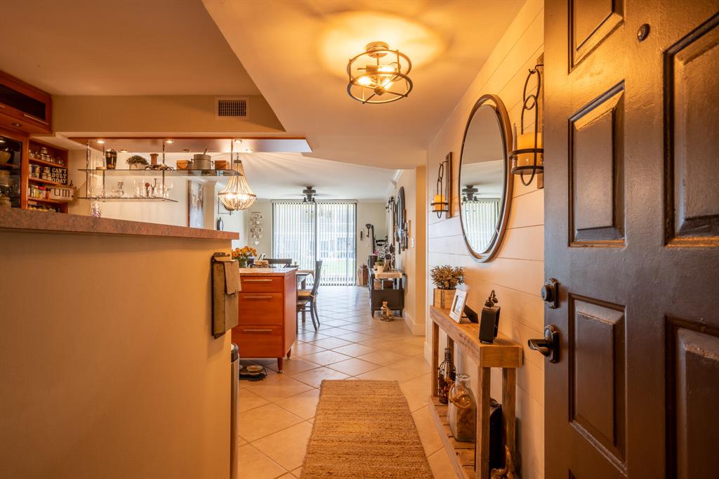 Beautifully renovated 2 bedroom/2 bath condo on the 1st floor with amazing views of the canal and intracoastal waterway! Updated open kitchen with European style cabinets, stainless appliances, wine rack, and recessed lighting. White shiplap entryway wall. Updated interior doors and hardware, door trim, baseboard and crown molding. Neutral color porcelain tile floor at a diagonal. Hurricane impact windows & patio door. Updated bathrooms. Bosch washer/dryer. New ceiling fans. Freshly painted! 2021 central a/c. Parking space #B19, and a storage space on the 2nd floor. Just minutes to the beach!