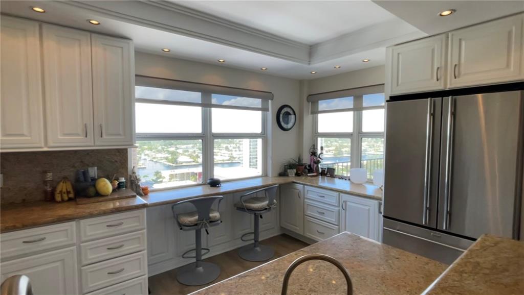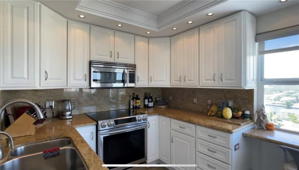 ONE OF A KIND! MOVE IN READY. Largest Corner unit in the building with spectacular views of the Intercoastal and Ocean. Recent high end remodel: New A/C, new water heater, new full-unit water purification system, impact windows, high end Stainless Steele Appliances, granite counter tops, custom home theater. Enjoy the beautiful sunsets from your 2 large Balconies. Primary bedroom has on-suite bathroom with large vanity and Large Walk in closet. Building has generator. Direct Beach Access. 2 Storage units (1 on same floor and 2nd downstairs. One of the lowest HOA fees on the Beach! Beautiful LOBBY, DOORMAN, 24/7 SECURITY, HUGE HEATED POOL,STATE OF ART GYM, INTERNET CAFE, NEW PIER, BEACH DIRECTLY ACROSS THE STREET,OUR NEW PROMENADE OFFERS NEW RESTAURANTS AND ENTERTAINMENT WALKING DISTANCE!