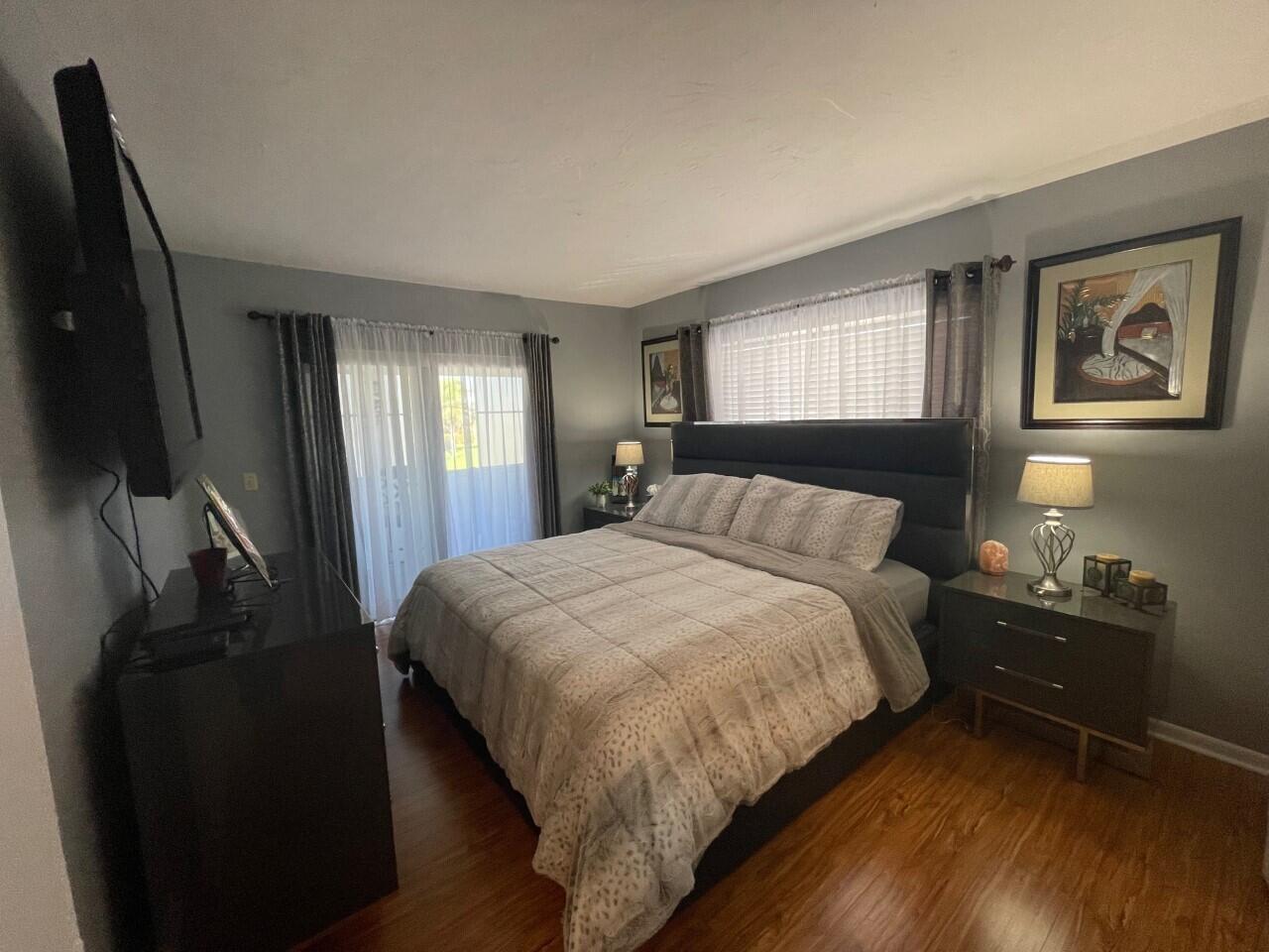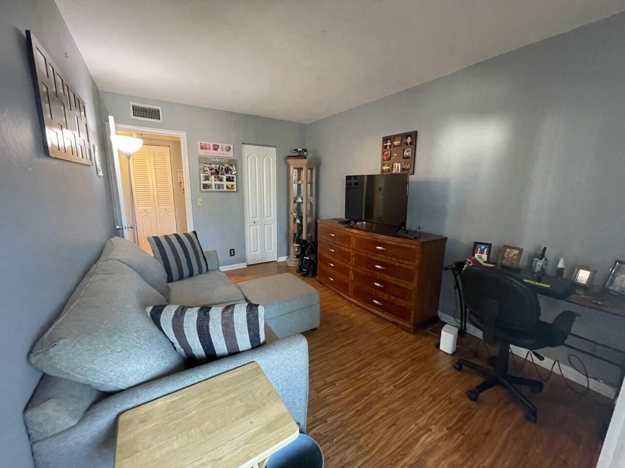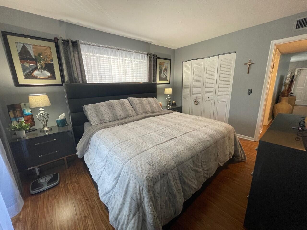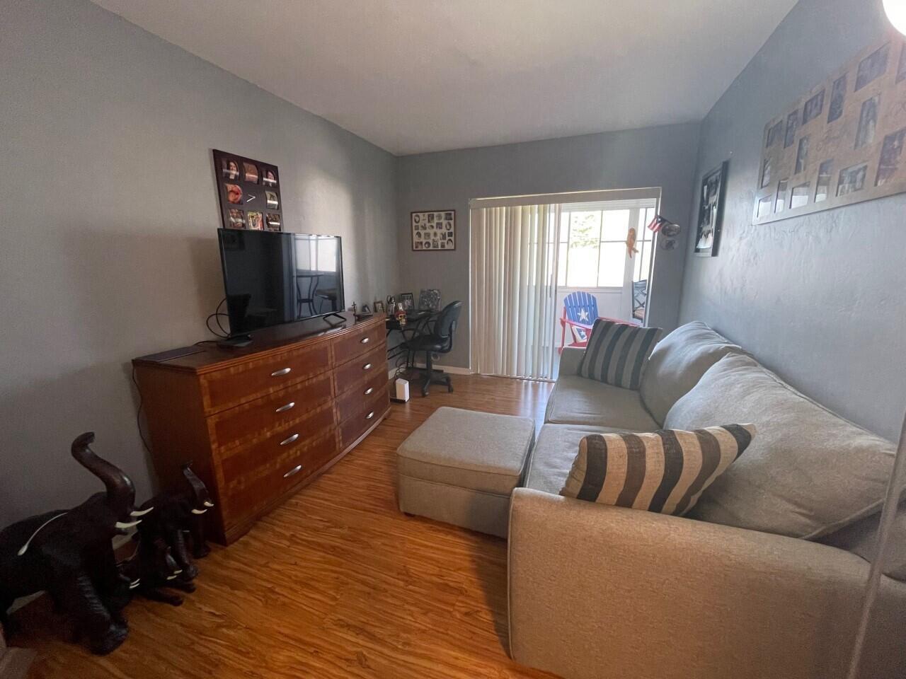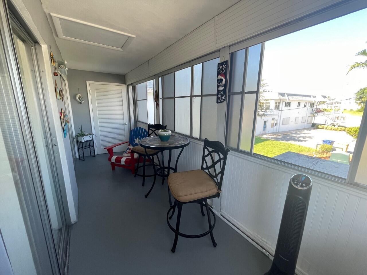 Welcome Home! This renovated move-in ready unit is rarely available. Featuring: 2BR/1BA, open floor plan with plenty of natural light, Stainless Steel appliances, tile backsplash, Central AC(2022), water heater(2020), renovated bathroom, updated flooring, enclosed screened patio with roll-down hurricane shutters, walk-in closet, accordion shutters & tint on all front windows for privacy, Lake views & walking distance amenities, Lake Osborne & John Prince Park. 55+ COMMUNITY, NO PETS. Association requires 700+ credit score and background check.