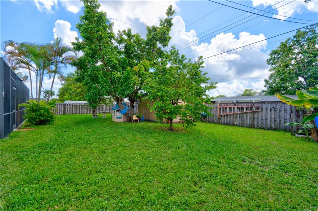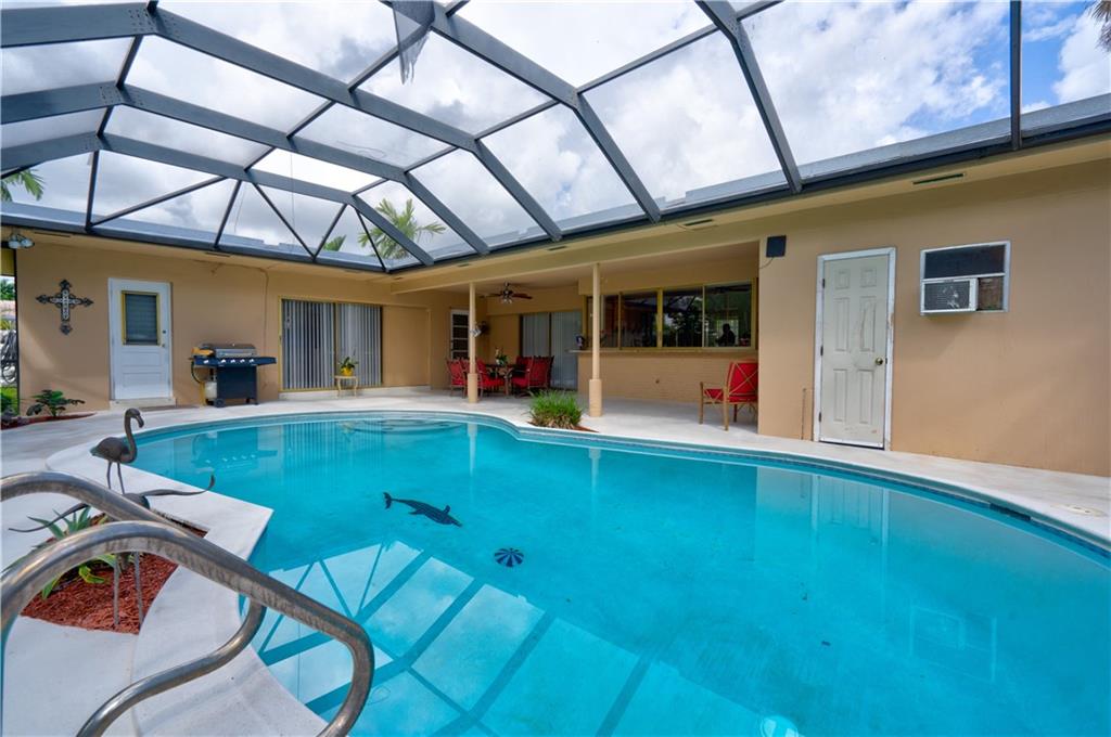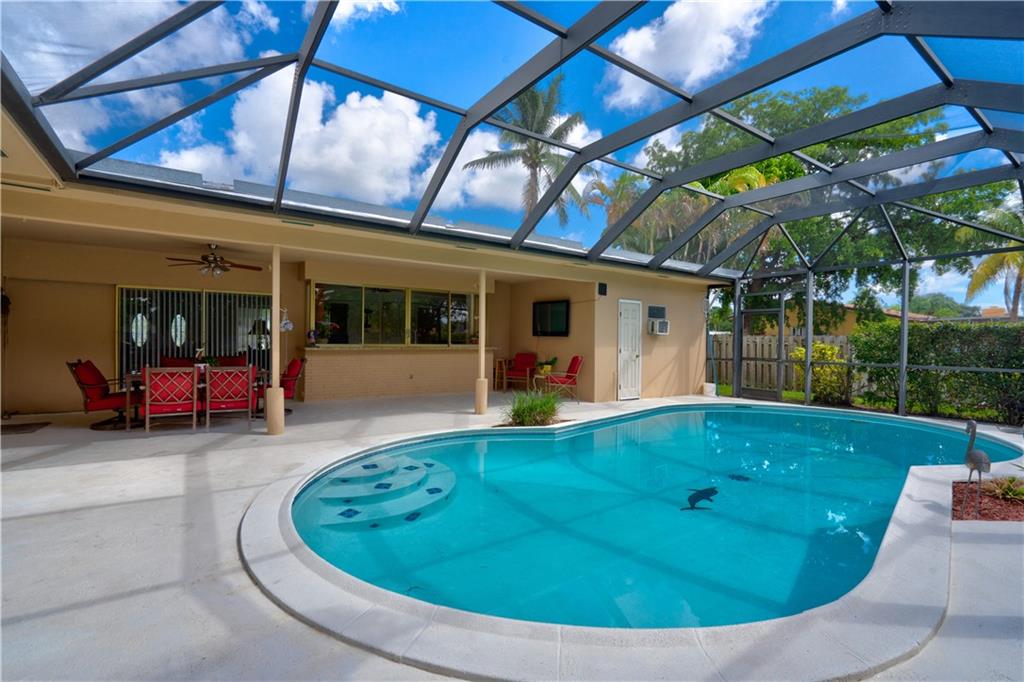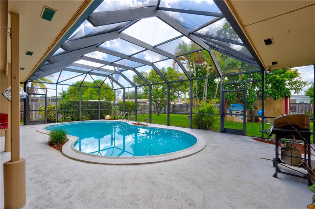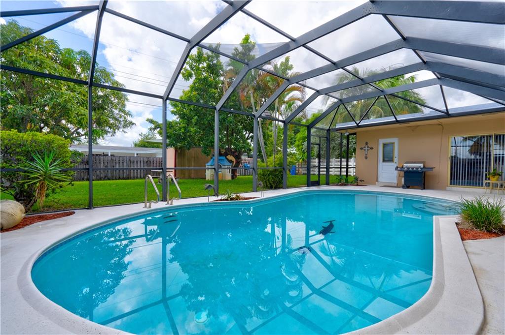 Great opportunity to live in the center of Hollywood Hills. Corner property sitting on a 11,484 sq ft lot. Over 2,000 sq ft in total area. Screened pool & patio with area to entertain. Fenced backyard with fruit trees. Large open remodeled kitchen with stainless steel appliances & granite countertop. Guest bathroom updated. Master bathroom is also a cabana bathroom accessing the pool. Custom closets. Roof replaced 4+ years ago, flat roof replaced in 2022. Metal hurricane shutters for all openings. 2 years old water heater. Garage currently being used as a room, could be converted back to full garage. Additional air-conditioned room with exterior access. No HOA. Easy access to main highways, restaurants, shopping, near Dade County line, and more…