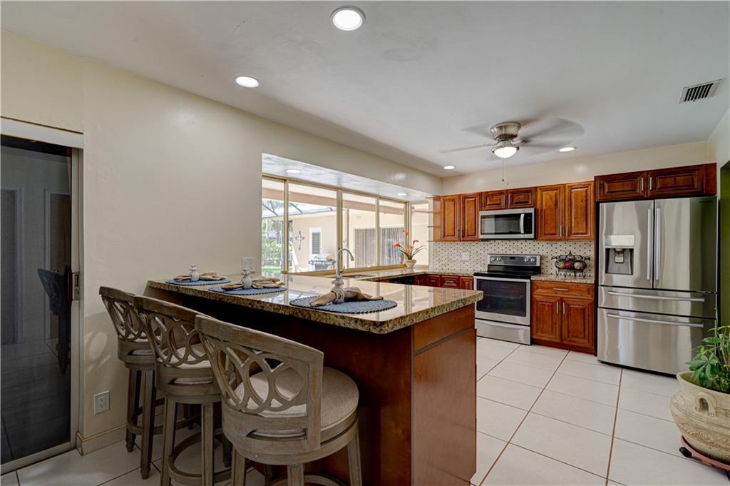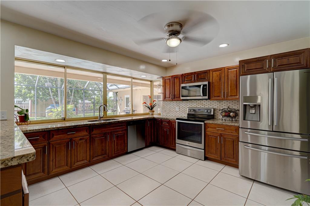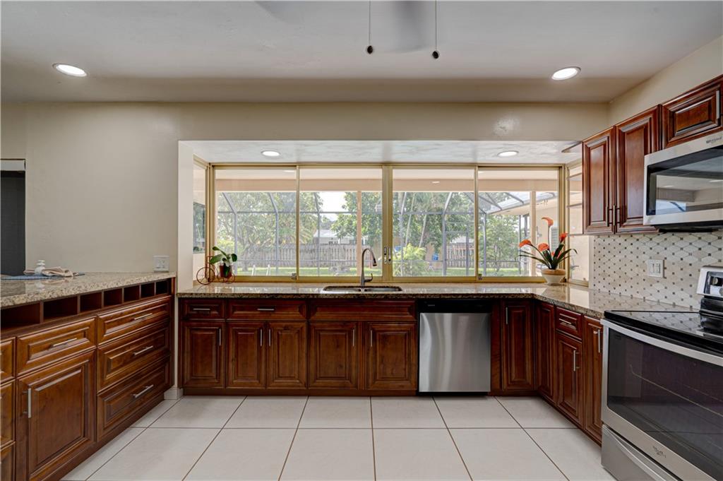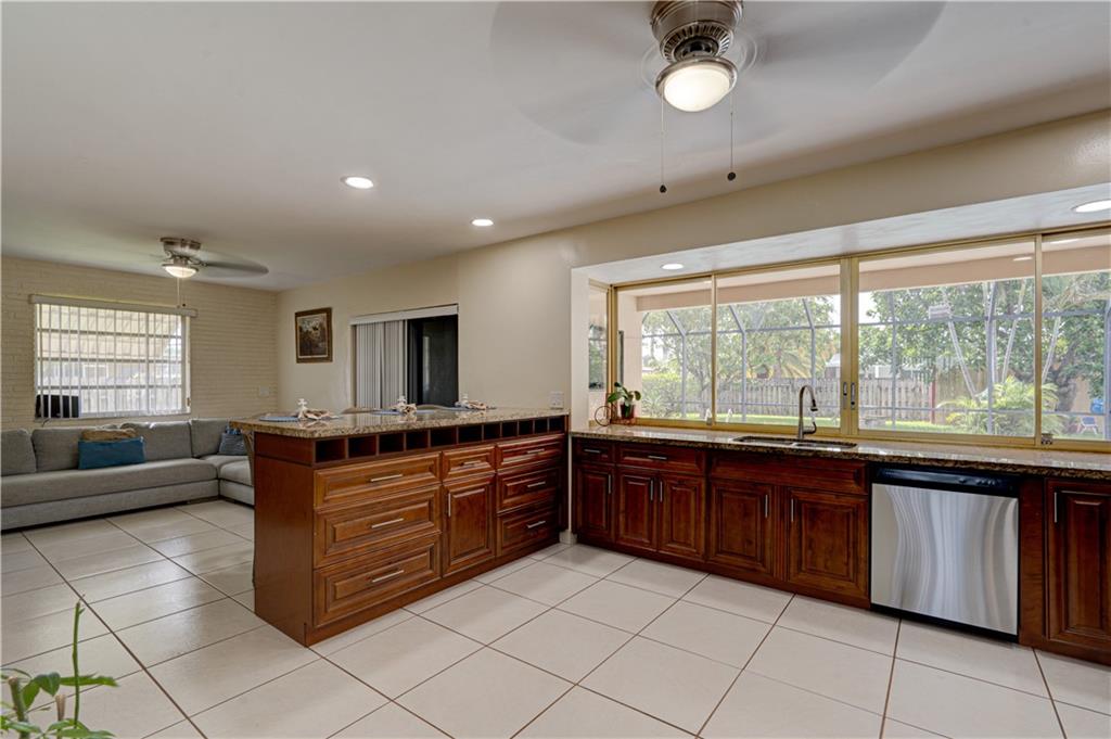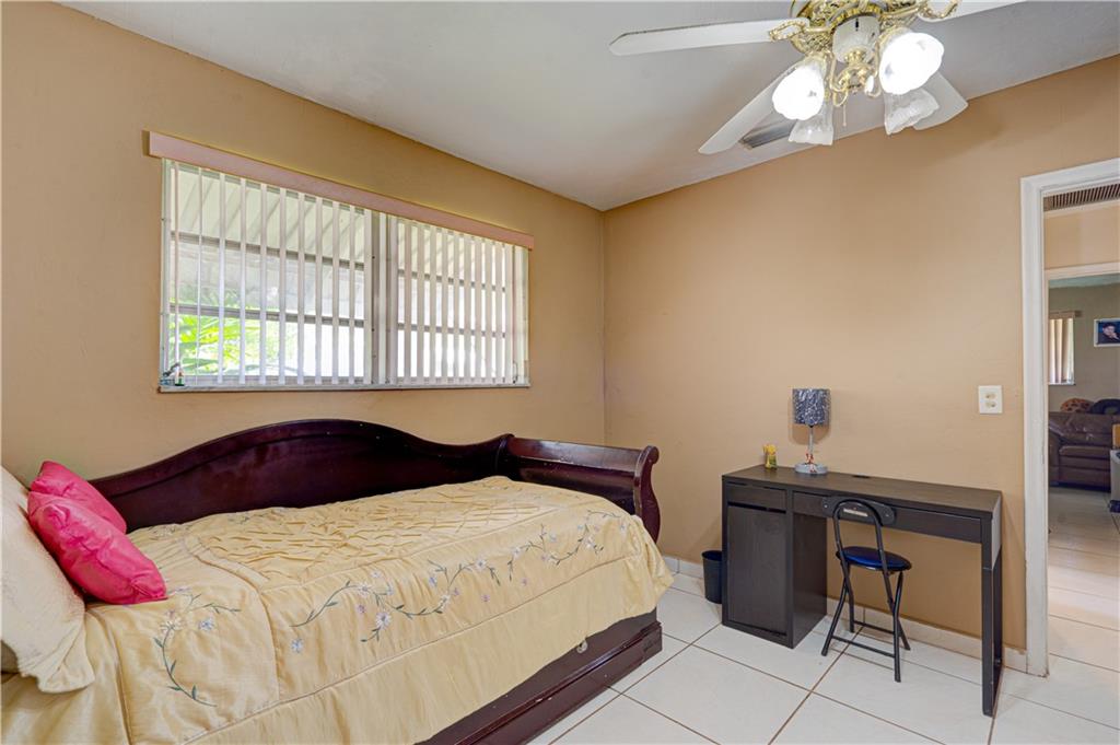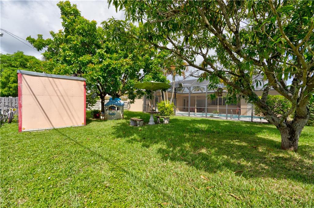 Great opportunity to live in the center of Hollywood Hills. Corner property sitting on a 11,484 sq ft lot. Over 2,000 sq ft in total area. Screened pool & patio with area to entertain. Fenced backyard with fruit trees. Large open remodeled kitchen with stainless steel appliances & granite countertop. Guest bathroom updated. Master bathroom is also a cabana bathroom accessing the pool. Custom closets. Roof replaced 4+ years ago, flat roof replaced in 2022. Metal hurricane shutters for all openings. 2 years old water heater. Garage currently being used as a room, could be converted back to full garage. Additional air-conditioned room with exterior access. No HOA. Easy access to main highways, restaurants, shopping, near Dade County line, and more…