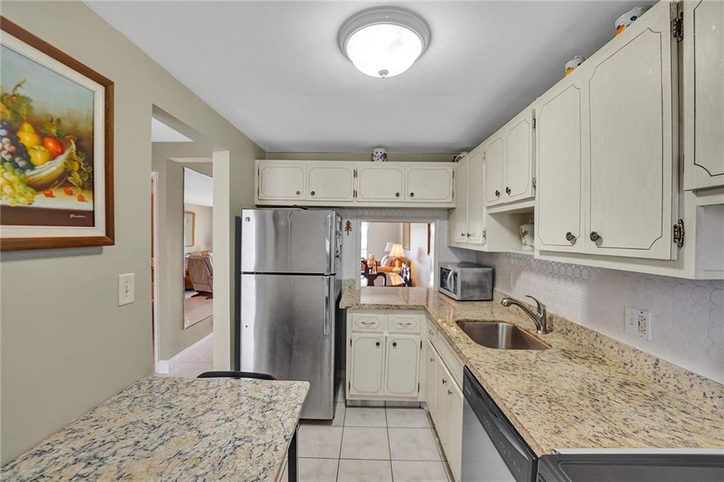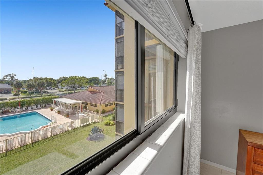 PRICE IMPROVEMENT!!!!Meticulous clean, third-floor, two bedrooms and two baths, renovated with granite countertops, porcelain floor throughout, newer AC, Impact glass door., two spacious closets, and a large balcony with a fantastic pool and garden view. The unit is located near the elevator, storage, and laundry room. GARDEN-AIRE VILLAGE is a beautiful, well-maintained building close to the beach, the Pier, restaurants, the supermarket, coffee shops, the golf course, and more. The perfect place to spend your winter vacation or to call your year-round paradise residence. Easy to show.