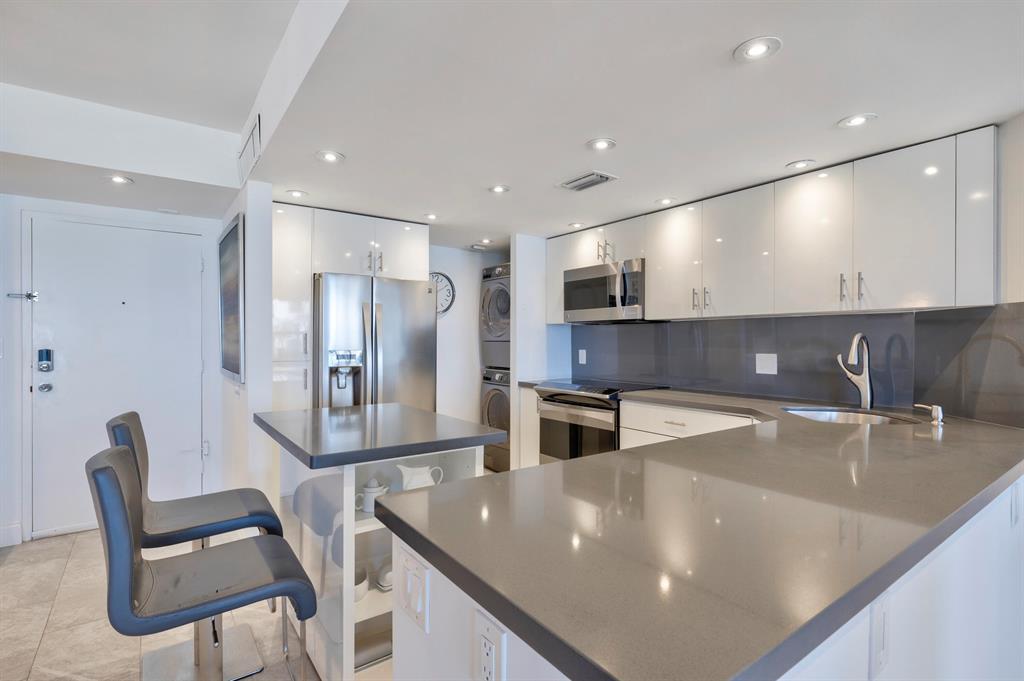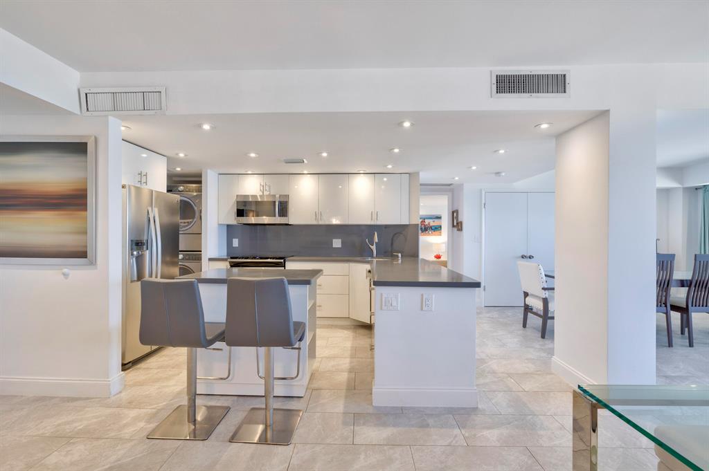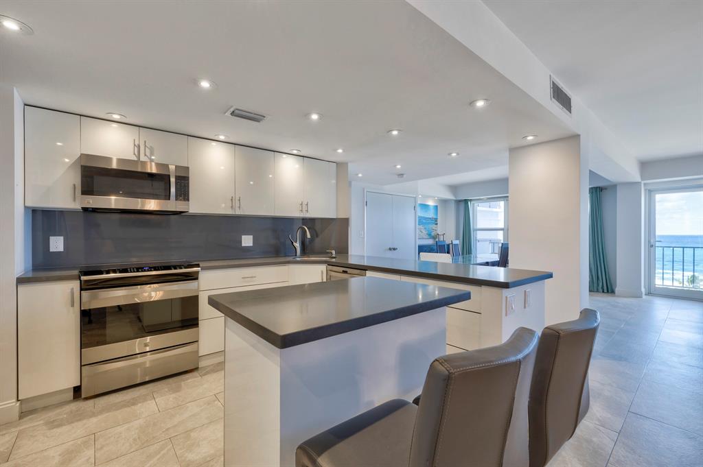 What A View!! Ocean views unobstructed from all living spaces! A completely remodeled & repurposed ocean front residence with an open floor plan. This unit boasts a state of the art kitchen and spa-like bathrooms ”Everything New”! A stainless-steel full size washer & dryer was designed into the unit space. Redesigned to offer premium views and living space, the 2nd bedroom was opened up into an additional living space & easily converted back!! Perfect layout for a ”Work at Home With a View” ! Expansive Balcony; One Covered Parking Space; Bike Storage; Two Separate Storage Cages; Renovated Gym, Recreation Room, Pool, Tiki Huts; Bar B Que’s; Beautiful Lobby; Walk to New Pompano Pier & Trendy New Restaurants!