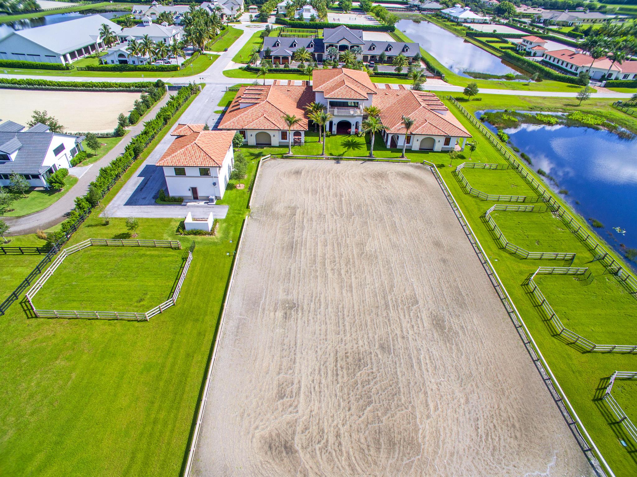 Location, Location, Location! Situated in the prestigious Grand Prix Village equestrian community next to the horse show this 3.66 acre 20 stall equestrian compound has it all. Near the new South Gate and adjacent the the Wellington International show ground expansion there is direct access to WEF on NO traffic or crossing busy roads. The barn has two (2) 10 stall center aisle wings 2 large tack rooms, 2 feed rooms, 2 large storage rooms, vet stalls, wash stalls, laundry, kitchen/snack bar area and office. On the second floor is the fully finished 1 bedroom Owners Quarters with both stair and elevator access. Perfect for entertaining with large a great room leading to the balcony overlooking the 120′ X 210′ riding arena and 7 paddocks. The second 2-story building includes a 2 bedroom