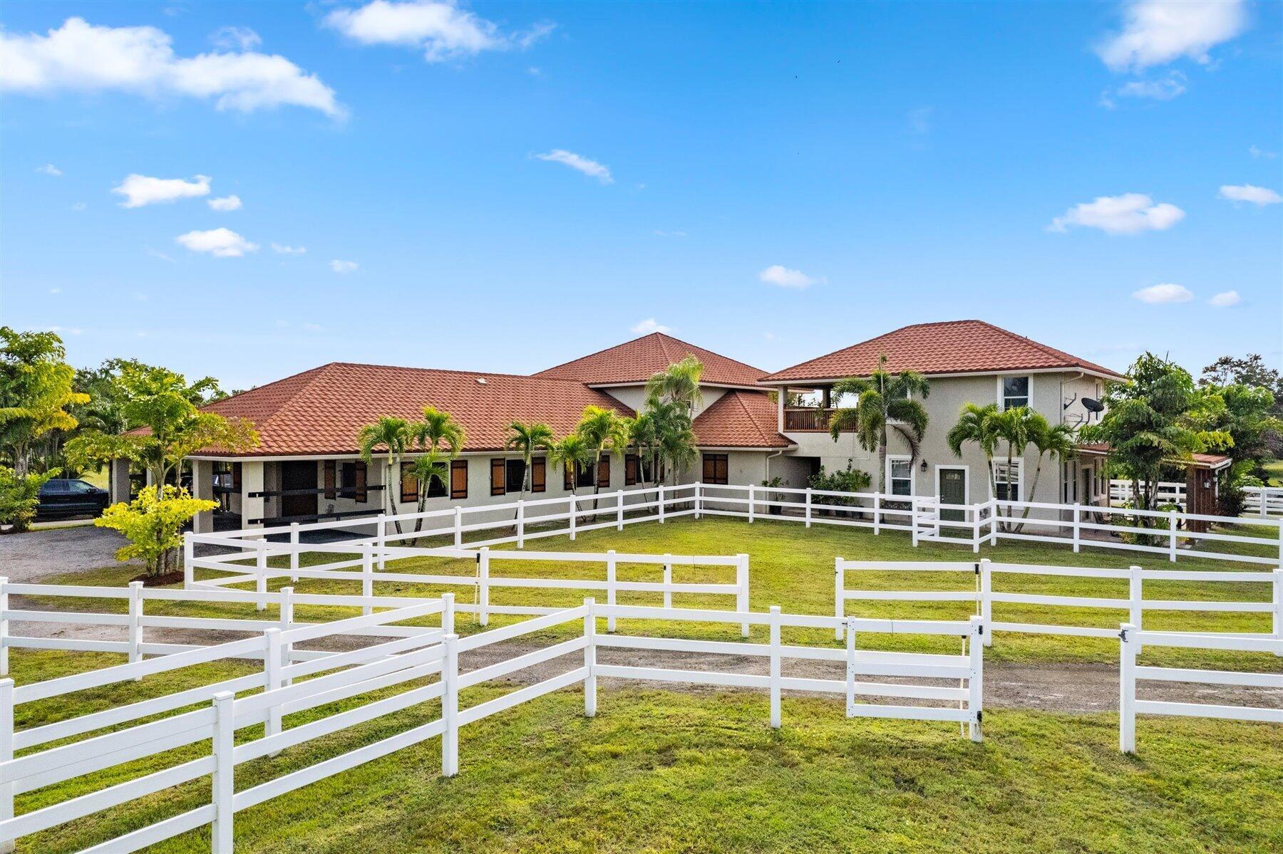 Location, Location, Location! This 5 acre equestrian compound in Palm Beach Point is ready for you and your horses. Situated on 5 acres within hacking distance to the horse show the property has it all. A grand 4 bedroom -5 1/2 bath main home with an attached 1 bedroom guest apartment complimented by a resort style pool with privacy. The 13 stall center aisle barn with air conditioned tack room, feed room, laundry, break room and bathroom are accessed through a separate gated entrance. There is a 130′ X 200′ riding arena within steps of the barn. Nine (9) irrigated paddocks for turn out too. The barn also offers three (3) separate apartments ranging from 1, 2 and 4 bedrooms respectively. Solid rental history for those looking for an income producing property. Truly a MUST SEE property