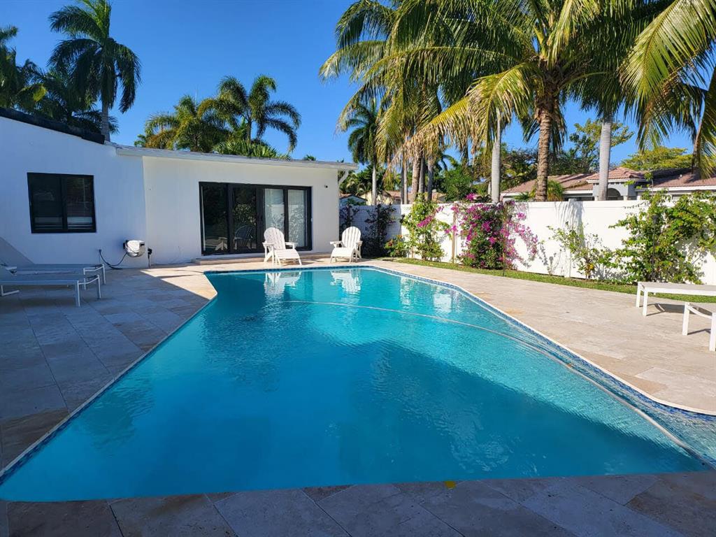 This immaculate 1 story corner home is located in a quiet neighborhood and ready for a loving family to move in! 3 bed/3 bath with a spacious master bedroom with direct access to the pool, cabana bathroom and Florida room. New porcelain flooring and new ceiling throughout. Large modern kitchen with newer appliances. House has impact windows and an all new fenced in yard. All new Travertine pool deck flooring and newly remodeled pool. New A/C unit 2023. New Roof 2023. Smart Devices!! No HOA.Also great for Investors to rent on AIRBNB!!