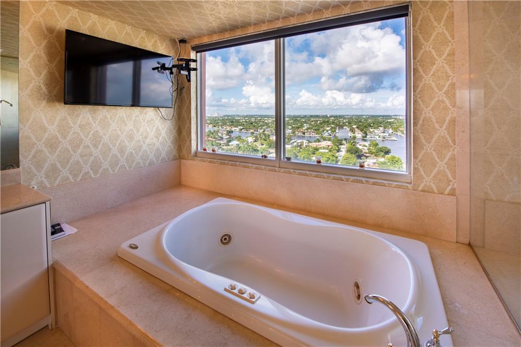 Rarely available ocean to intercostal view, this three bedroom condo in the iconic Palms building is available now. Sitting right on Fort Lauderdale beach with 2 pools, beach club, tennis courts, full time security, fully secured building, valet, and two story gym there is no need to ever leave this full lifestyle property ready to be yours. As you make your way to the 18th floor and step out into your private foyer and into a wide stretch of direct ocean view scenery with open kitchen, dining, living room, and bar area for on going entertainment space and ample opportunity to make your own.. three bedrooms with on suites, full washer and dryer, complete with over sized closets and an additional intercostal wrap around view balcony! NO CARPET