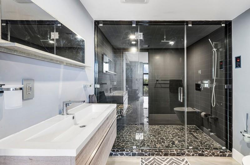 Epoxy flooring, hurricane impact windows and sliding doors, Custom European push to open kitchen, upgraded appliances, wall hung toilet bidets, wall hung vanities, steam room shower, standalone bathtub, Solid wood interior doors, hidden hinges interior doors, new ac handler, new hot water heater, electronic remote keyless door lock, remote wifi ac thermostat, cameras with voice and recording capabilities, Induction cooktop convection wall stove and microwave.