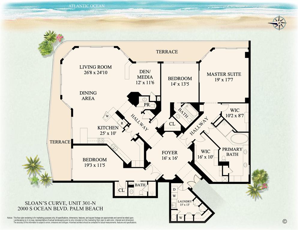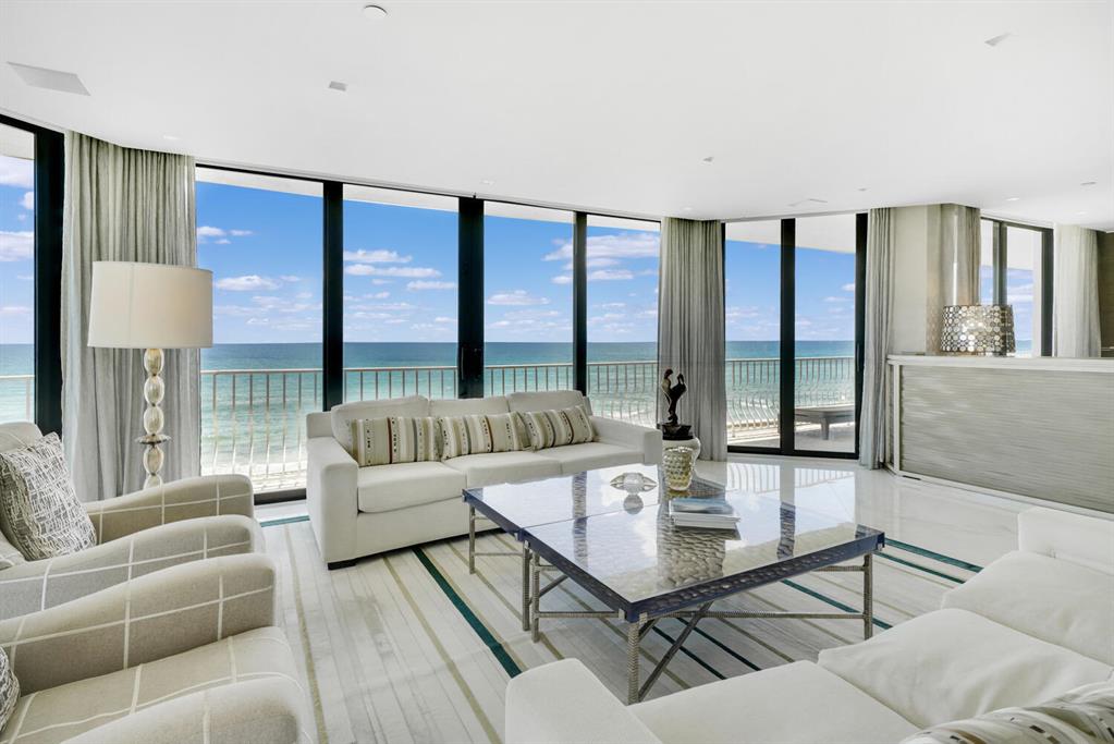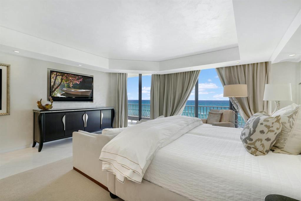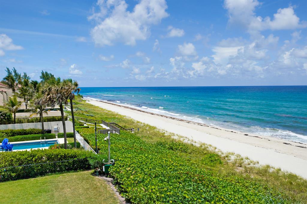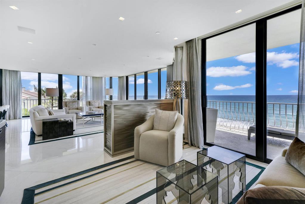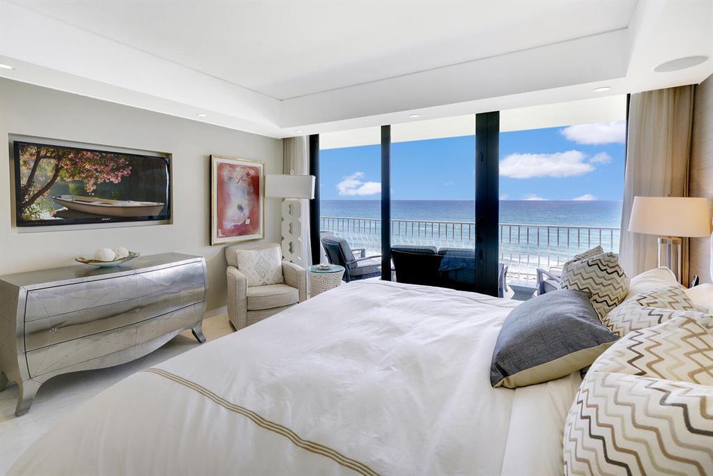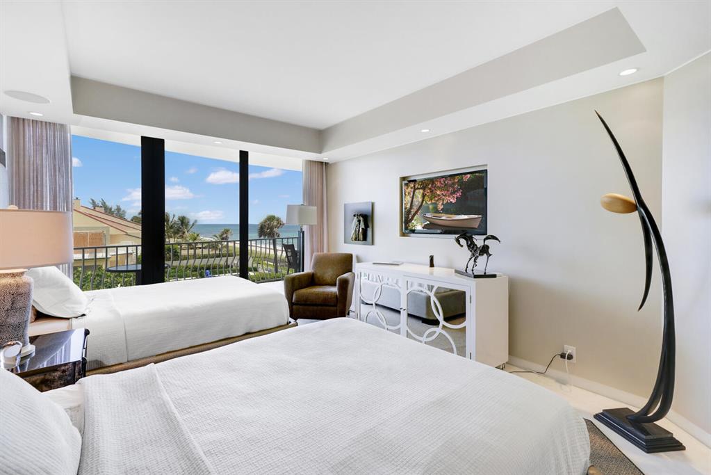 The best unit in one of Palm Beach’s most coveted buildings Sloans Curve. Rare NE corner unit with unobstructed ocean views from every major room. Walk in and all you see is Ocean. Experience Ocean views from each of 3 ensuite bedrooms with 3 full and 1 half baths, from the den while you workout or work from home, from the fabulous wrap-around terrace where you entertain friends. Beautifully appointed with spacious master bath, dual closets, Sub Zero, Miele appliances, wine refrigerator, electric shades, laundry room, extra storage, 2 car gar pkg, and air-conditioned poolside cabana. Comes tastefully furnished. Just move in. Doorman, 24/7 gatehouse, pool, spa, gym, tennis courts and wide sandy beach. Worth Avenue’s and PB Intl airport are just 10 mins away. The quintessential PB lifestyle!