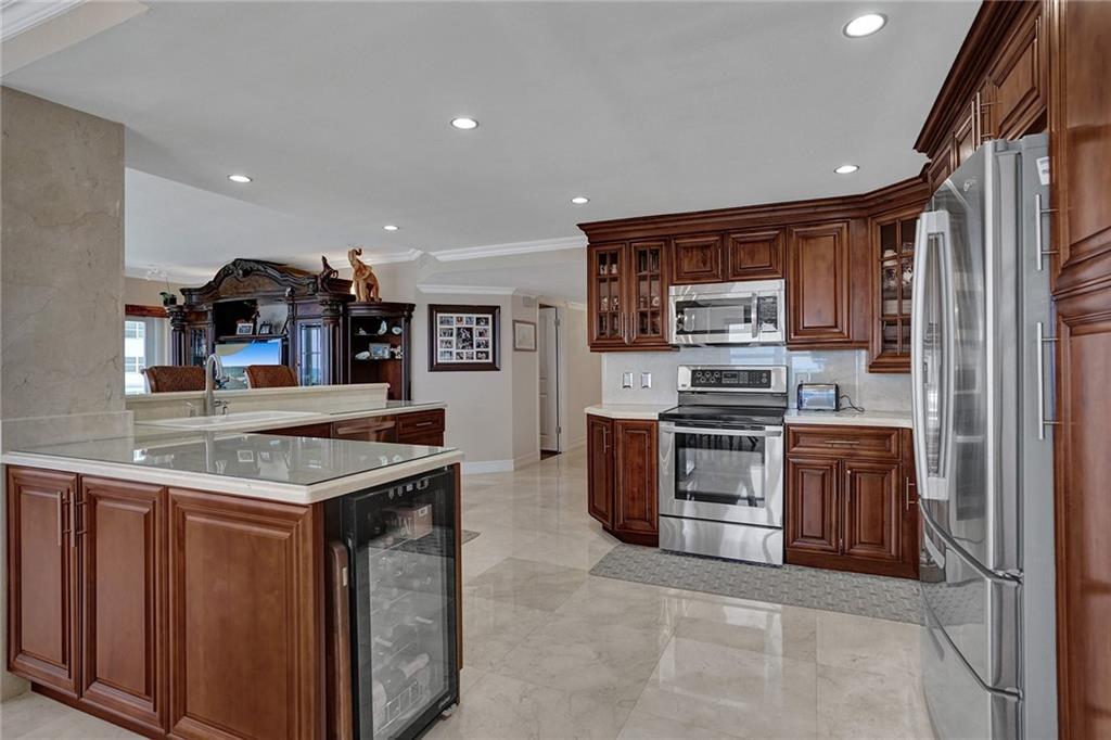 Views, views, views! Sunny, east/southeast facing spectacular ocean, coastline & beach views from every room in this rarely available oceanfront corner apartment in one of the nicest buildings on the beach in east Fort Lauderdale. This apartment has been converted from a 2 bedroom to a 3 bedroom. South east exposure = fantastic ocean & beach views, & lots of sunshine. Beautiful, open & airy updated kitchen has custom cabinets & top of the line stainless appliances. All of the bathrooms have been updated. Roomy master bedroom has 2 walk in closets. Washer/dryer in the apartment.The third bedroom has a closet & is perfect for a den or an office. Under building parking for 2 cars. Amenities include pool deck, bocce, bbq, tennis court, & gyms. Video tour: https://tours.swift-pix.com/e/CyqJBrb