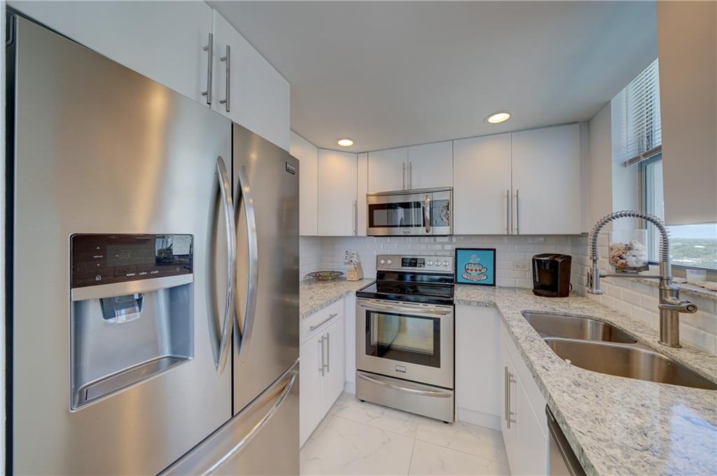 PRICE REDUCED! Impeccably remodeled unit ON THE BEACH in the best oceanfront building in Pompano. Fantastic split bedroom layout takes advantage of every single square foot. Spacious bedrooms, large closets, continuous marble tile throughout. No other building on the beach beats all these amenities! In-Unit full sized Washer/Dryer. Low HOA $554 per month – 1 assigned in-garage space, ample guest parking, 24/7 security, fully staffed self-managed building, concierge service M-F 9a-5p, high speed internet, premium cable, car wash area, BBQ, pool, hot tub, sauna, oceanfront clubhouse w/kitchen, billiards, ping pong, bocce, bike parking. Financially solid, well managed building. Rentals OK after 1st year then 2X/yr 60day min. Furniture negotiable, art/electronics not included.